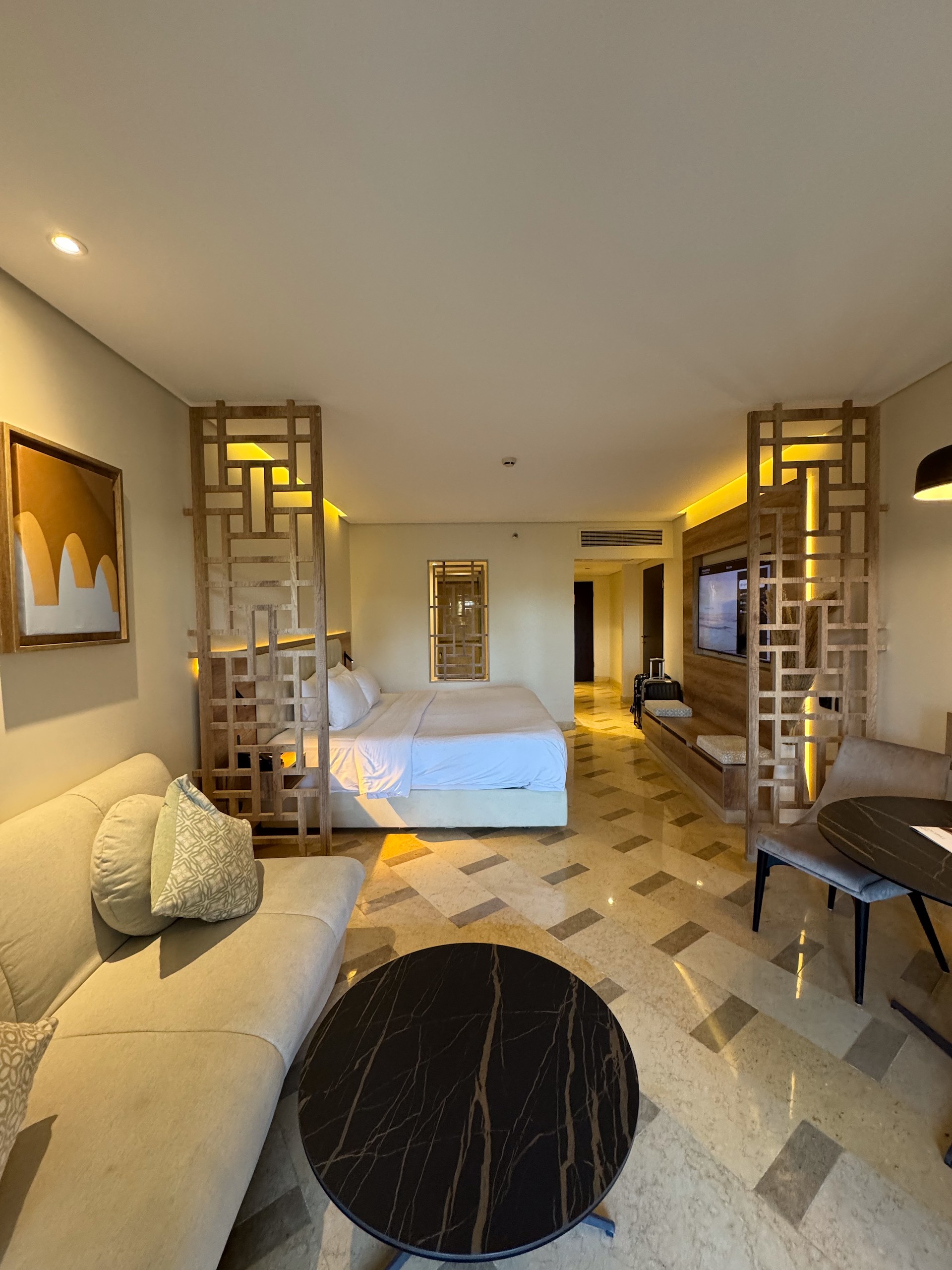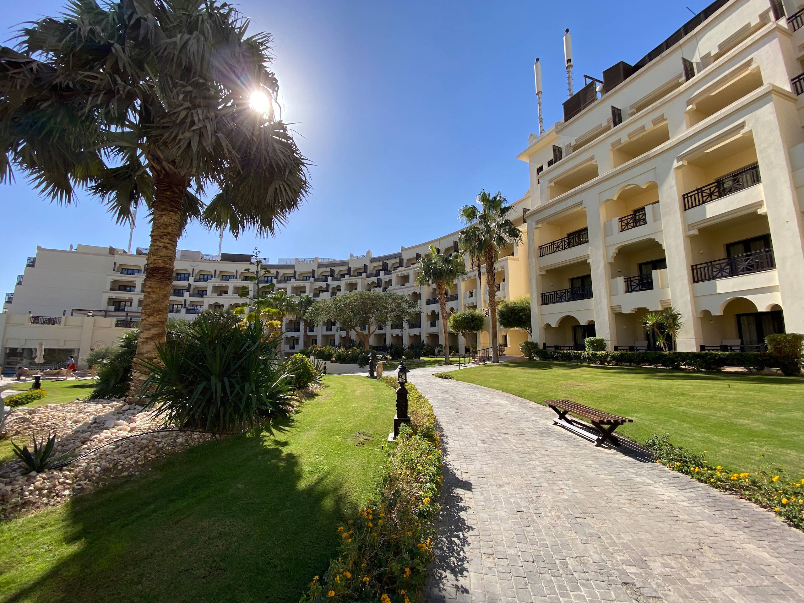 An unserem Hotel, dem Steigenberger Al Dau Beach angekommen, können wir zunächst vor dem Einchecken unseren Lunch einnehmen. Ich denke, das Buffet lässt absolut keine Wünsche offen und wir essen uns erst mal satt. Unser Zimmer ist im Erdgeschoss und wir sind sehr zufrieden. Wir machen einen ersten Rundgang durch die Aussenanlage bis zum Roten Meer, gönnen uns einen Cocktail und dann geht es erst mal ab auf die Zimmer. Duschen und einfach mal ein Nickerchen machen. Nach dem Abendessen geht es noch auf einen Absacker in die Bar und dann haben wir noch einiges an Schlaf nachzuholen.