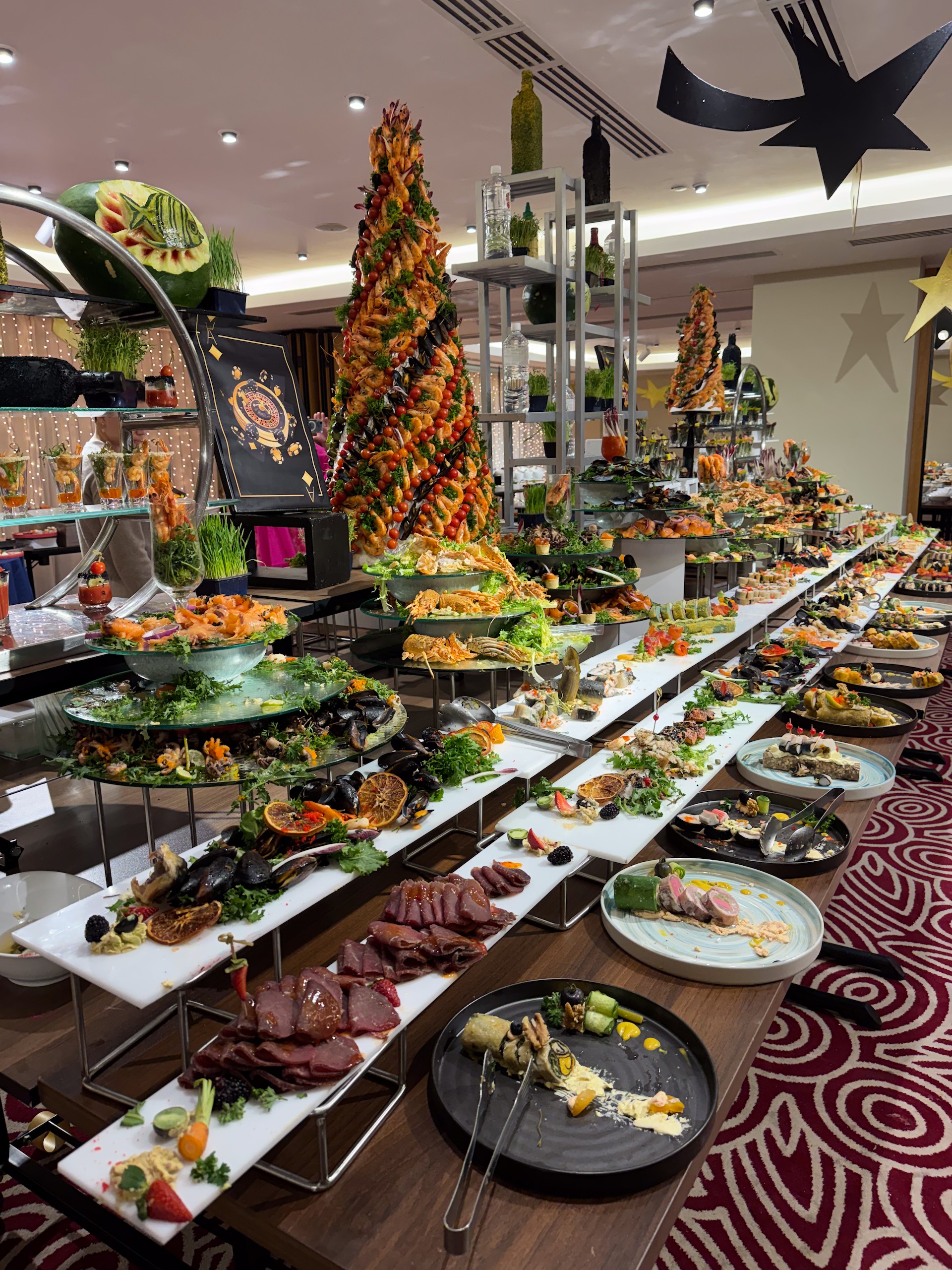 Silvester haben wir uns für die Galaveranstaltung im Hotel angemeldet. Wir haben nur zwei gute Flaschen Wein geordert, der Rest war im Hotelpreis inbegriffen. Nach einem Sektempfang ging es in den großen Saal und so feierten wir mit insgesamt ca. 900 - 1.000 Gästen, Lifemusik und etwas Las Vegas Dance Show Silvester. Zwischendurch wurde die Riege der verantwortlichen Köche und auch der Servicekräfte mit Applaus auf der Bühne begrüßt. Das fand ich eine sehr nette Geste.