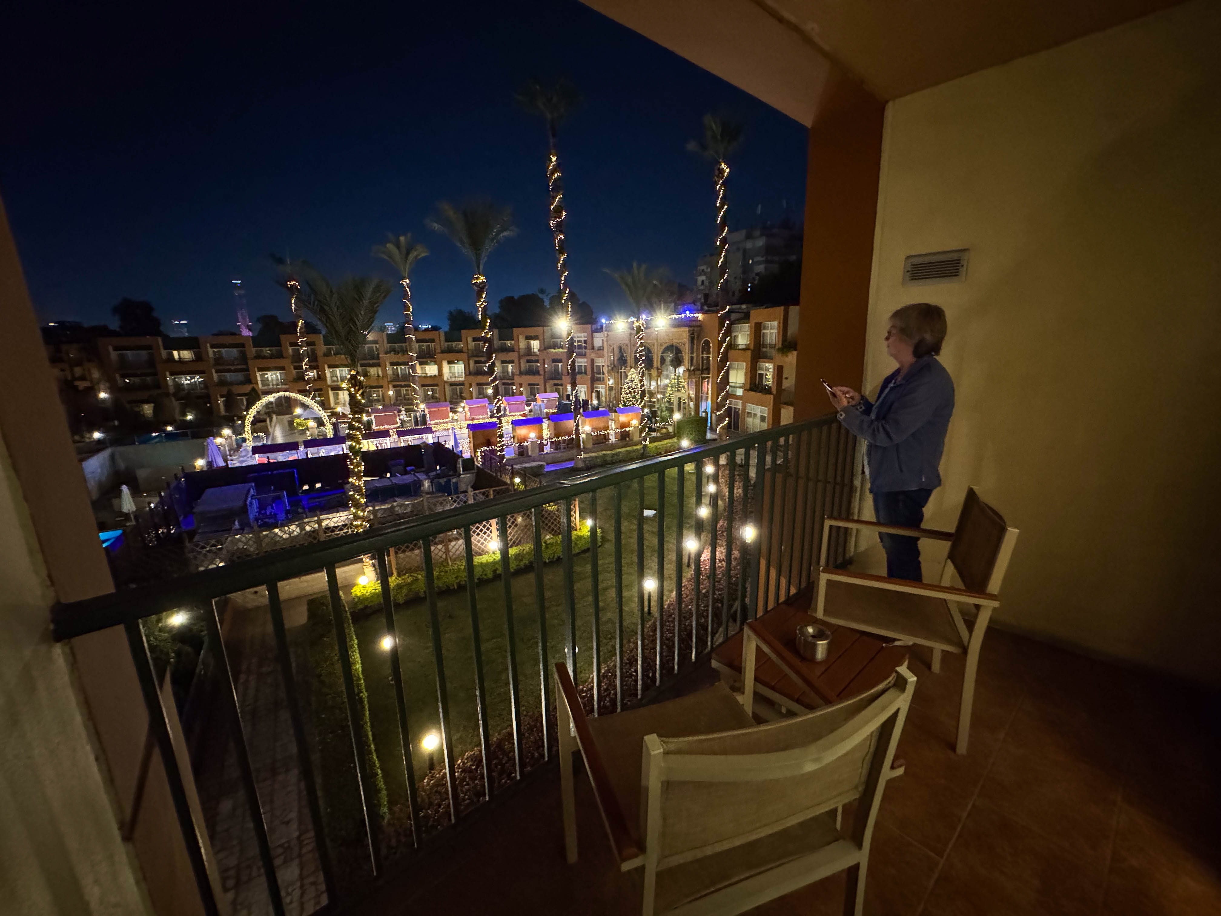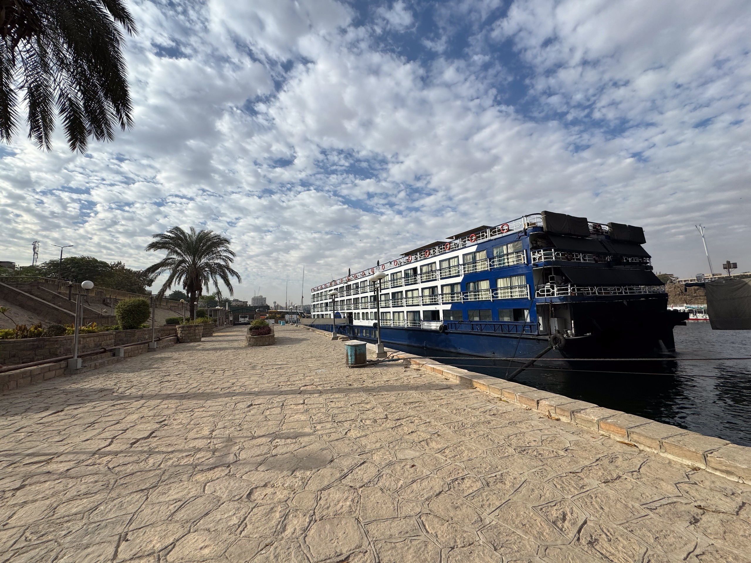 Mit etwas Verzögerung geht es dann mit dem Flieger von Kairo nach Luxor. In Luxor fährt uns unser Fahrer Machmud zum Schiff mit dem wir die nächsten sieben Tage unterwegs sein werden. Der erste Eindruck von Luxor ist deutlich besser als der von Kairo. Sehr gepflegte Anlagen, viel Beleuchtung, auch viel Weihnachtsschmuck und eine schöne Promenade.