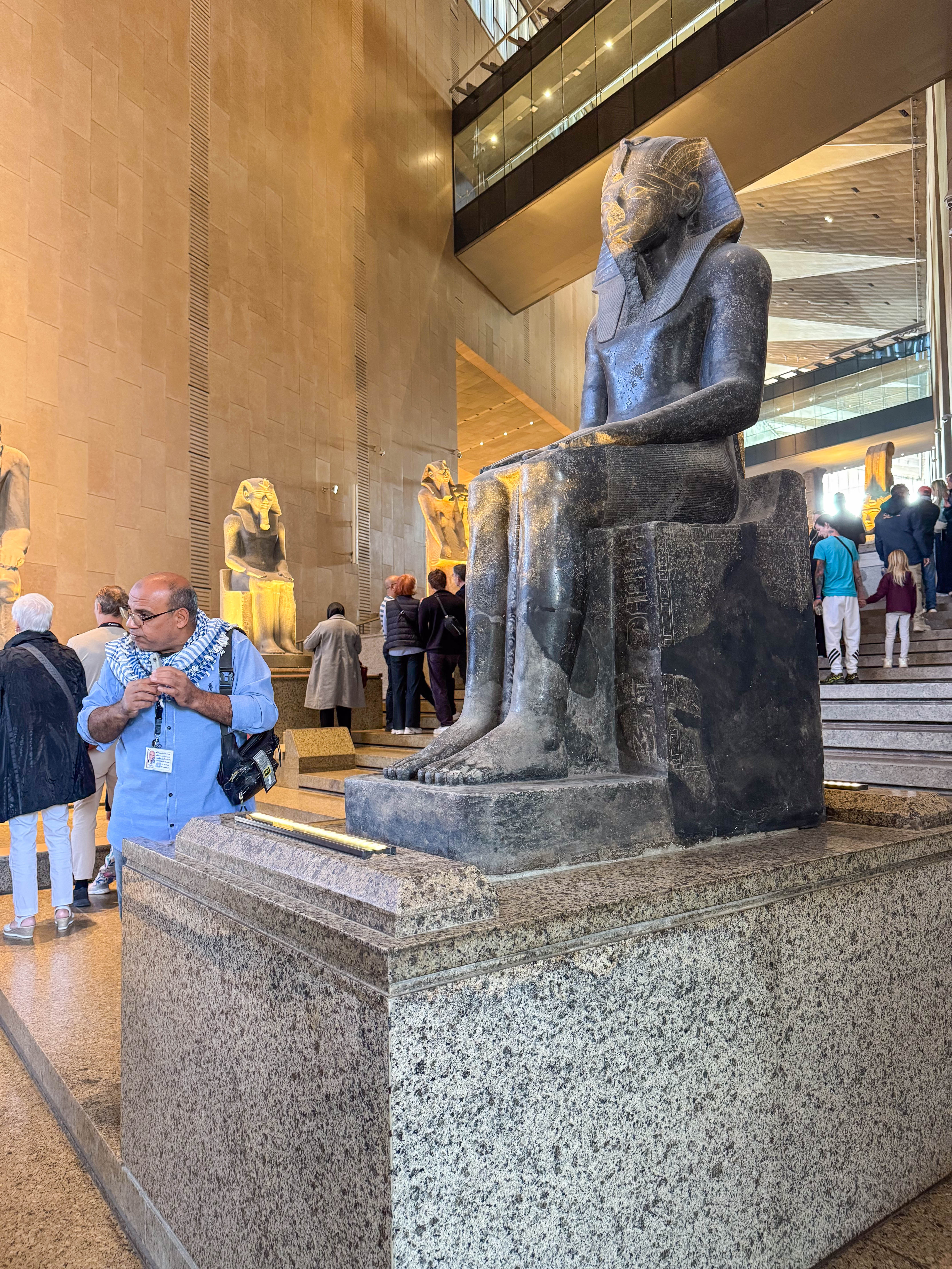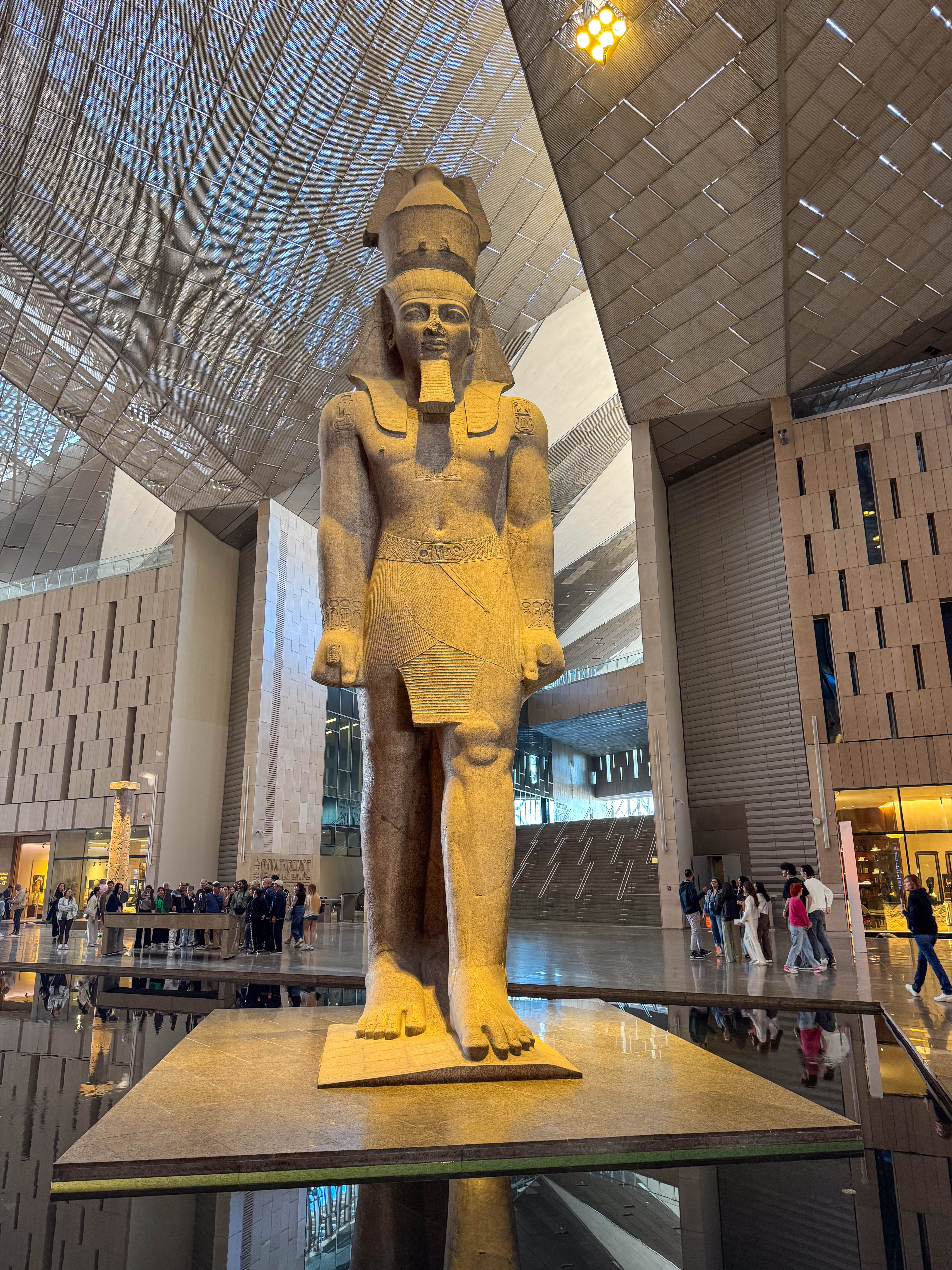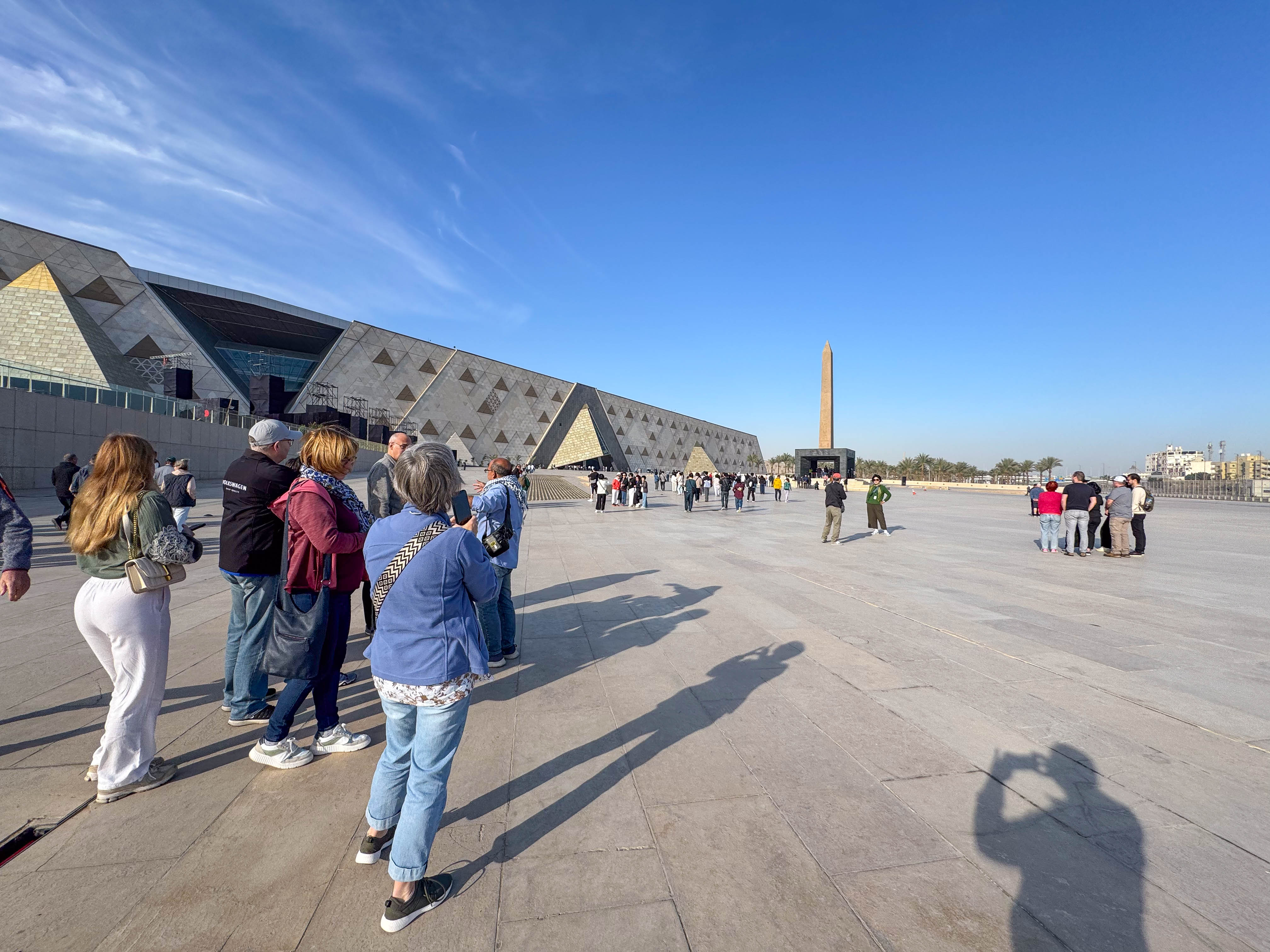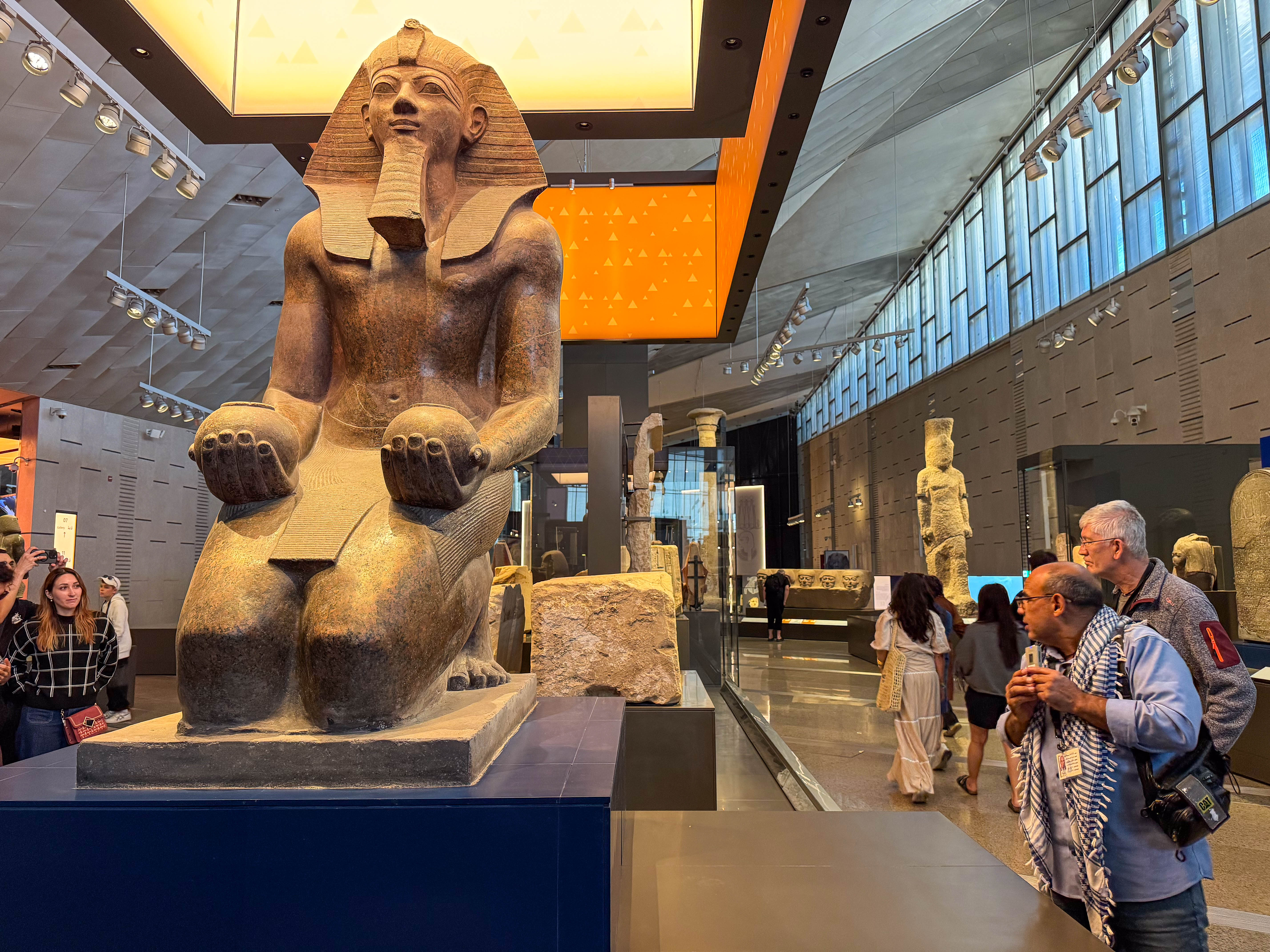 Um acht werden wir dann von unserem Reiseführer Ali abgeholt und es geht zuerst mit einem Kleinbus zum Grand Egyptian Museum (GEM). Unsere Truppe besteht lediglich aus neun Personen und Ali spricht sehr gut Deutsch. Wir haben Glück, dass das GEM am heutigen Sonntag, in Ägypten ist das ein normaler Wochentag, relativ wenig Besucher hat und wir entspannt alles anschauen können.