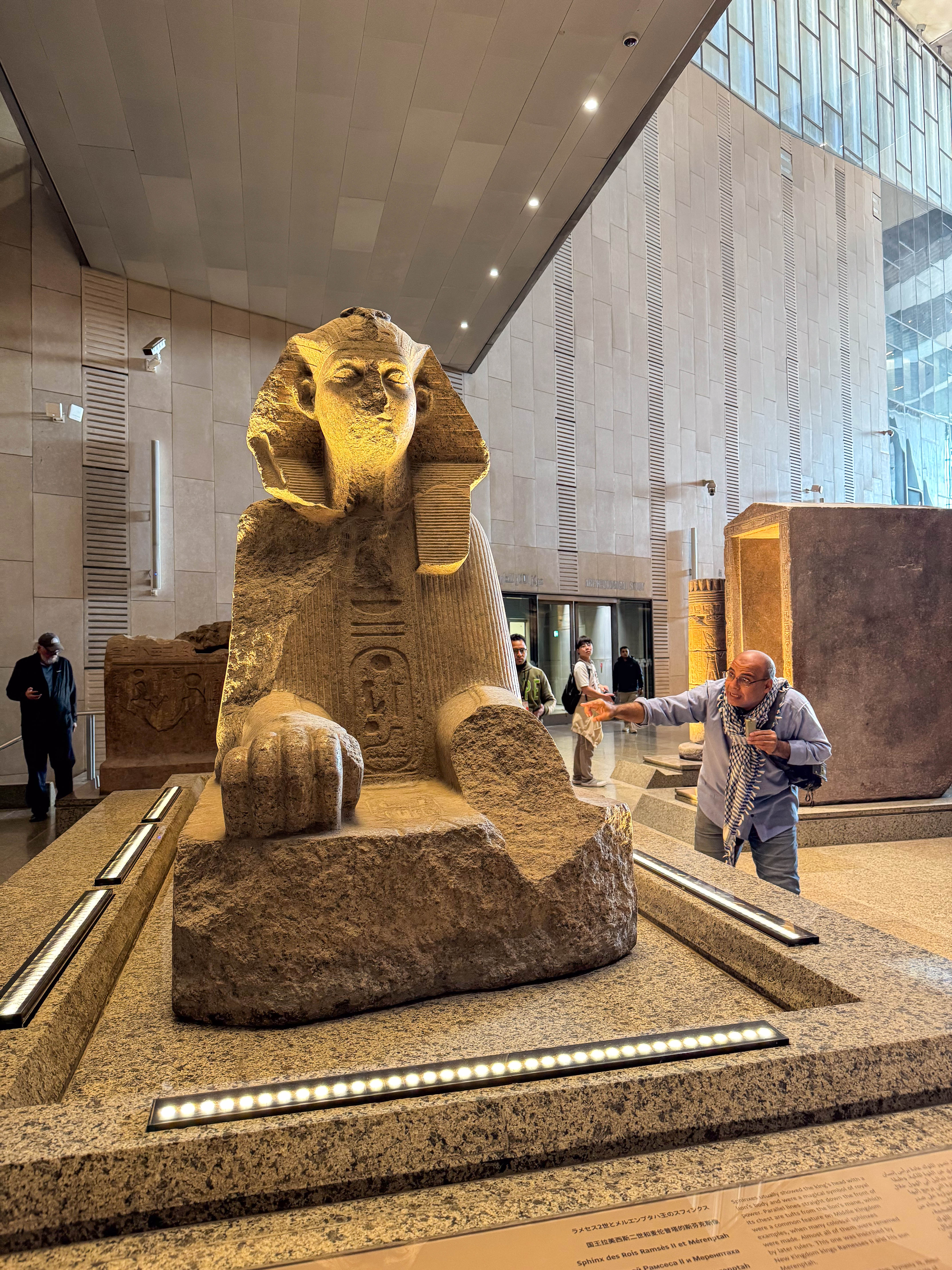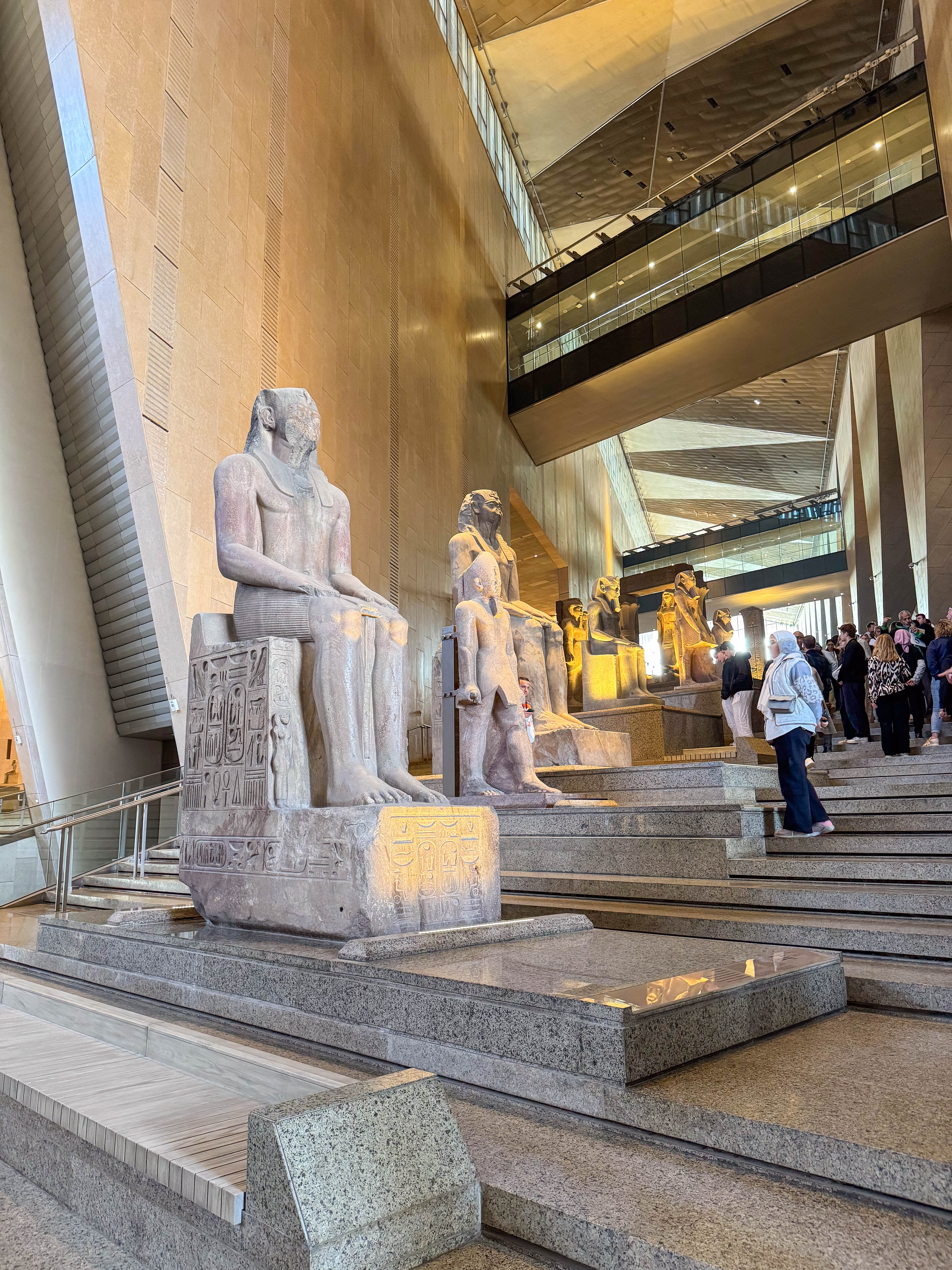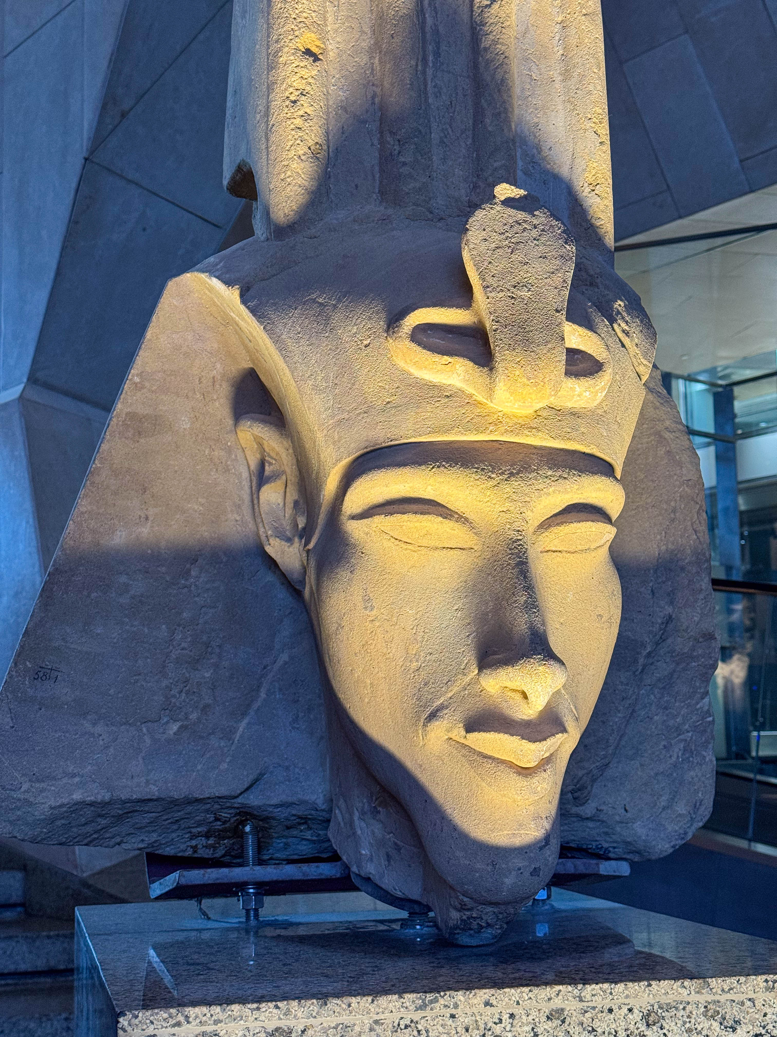 Um acht werden wir dann von unserem Reiseführer Ali abgeholt und es geht zuerst mit einem Kleinbus zum Grand Egyptian Museum (GEM). Unsere Truppe besteht lediglich aus neun Personen und Ali spricht sehr gut Deutsch. Wir haben Glück, dass das GEM am heutigen Sonntag, in Ägypten ist das ein normaler Wochentag, relativ wenig Besucher hat und wir entspannt alles anschauen können.
