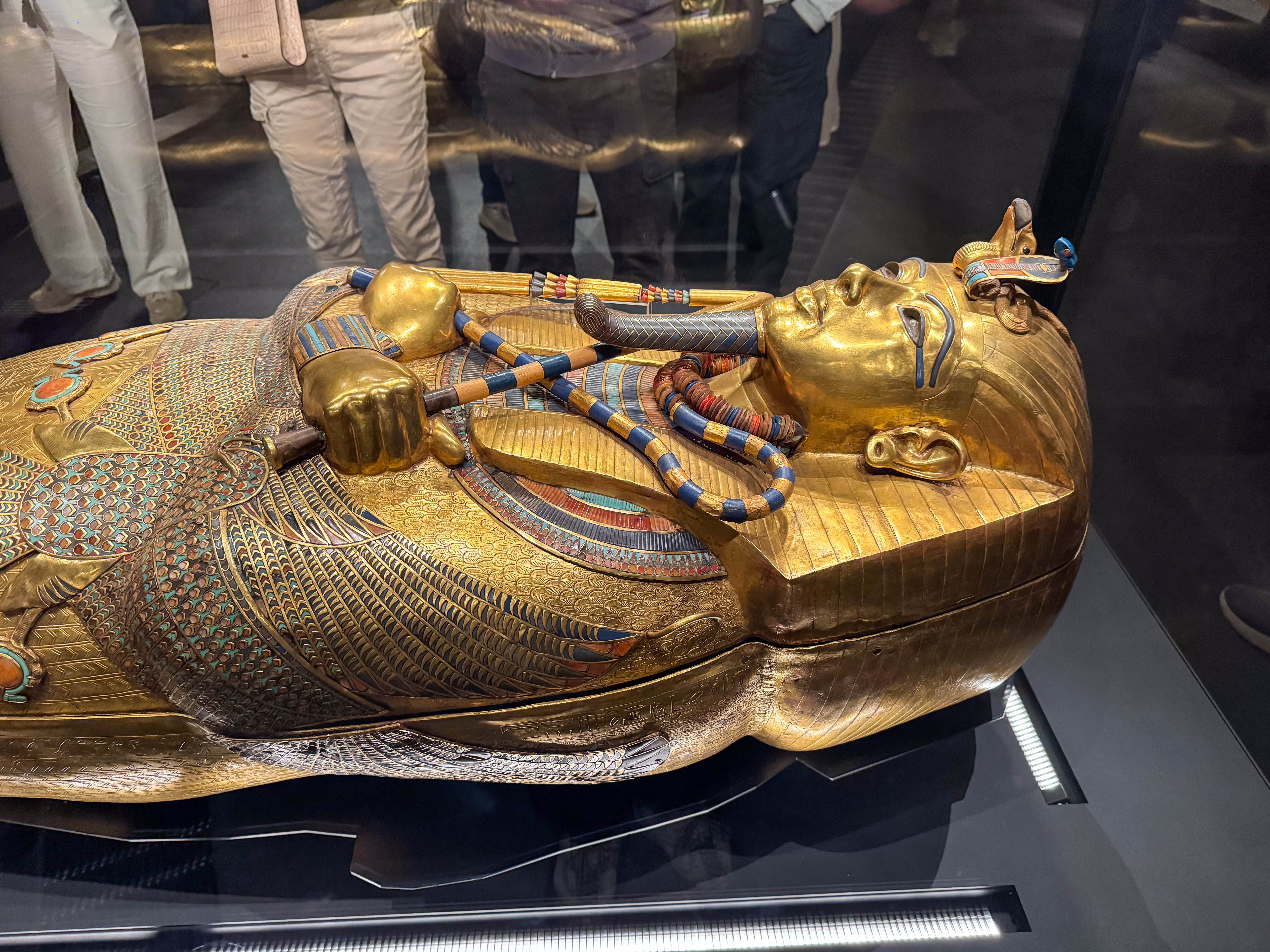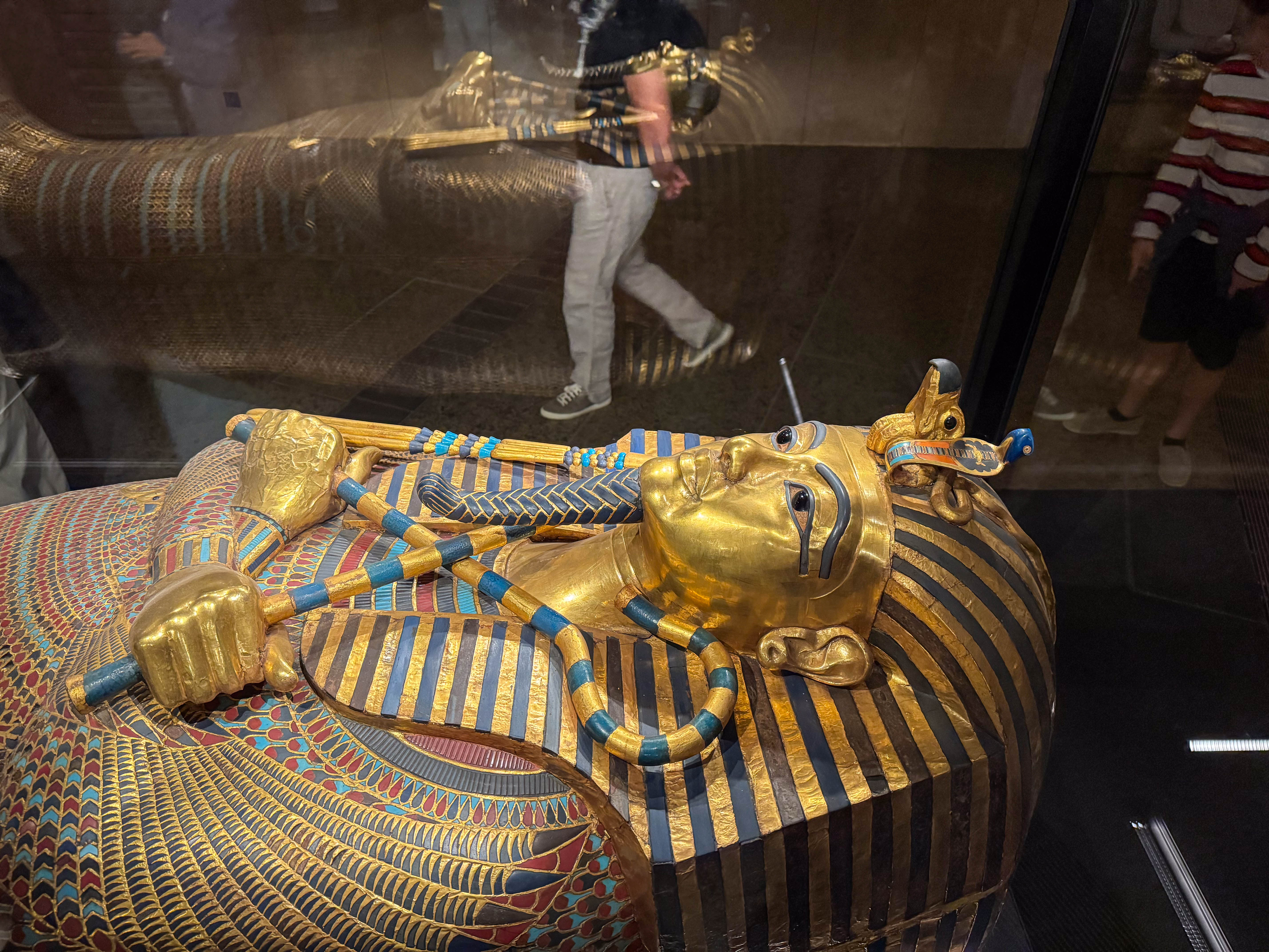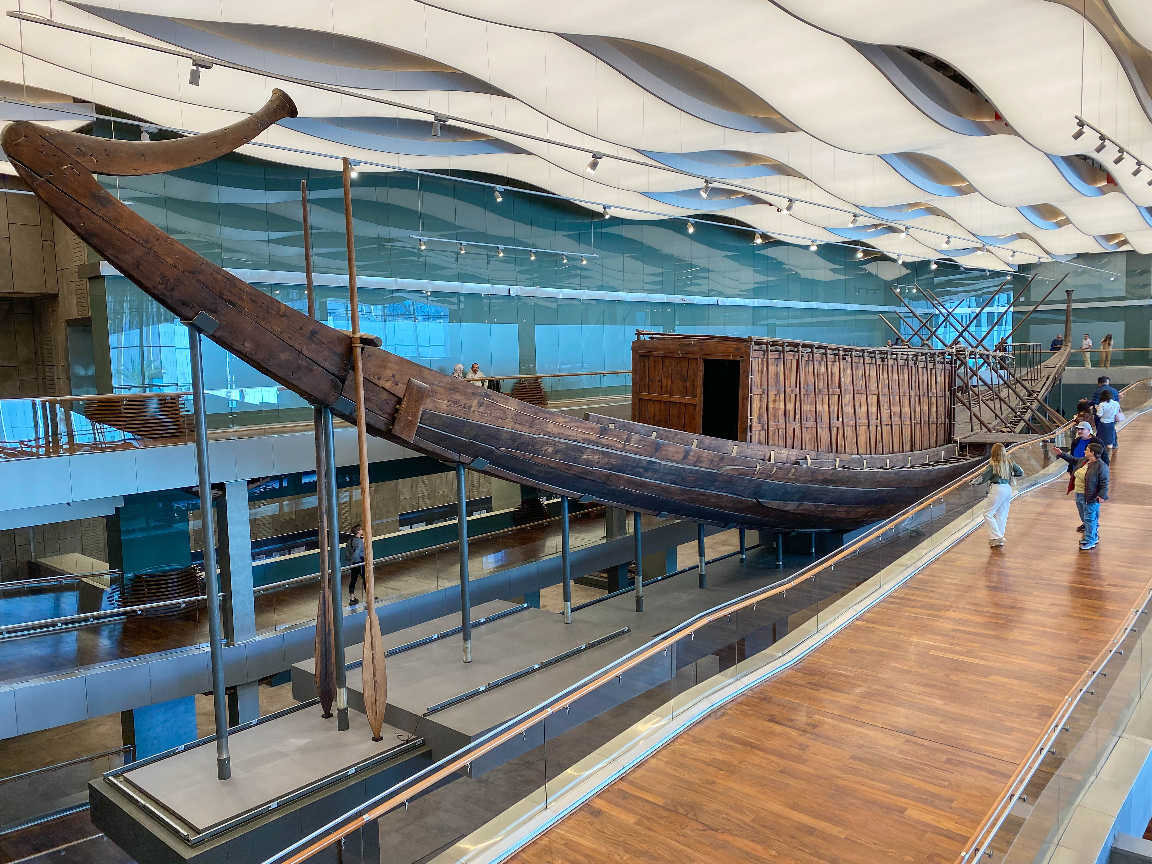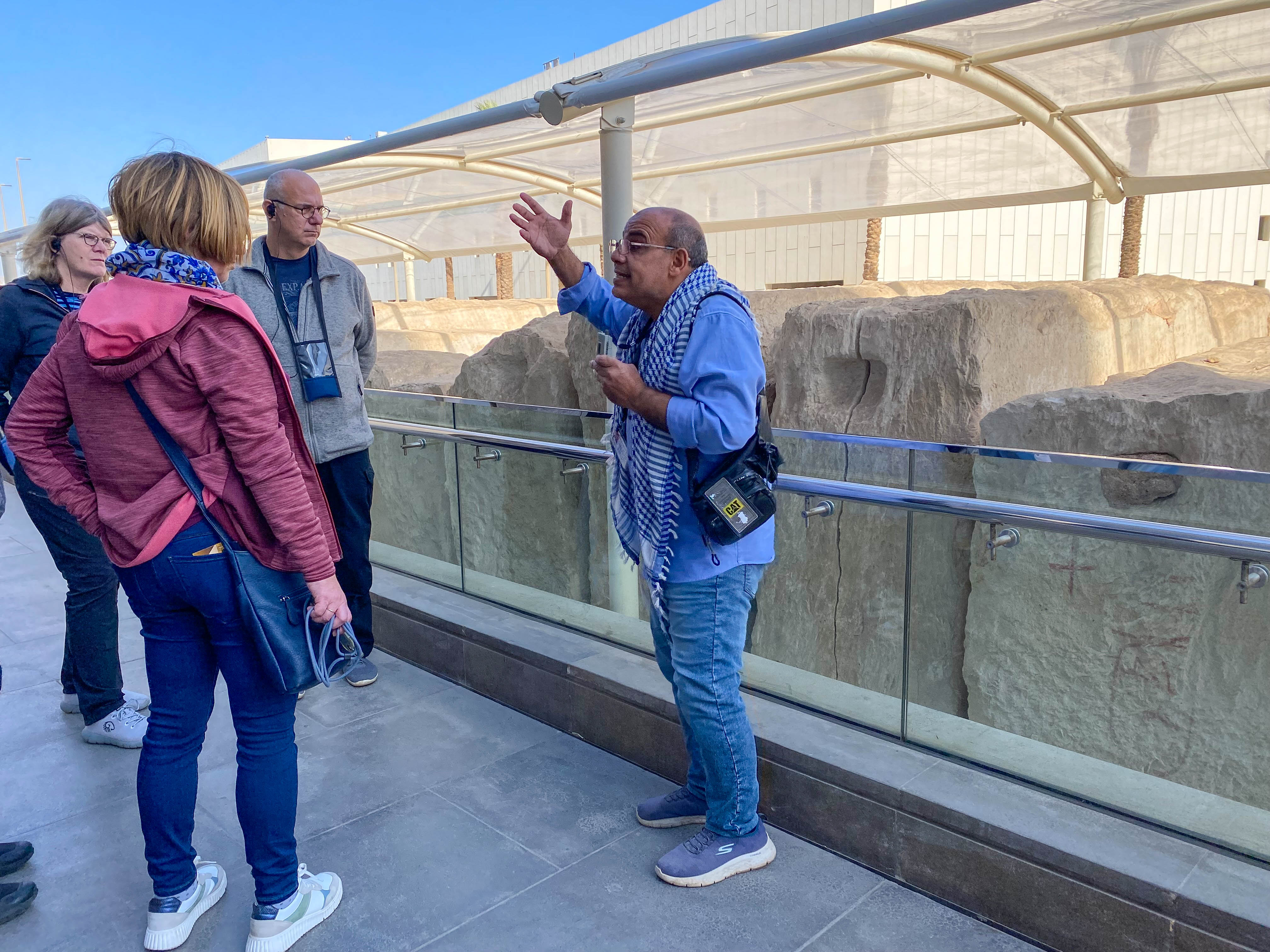 Um acht werden wir dann von unserem Reiseführer Ali abgeholt und es geht zuerst mit einem Kleinbus zum Grand Egyptian Museum (GEM). Unsere Truppe besteht lediglich aus neun Personen und Ali spricht sehr gut Deutsch. Wir haben Glück, dass das GEM am heutigen Sonntag, in Ägypten ist das ein normaler Wochentag, relativ wenig Besucher hat und wir entspannt alles anschauen können.
