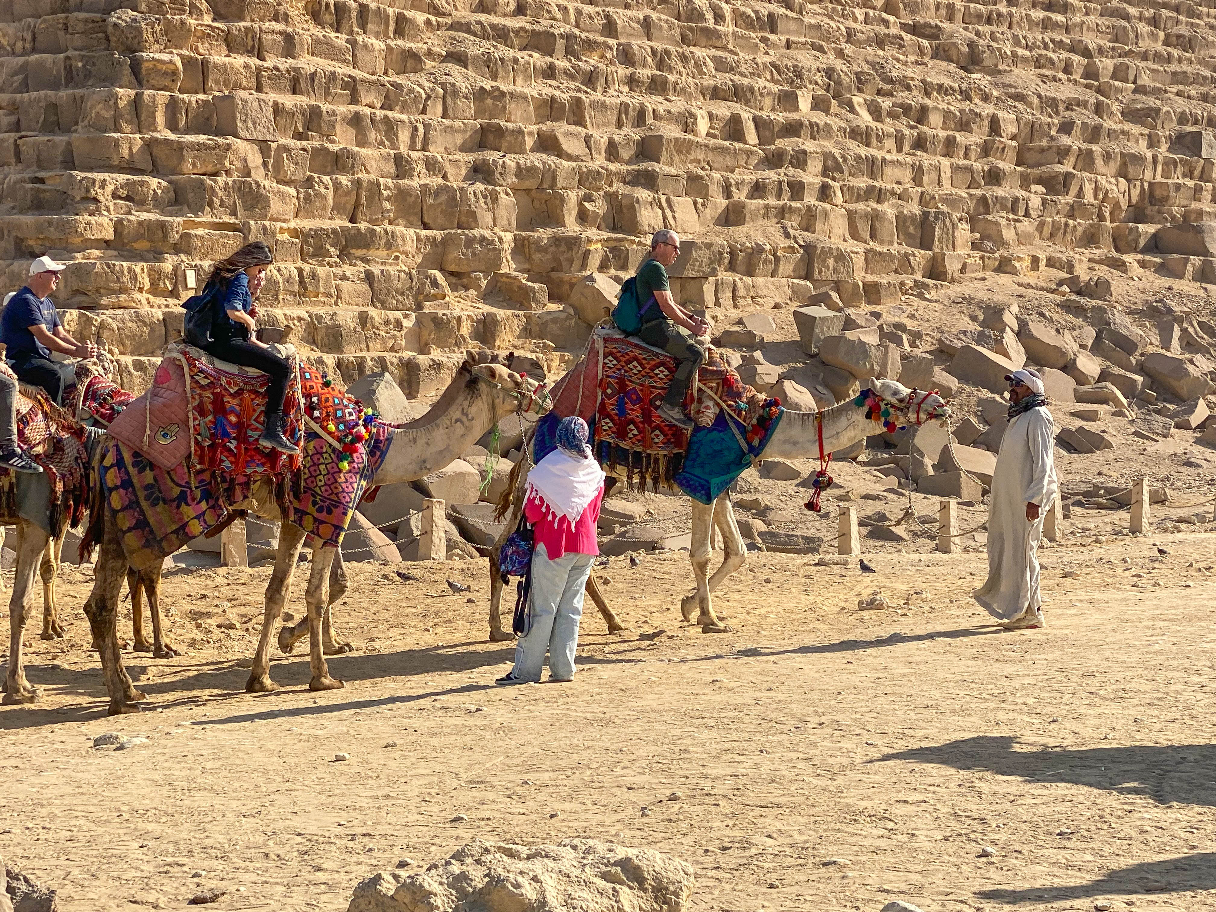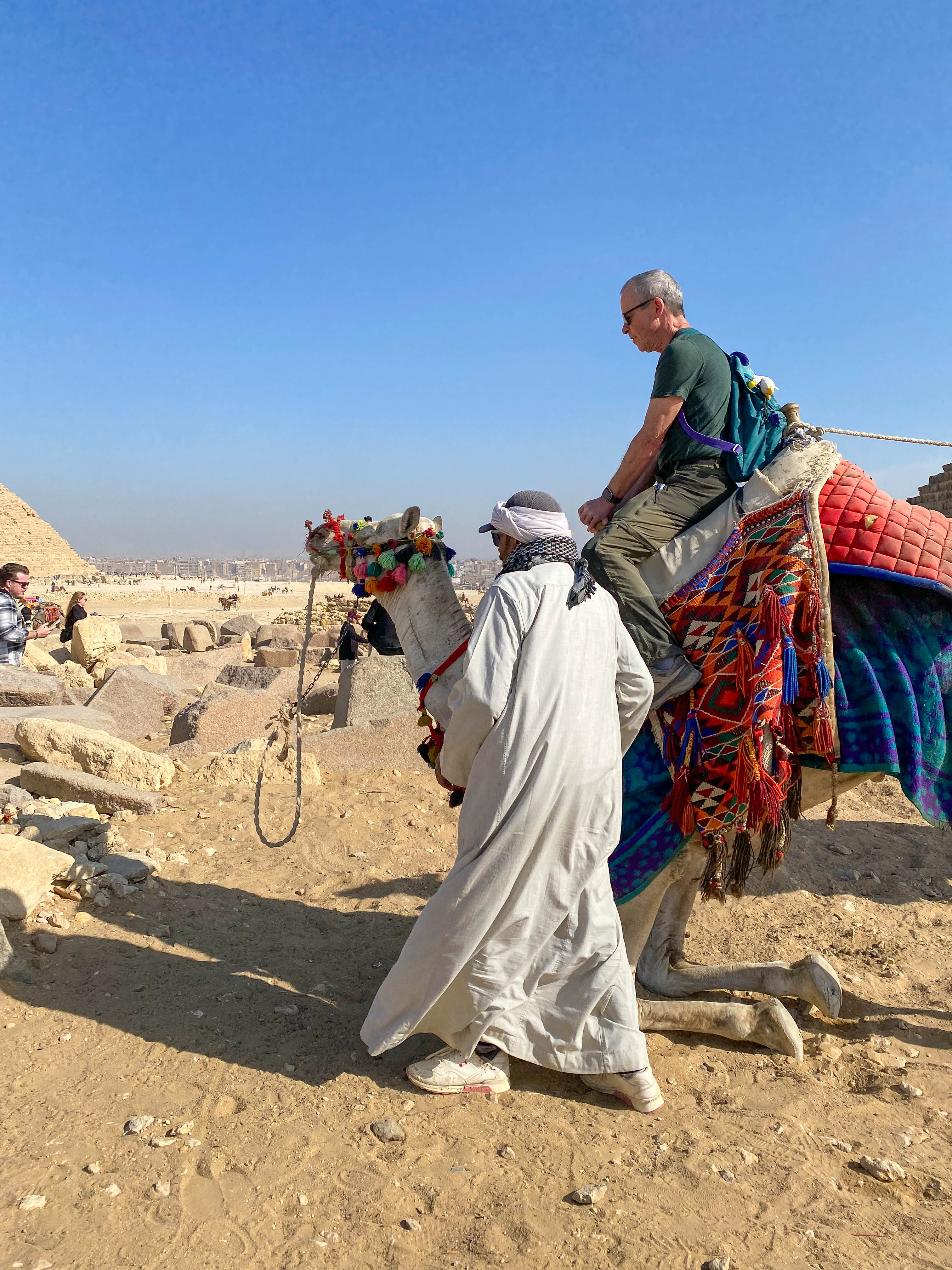 Wir machen dann die Tour zu dem Panoramapunkt, Brigitte nimmt die Pferdekutsche und ich wähle das Wüstenschiff, ein Kamel. Ich muss sagen, eine tolle Erfahrung und ich bin heilfroh, nicht runter gefallen zu sein. Fürs Bakschisch müssen wir dann noch für diverse Fotos posieren, was wir nicht wirklich gebraucht hätten, aber die Leute hier leben von sowas.