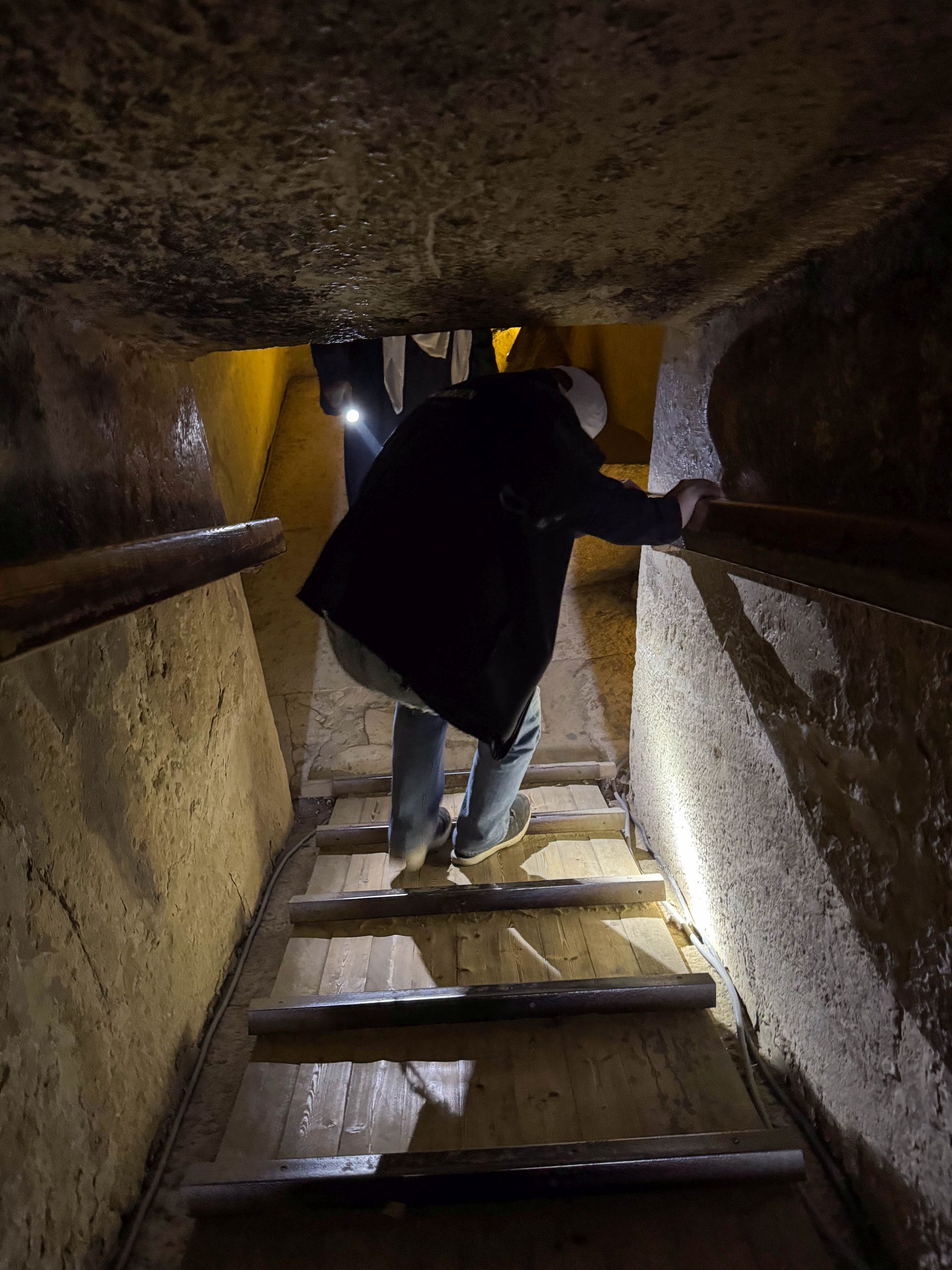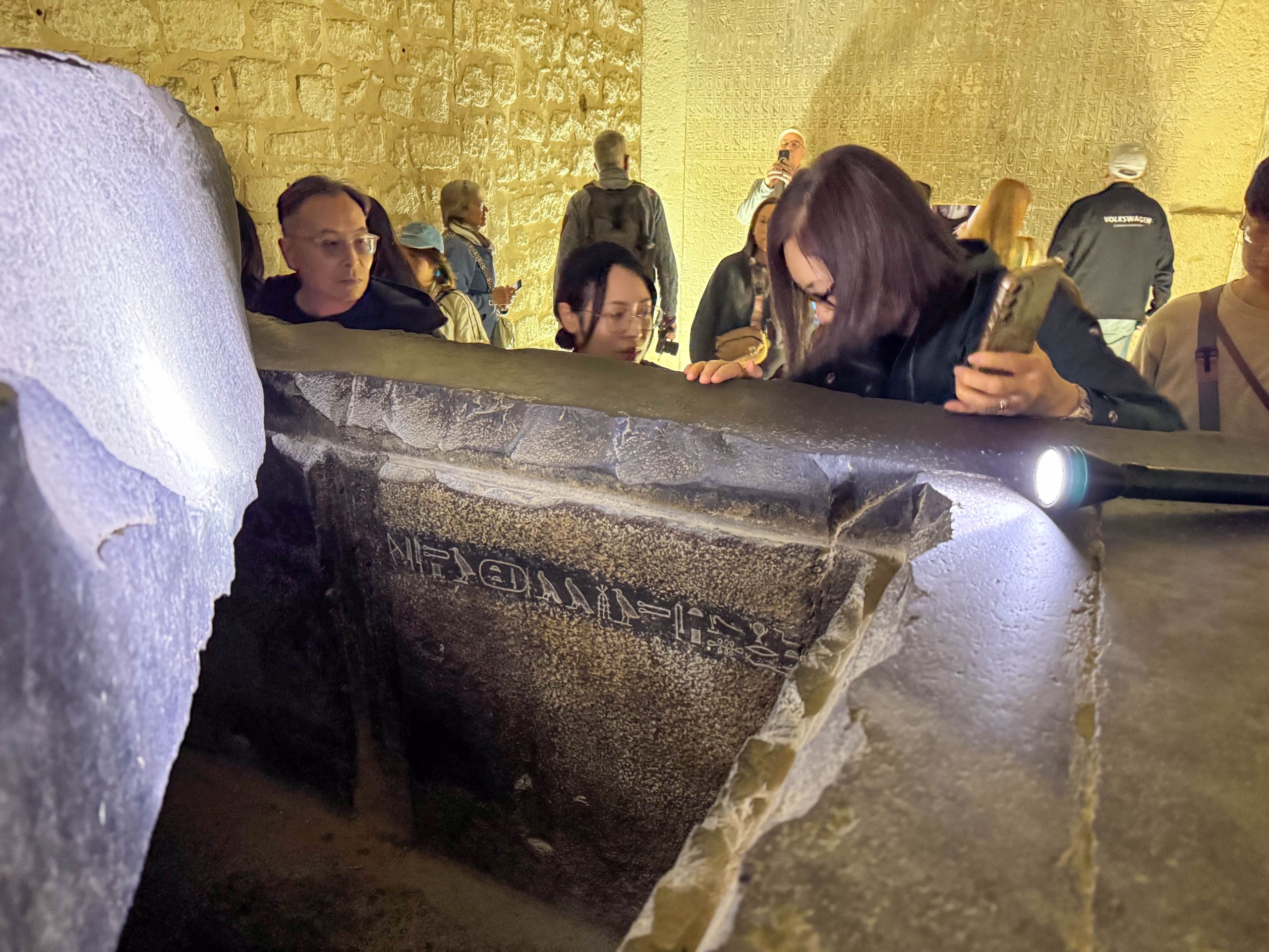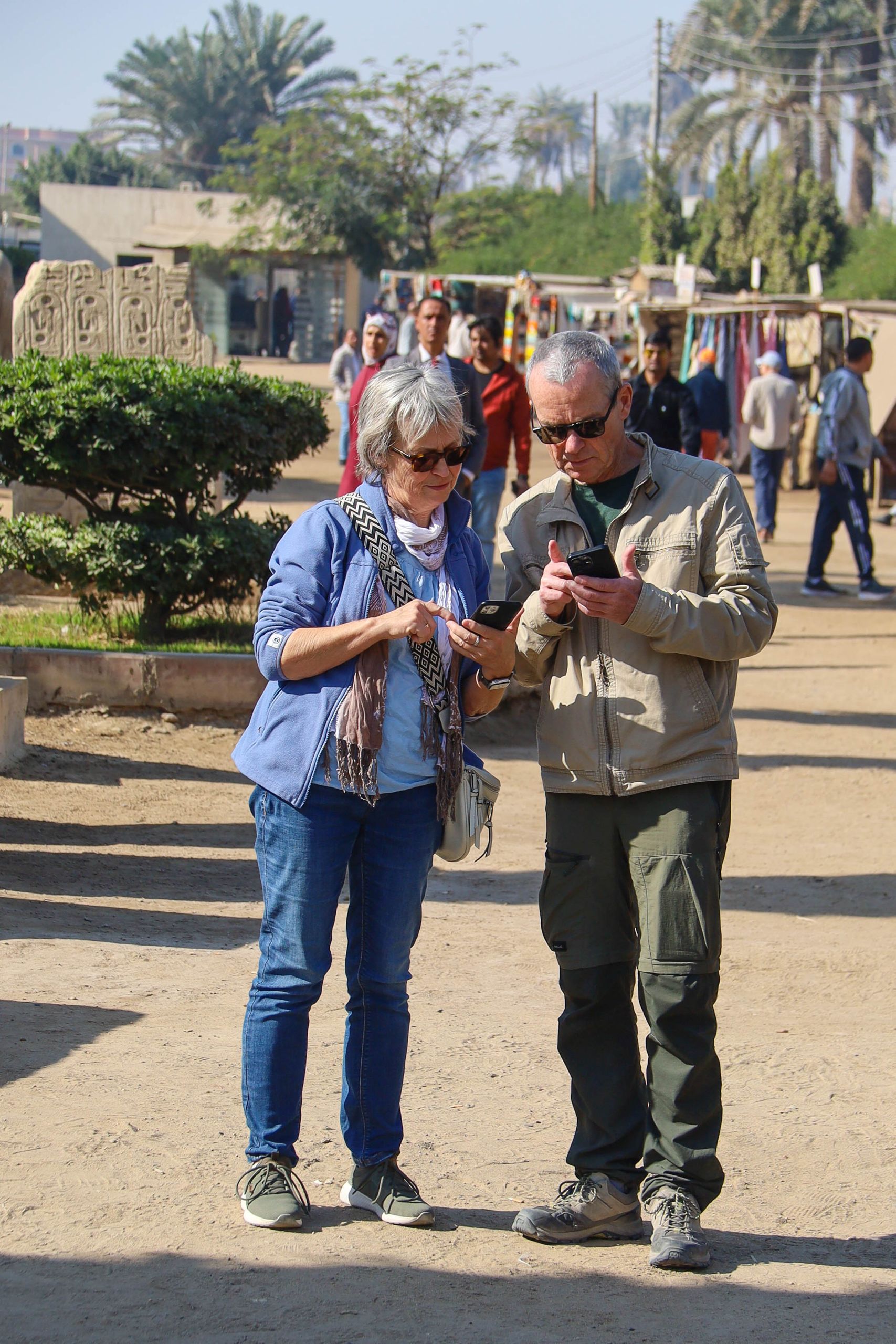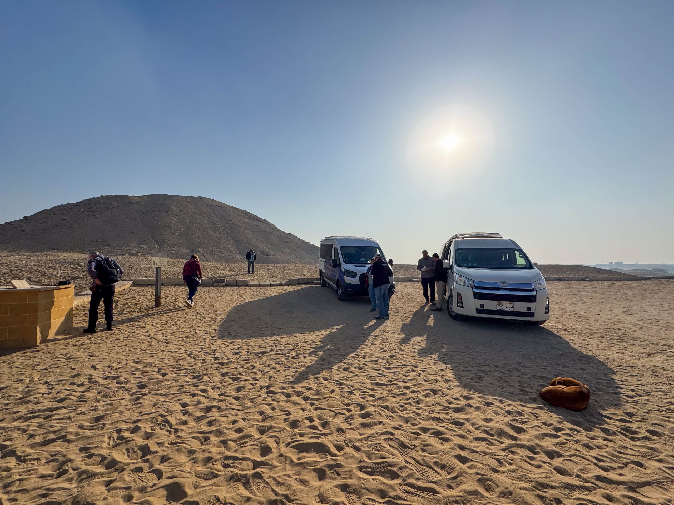 Heute geht es zuerst nach Sakkara. Hier können wir wunderschöne bis zu 5000 Jahre alte Mastabas, also Grabbauten, besichtigen. Unser Vorteil ist, dass wir in einer sehr kleinen Gruppe von neun Personen unterwegs sind und so dort hineindürfen. Die Gräber, z.B. das Grab des Ti oder des Mehu, bei denen es sich um hochrangige Grabwächter und Beamte handelt, sind mit wunderschönen Reliefs verziert, teilweise auch mit roter und blauer Farbe. Die dargestellten Szenen sind größtenteils bis ins kleinste Detail ausgearbeitet und lassen einen wirklich staunen.