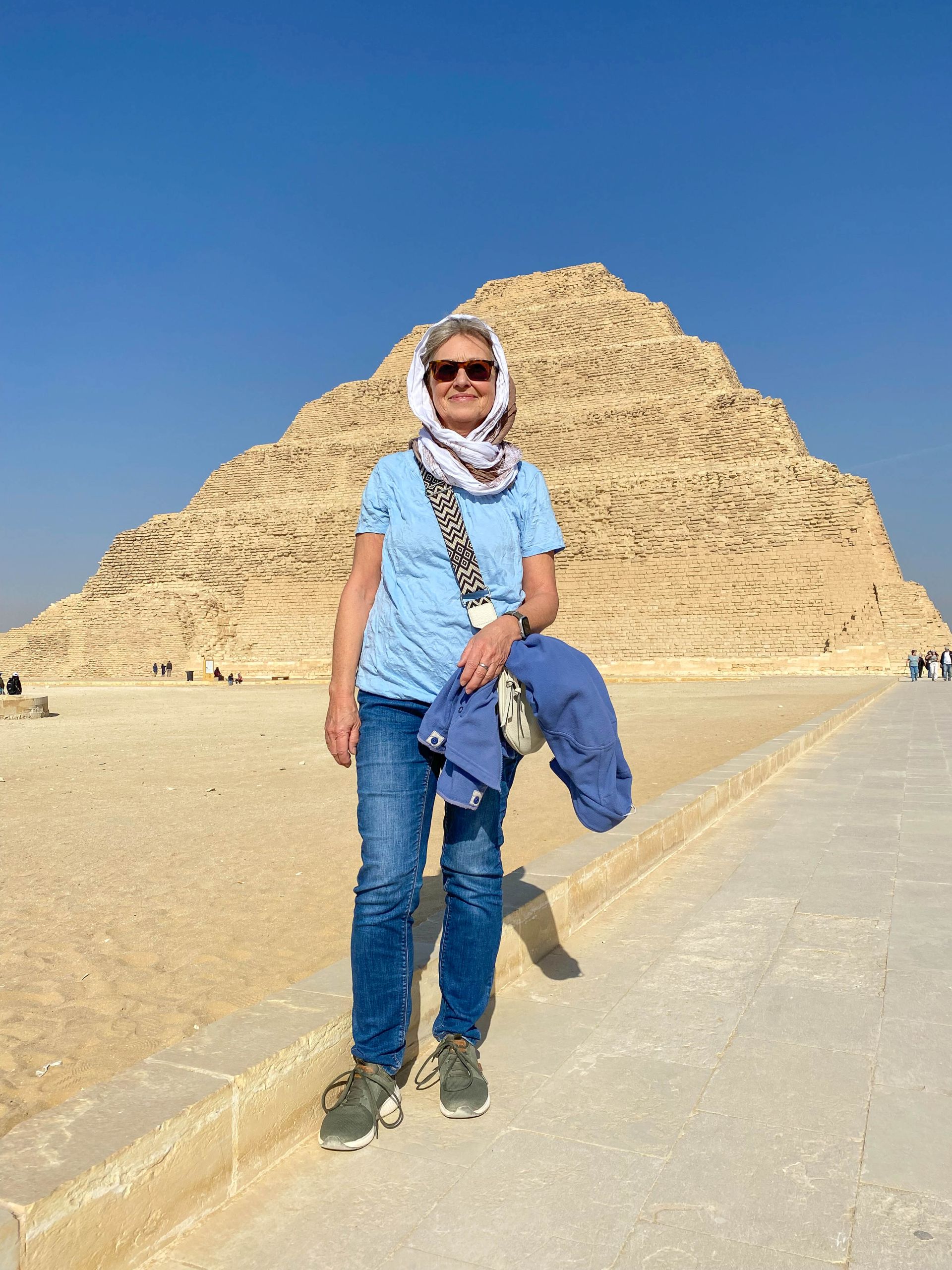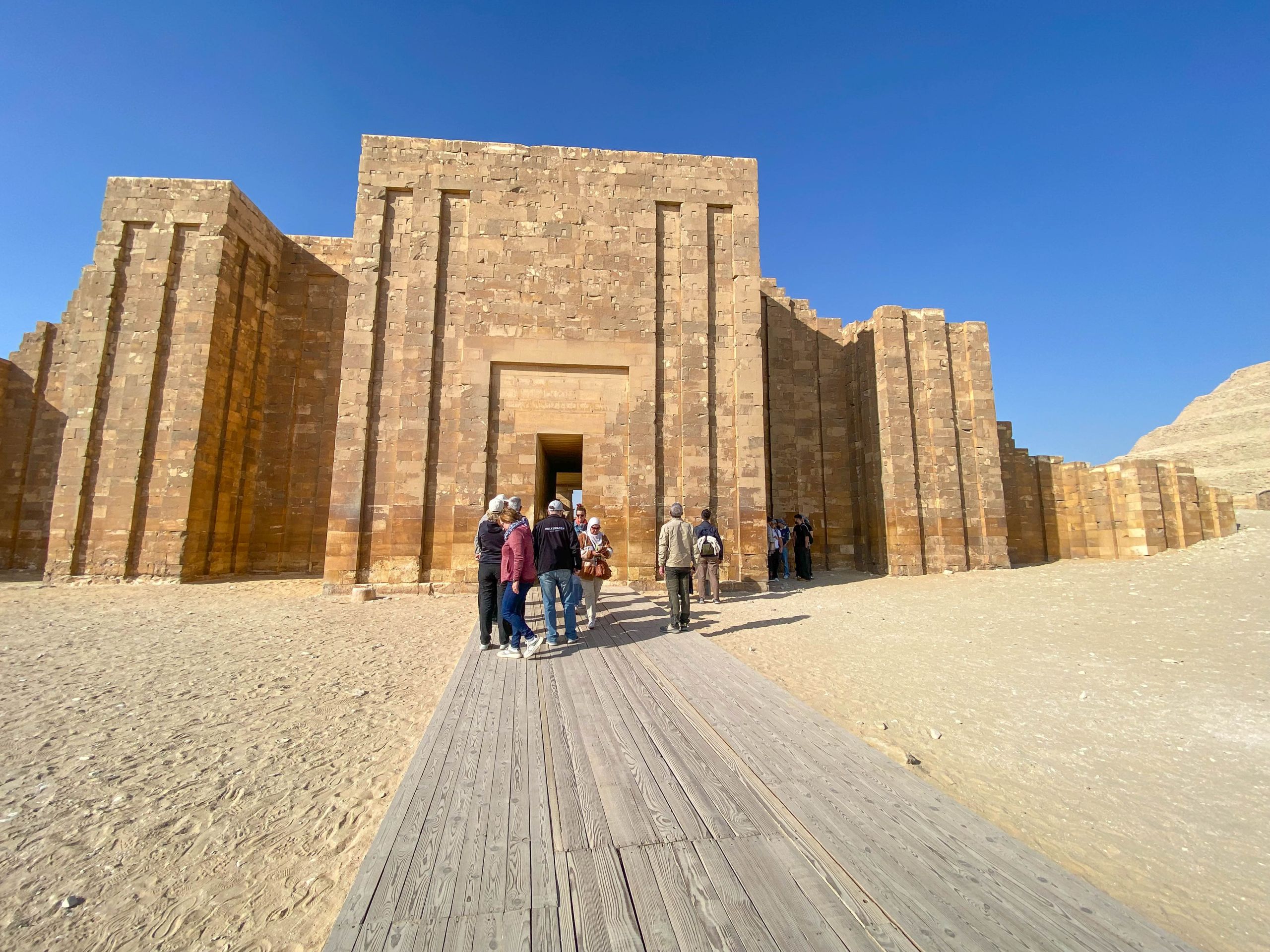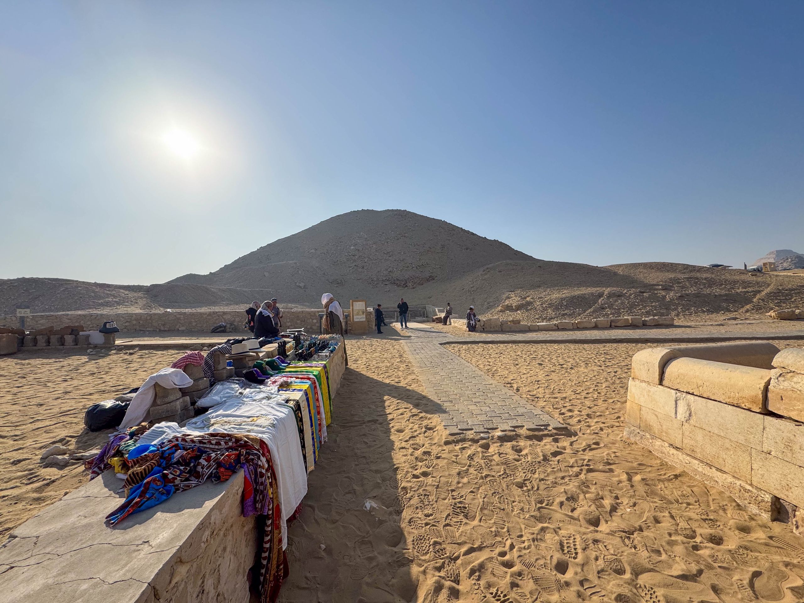Im Anschluss besichtigten wir noch die älteste Pyramide Ägyptens, eine Stufenpyramide mit dem Namen Djoser. Sie liegt ca. 20 km von Kairo entfernt und gehört zur alten Hauptstadt Ägyptens, Memphis, in deren Umfeld wir uns befinden. Die Bauweise der Pyramide unterscheidet sich deutlich von denen in Gizeh. Man sieht, dass die Ägypter ihre Technik im Laufe der Zeit verfeinert haben und später die Pyramiden ohne Stufen gebaut wurden.
