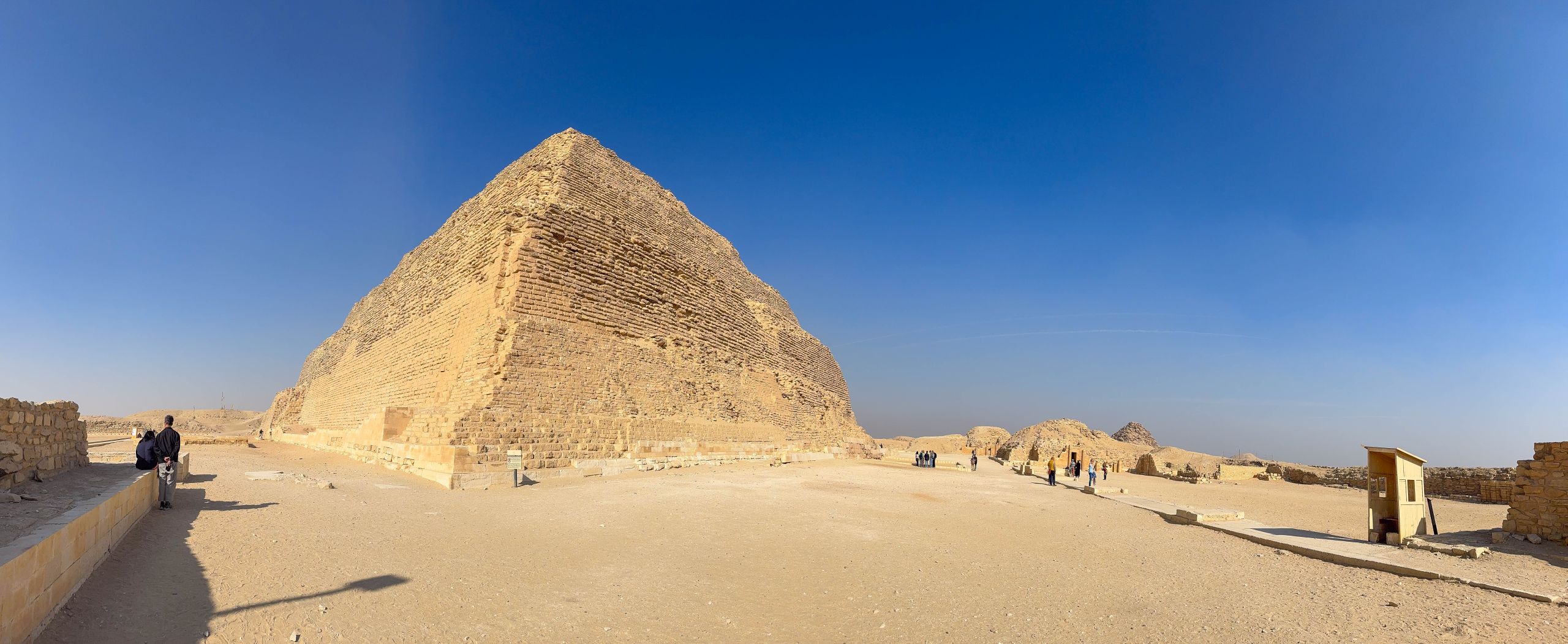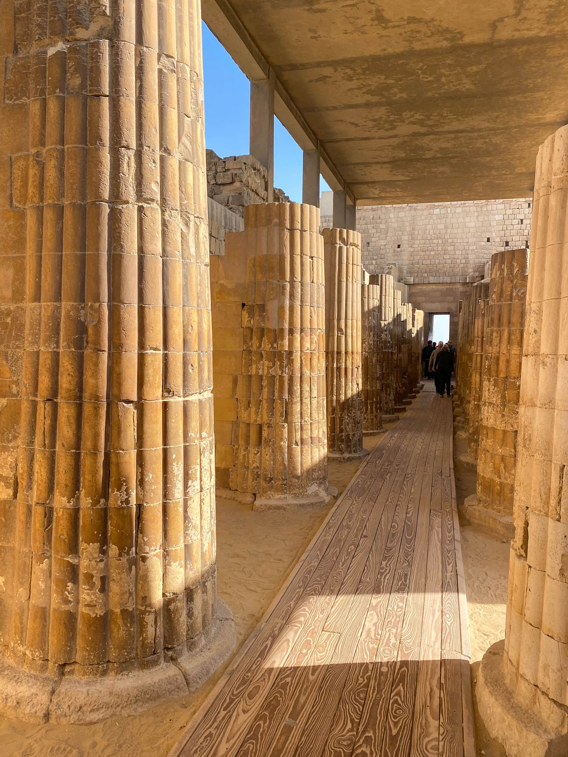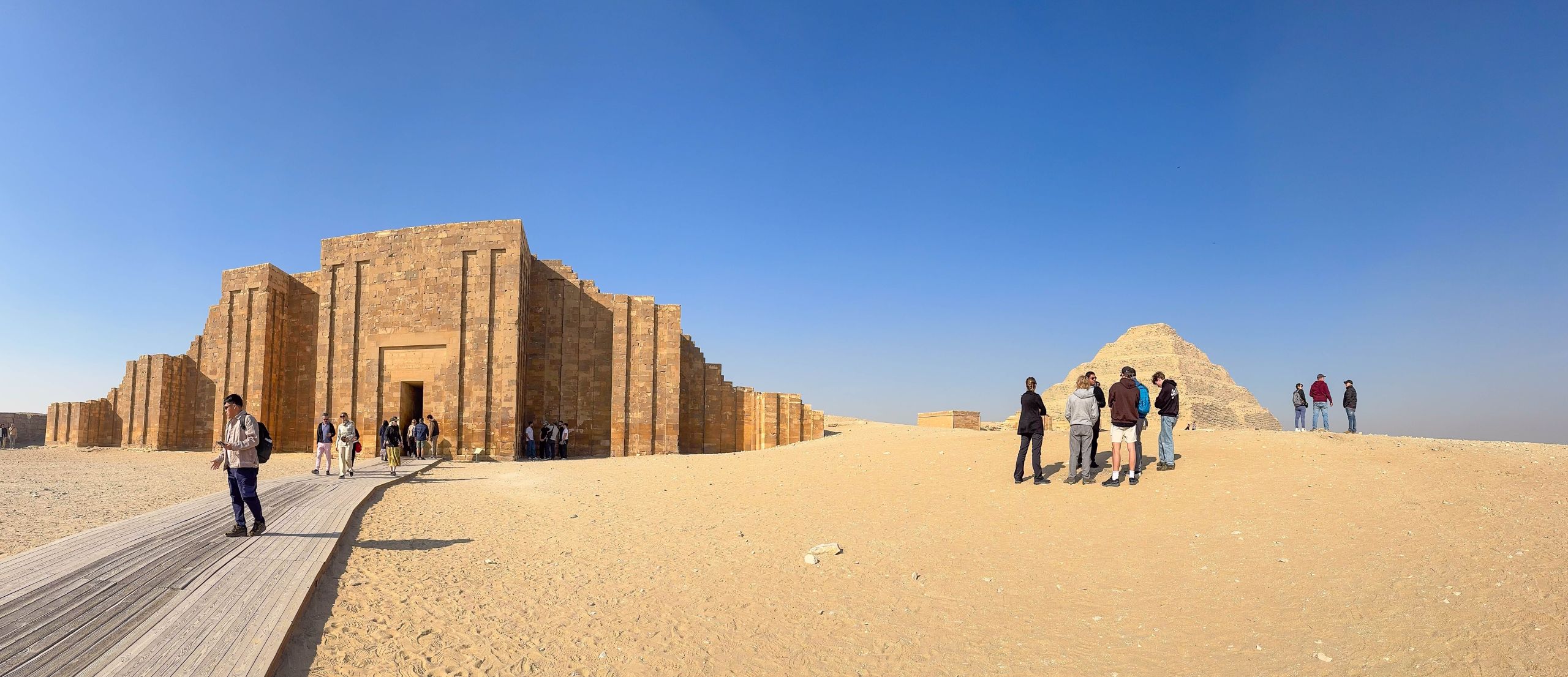 Im Anschluss besichtigten wir noch die älteste Pyramide Ägyptens, eine Stufenpyramide mit dem Namen Djoser. Sie liegt ca. 20 km von Kairo entfernt und gehört zur alten Hauptstadt Ägyptens, Memphis, in deren Umfeld wir uns befinden. Die Bauweise der Pyramide unterscheidet sich deutlich von denen in Gizeh. Man sieht, dass die Ägypter ihre Technik im Laufe der Zeit verfeinert haben und später die Pyramiden ohne Stufen gebaut wurden.