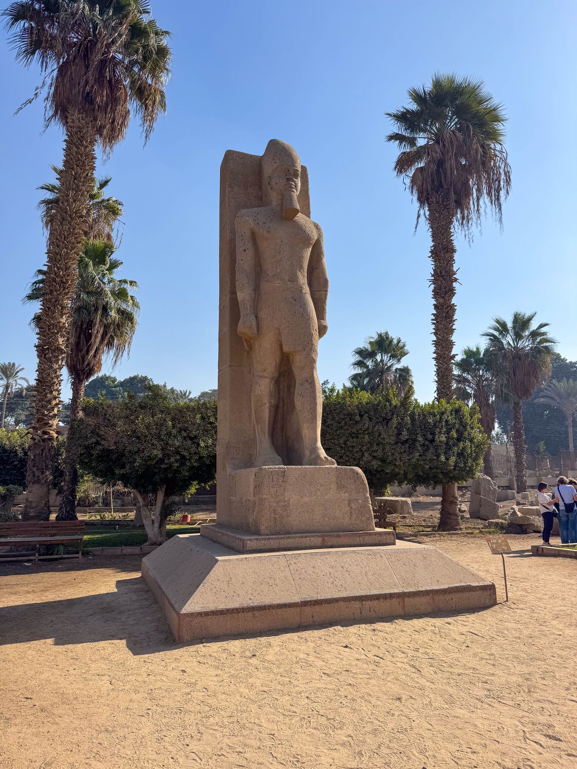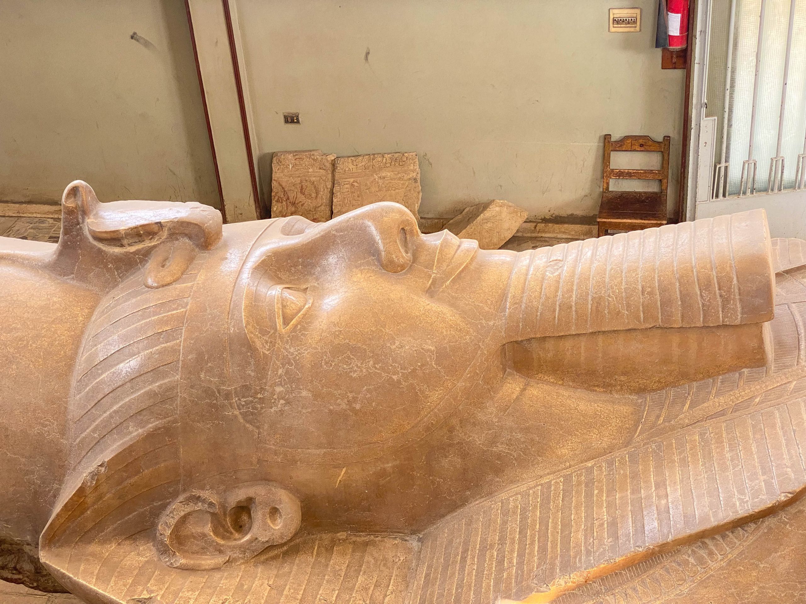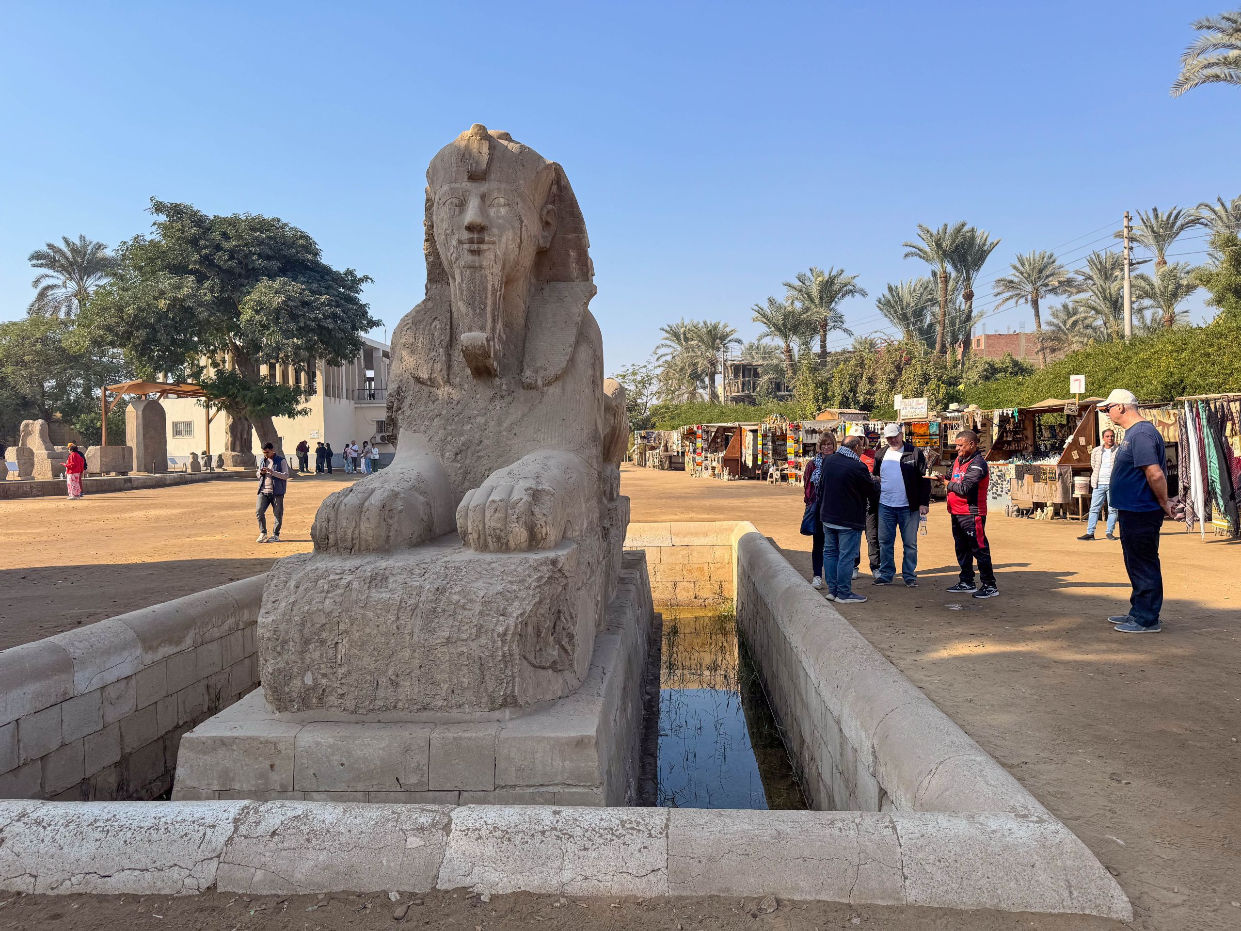 Mit dem Bus geht es danach weiter zur antiken Stadt Memphis. Hier liegt eine ca. 10 Meter grosse, liegende Statue von Ramses II. Sie wurde 1821 entdeckt. Die Statue ist leider durch Wasser im Fußbereich beschädigt und steht daher nicht aufrecht. Ausserdem gibt es weitere Ausgrabungen, die aber grösstenteils nur aus Fragmenten bestehen. Aus dem Grund werden hier keine weiteren Ausgrabungen mehr durchgeführt. In Sakkara wird jedoch immer noch an mehreren Stellen in mühevoller Handarbeit weiter gegraben.
