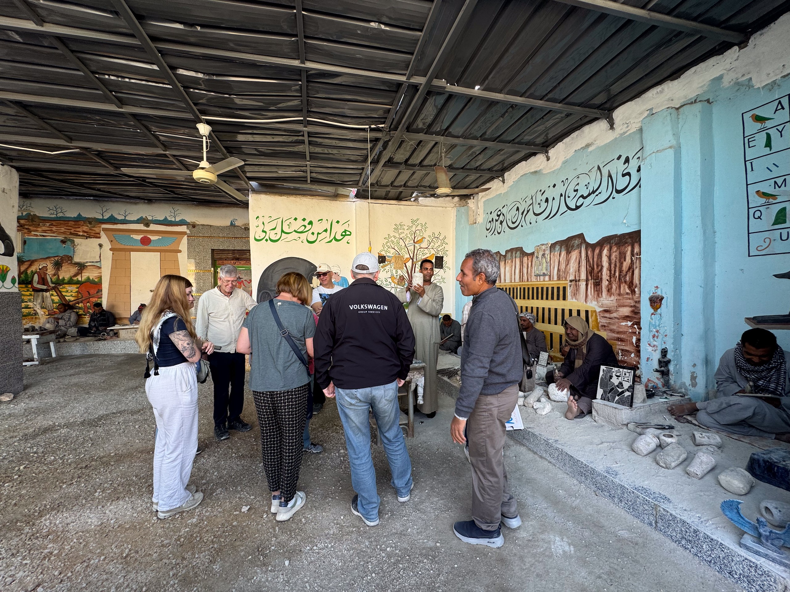 Unser Programm ist heute sehr straff, da unser Schiff um 13.30 Uhr ablegen soll. So geht es weiter in eine Alabasterfabrik, wo man wieder versucht, uns etwas zu verkaufen. Die Art, wie uns die Verarbeitungsweise des Alabaster dargestellt wird, ist allerdings sehr sehenswert und lustig, wir haben es leider nicht gefilmt. Trotzdem kauft keiner aus unserer Gruppe etwas, aber wir haben auch um keine Kaufveranstaltung gebeten und hätten die Zeit lieber in den Sehenswürdigkeiten verbracht.