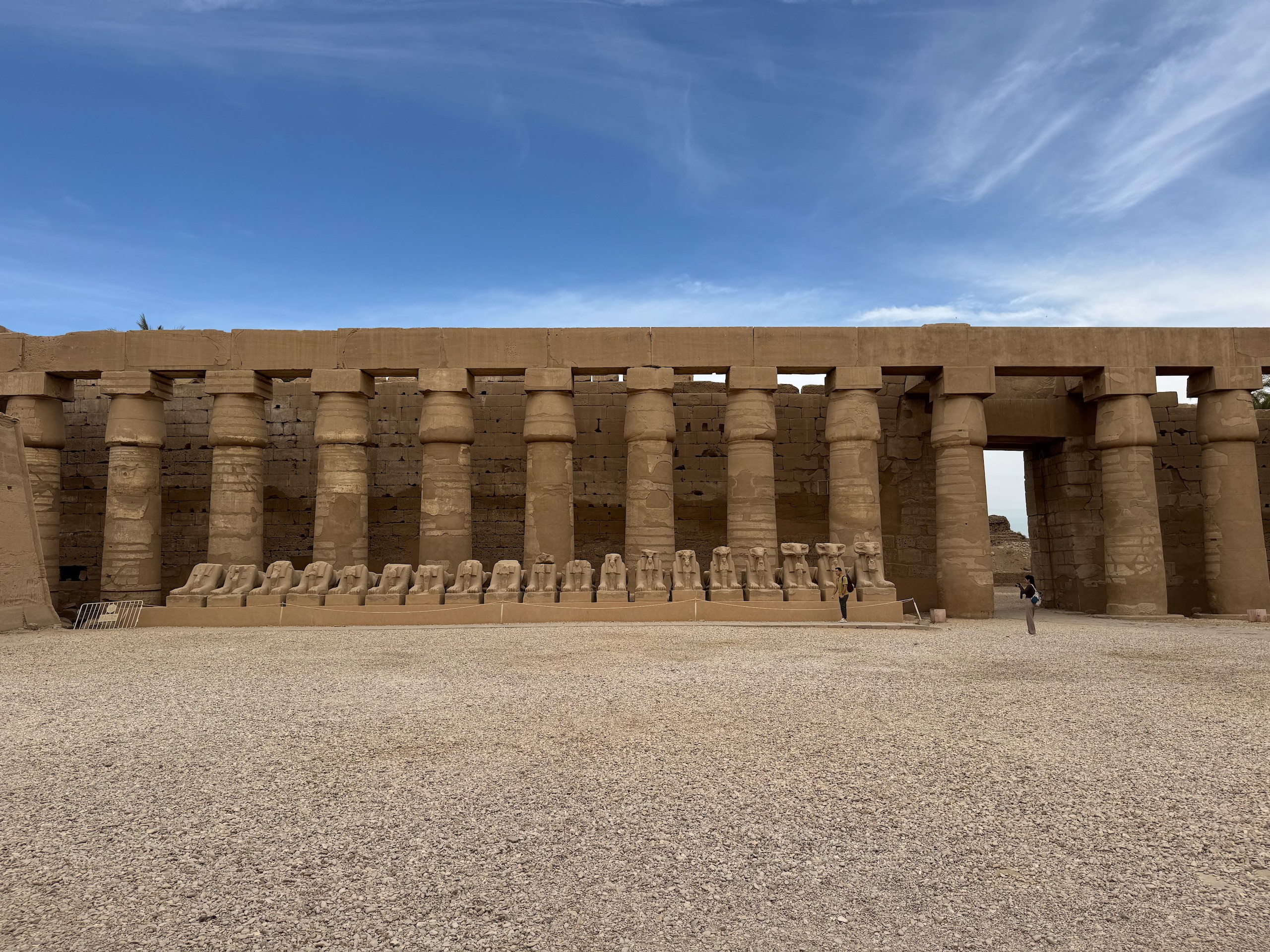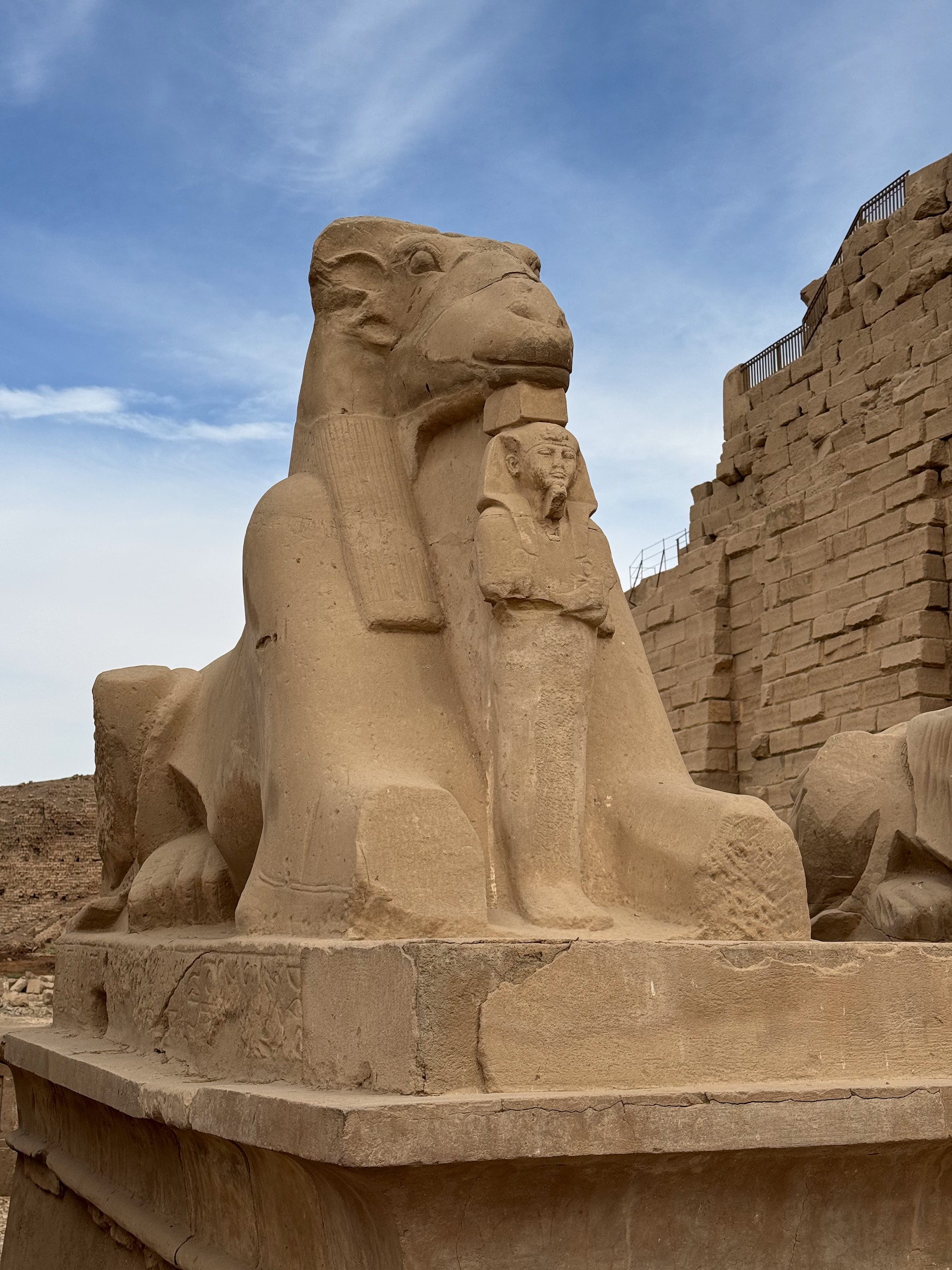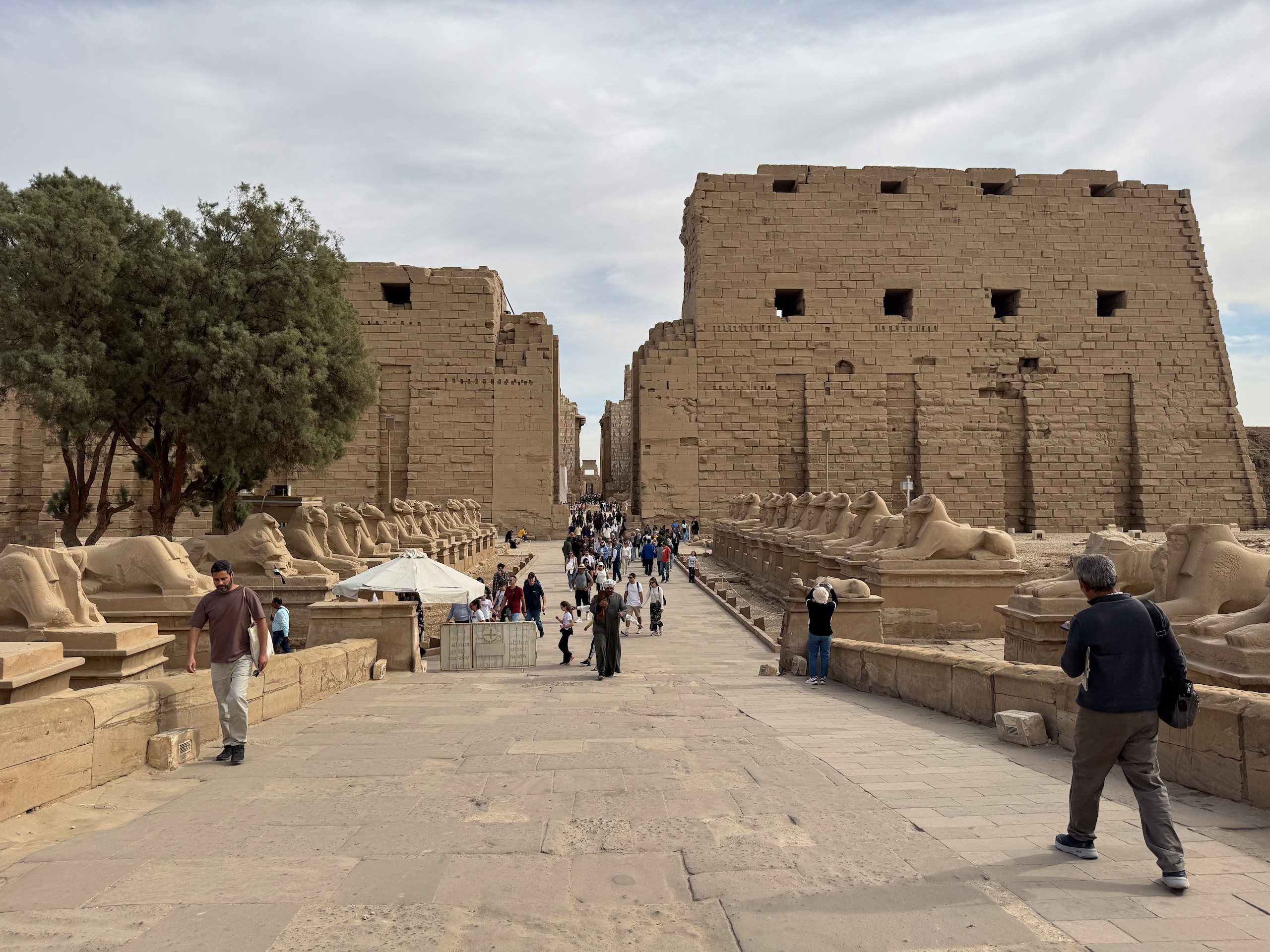 Ist sehenswert, aber da wir noch zum Karnak Tempel wollen, düst unser Fahrer zügig weiter. Während der Fahrt bekommen wir wieder einen Einblick in das einfache Leben der Ägypter. Da gibt es einfach immer so vieles während der Fahrt zu entdecken. Zu guter Letzt erreichen wir dann den Karnak Tempel, der ein ziemlich großes Gelände umfasst und wir merken bald, dass wir hier gern etwas mehr Zeit gehabt hätten. Aber so können wir nur staunend durch die Anlage laufen und Fotos schiessen und ab und zu den Worten des Reiseleiters lauschen.