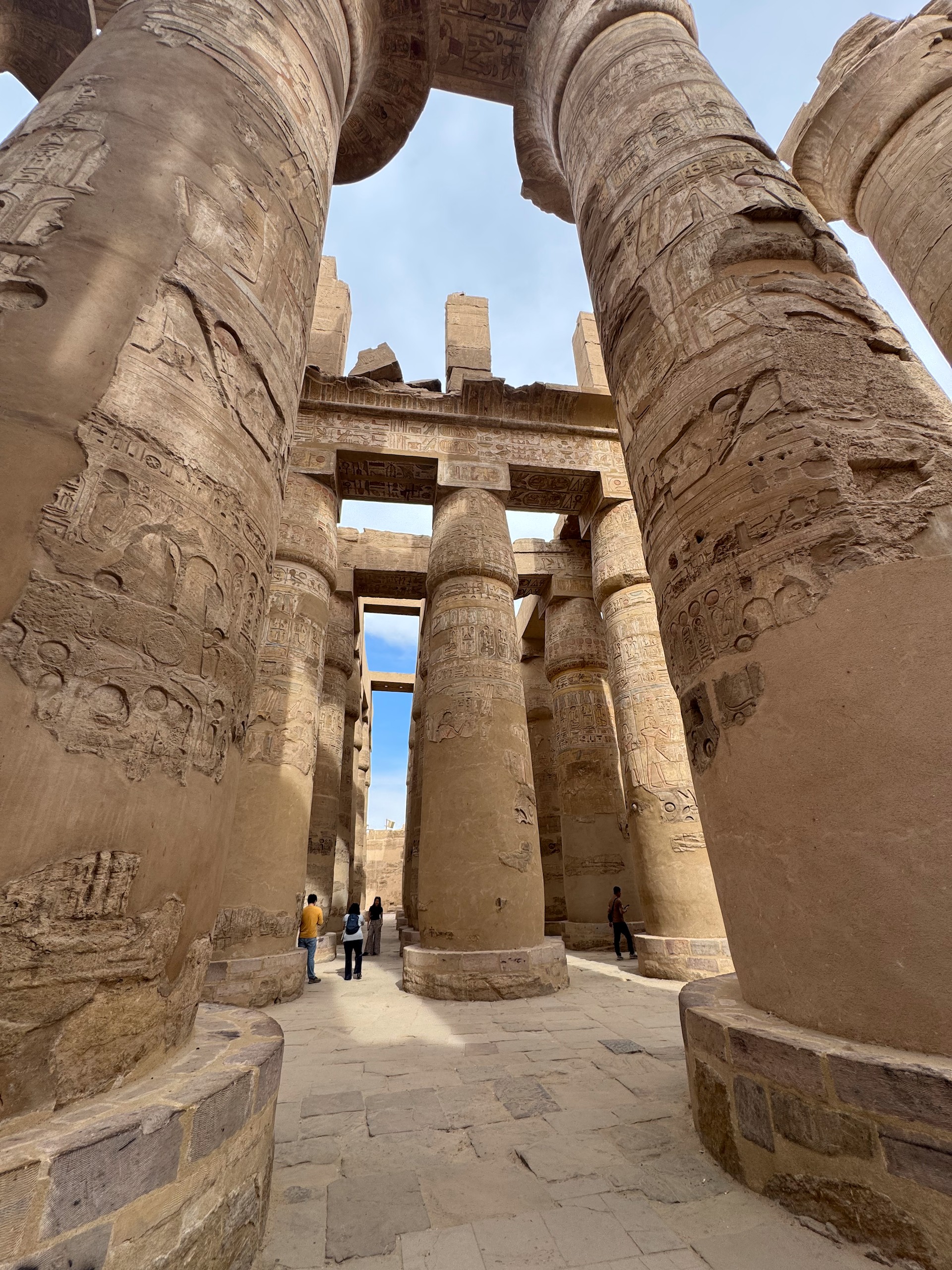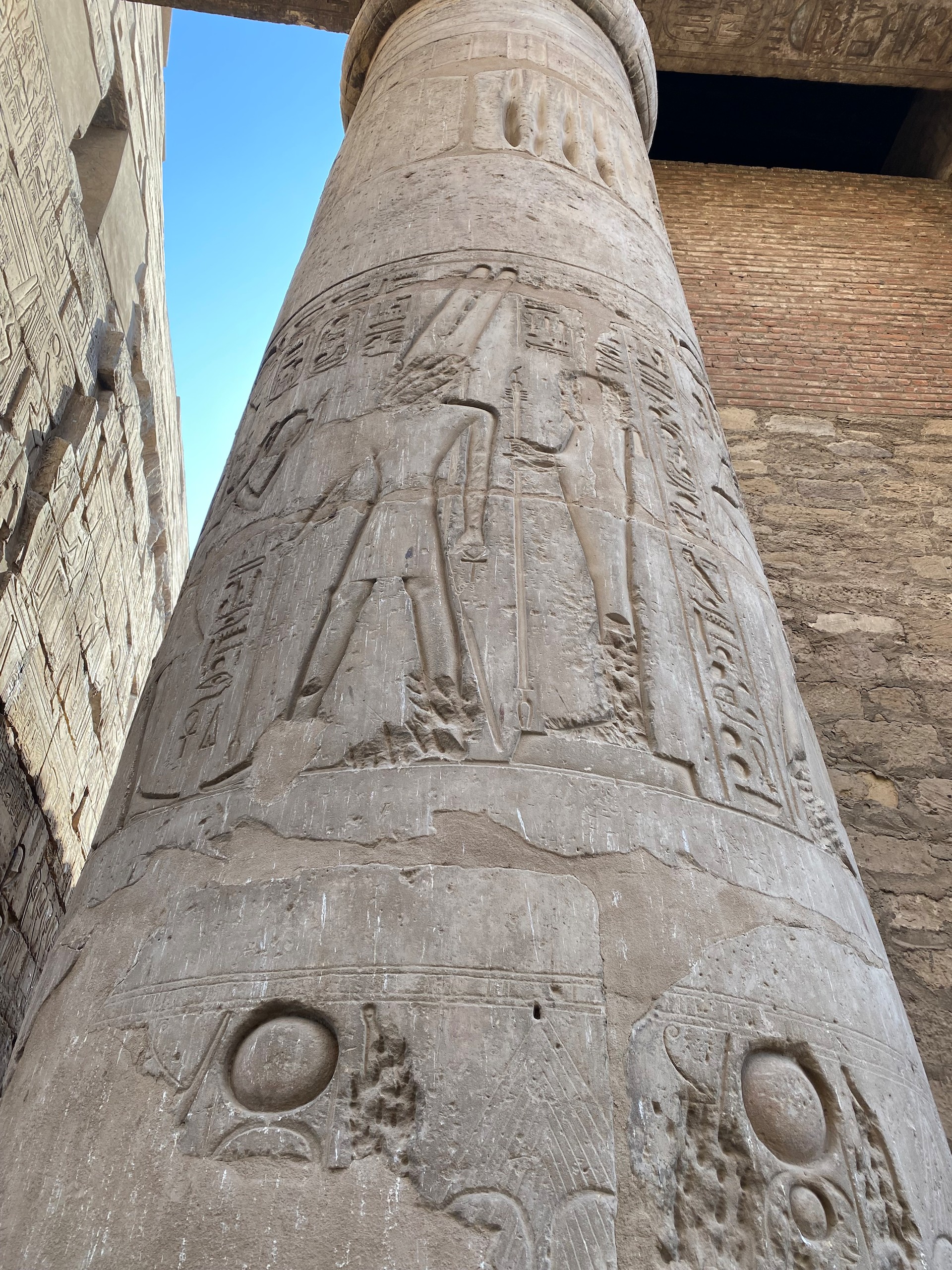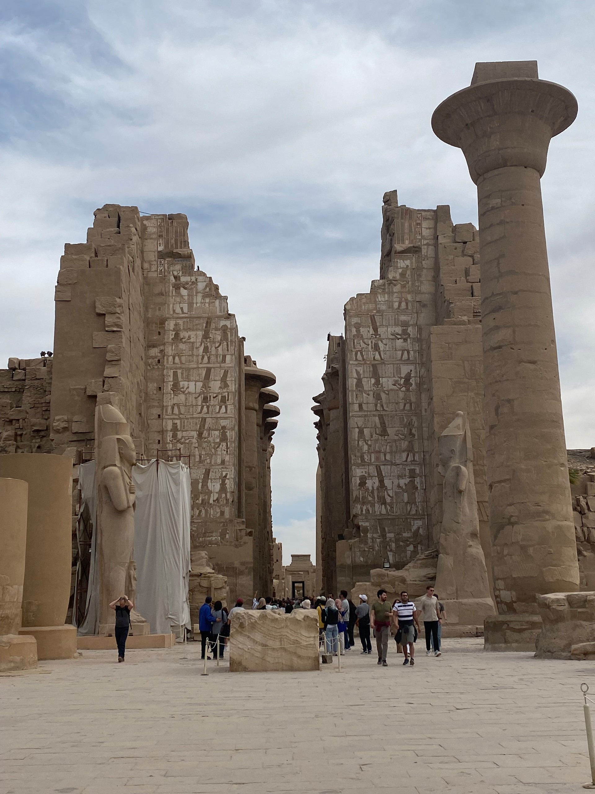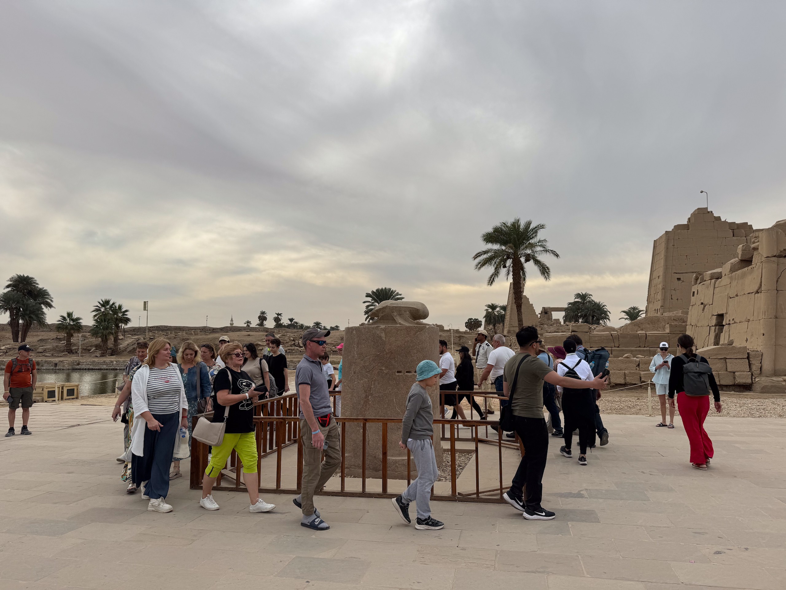 Ist sehenswert, aber da wir noch zum Karnak Tempel wollen, düst unser Fahrer zügig weiter. Während der Fahrt bekommen wir wieder einen Einblick in das einfache Leben der Ägypter. Da gibt es einfach immer so vieles während der Fahrt zu entdecken. Zu guter Letzt erreichen wir dann den Karnak Tempel, der ein ziemlich großes Gelände umfasst und wir merken bald, dass wir hier gern etwas mehr Zeit gehabt hätten. Aber so können wir nur staunend durch die Anlage laufen und Fotos schiessen und ab und zu den Worten des Reiseleiters lauschen.