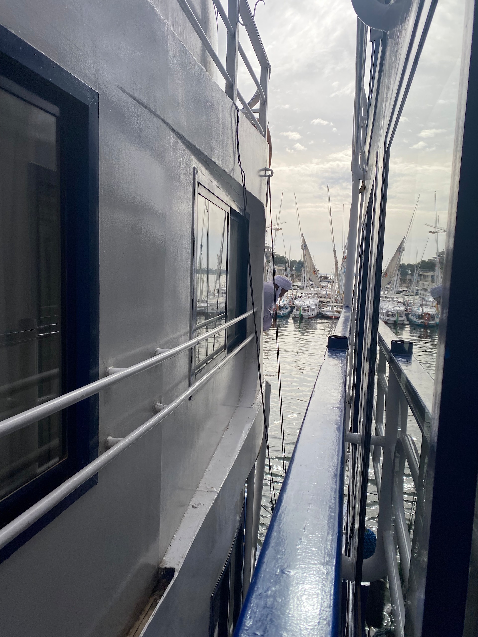 Wenn man aber anlandete, nutzen die Fenster nichts mehr, da hier ein Schiff neben dem anderen lag, wie die Sardinen in der Büchse. Das musste aber so sein, damit auch die Passagiere aus den hinteren Schiffen durch alle anderen Schiffslobbies ans Ufer gelangen konnten. Jetzt freuen wir uns wieder auf zu Hause, zwar nicht auf die Kälte, aber unser Bett und unser Essen. Und ganz sicher auf Reisen in Länder, die ohne Bakschisch auskommen, auch wenn wir uns nicht wirklich belästigt gefühlt haben und eine gute Zeit hatten.