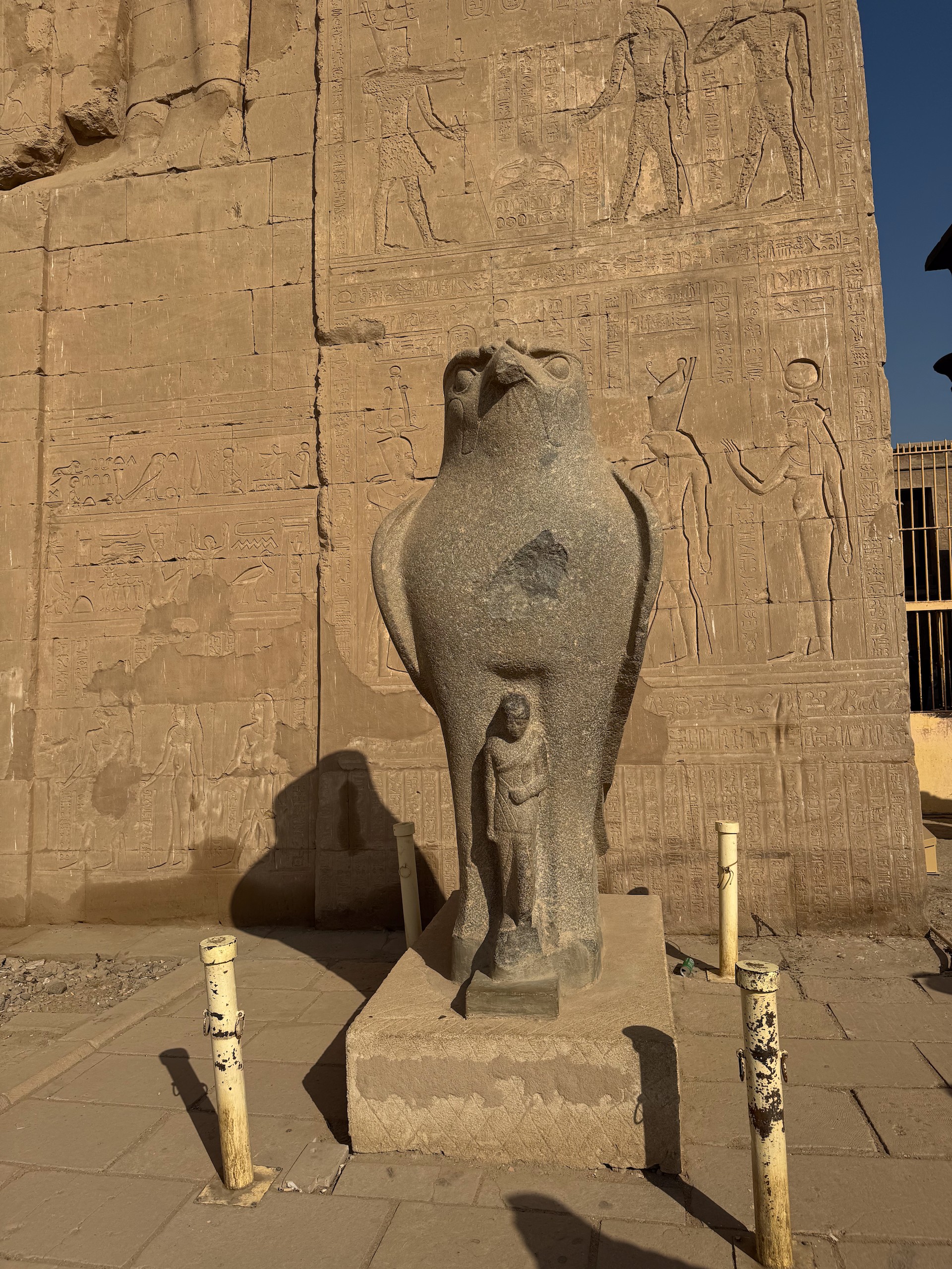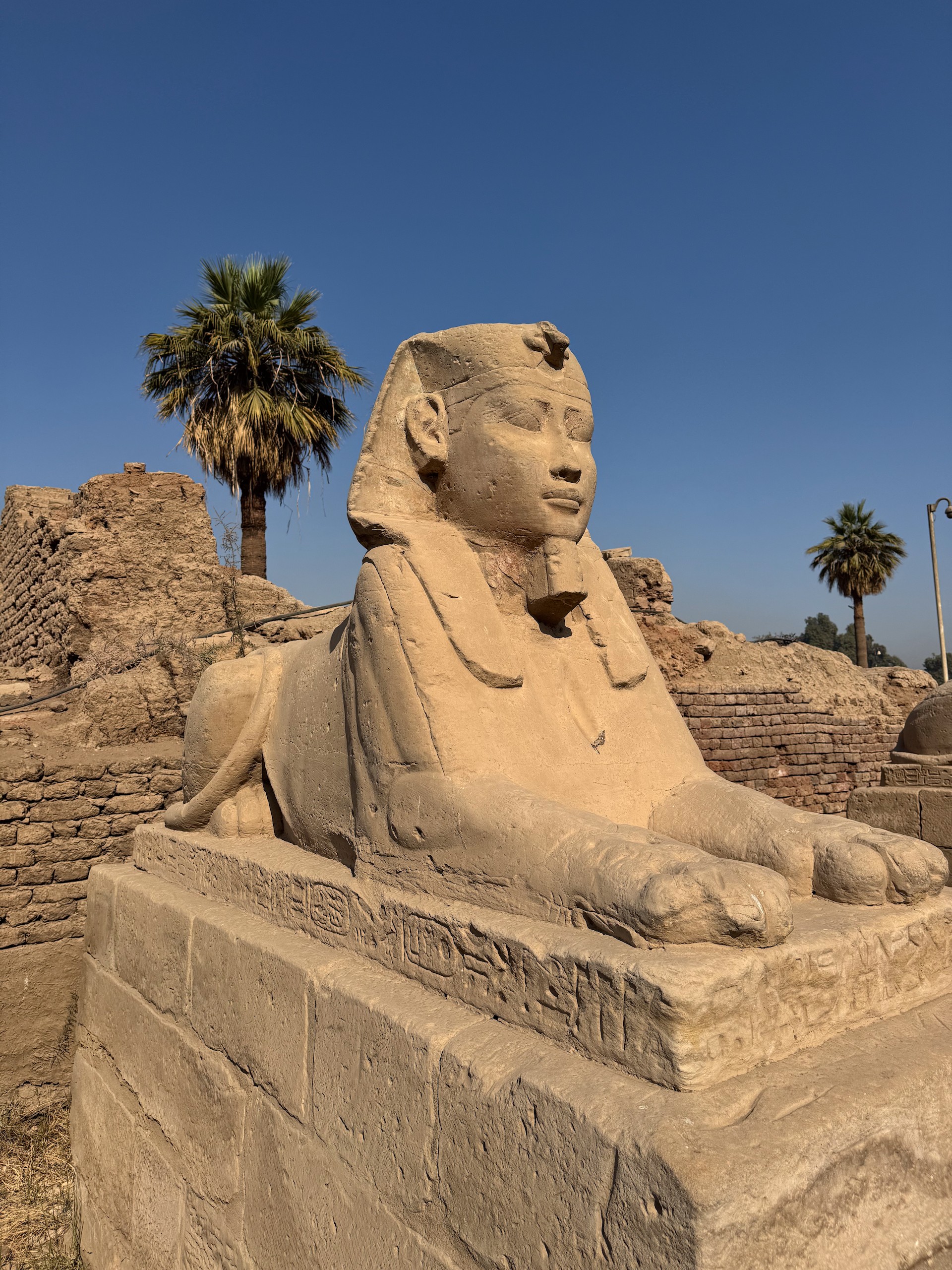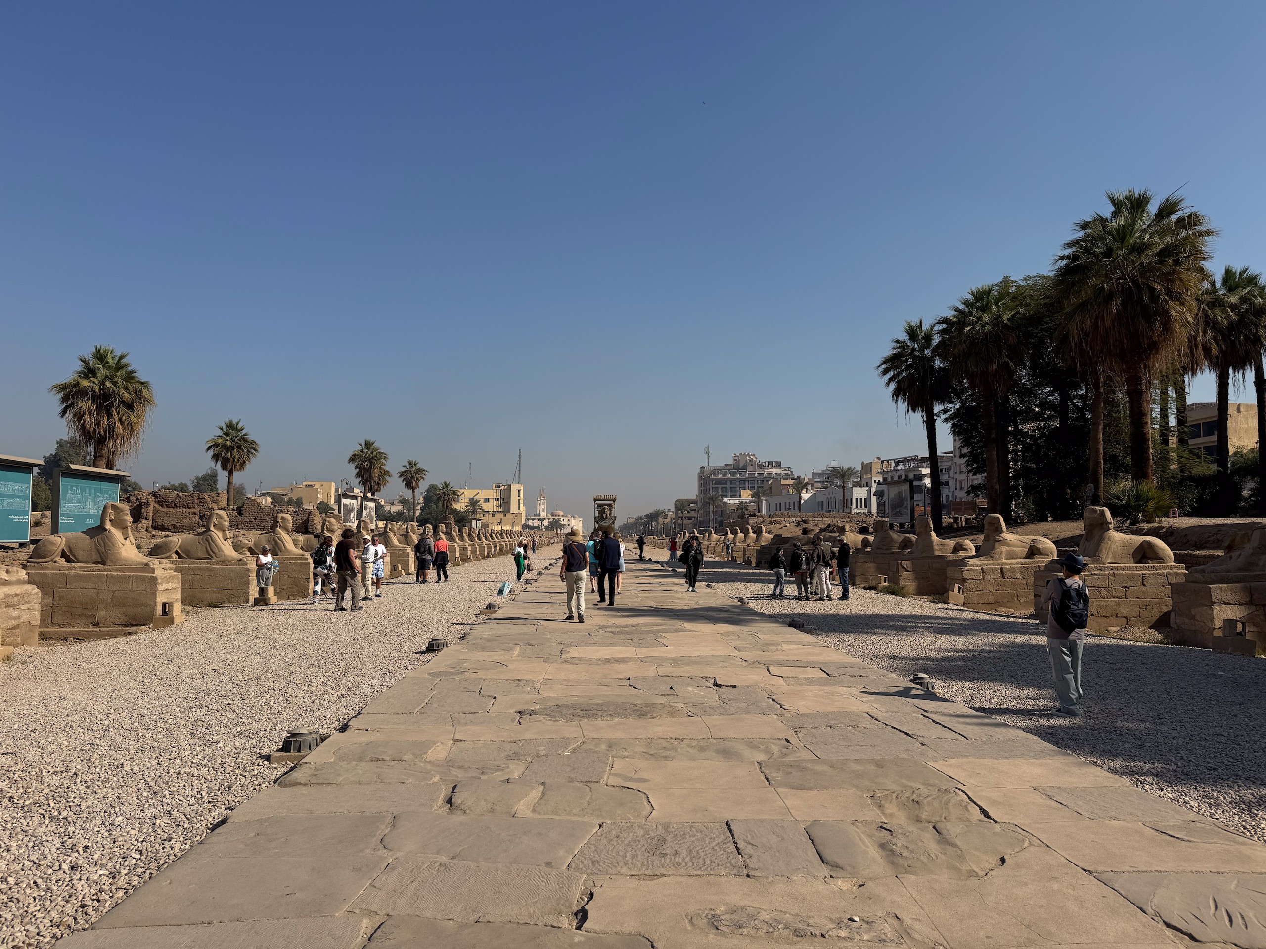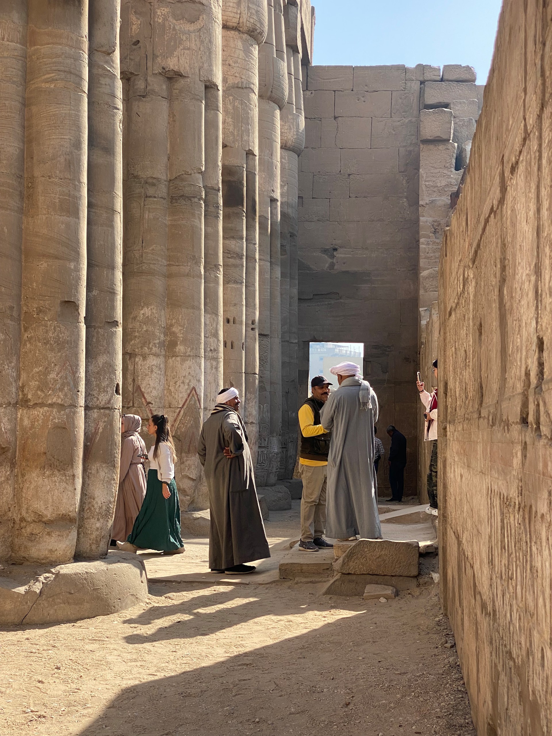 Wir erfuhren wieder viel Wissenswertes, z.B. dass die vor dem Tempel liegende Sphinxallee ursprünglich ganze vier Kilometer lang war. Auf dem Tempel steht auch eine Moschee, die zu der Zeit gebaut wurde, als die Tempelanlage noch verschüttet war. Hier gibt es jetzt also Zeichen der alten Ägypter, an der Sphinxallee eine koptische Kirche und im Tempel Zeichen der alten Griechen. Alles in Frieden vereint. Darauf legt unser Guide sehr viel Wert, die Moslems in Ägypten sind gläubig, aber friedlich.