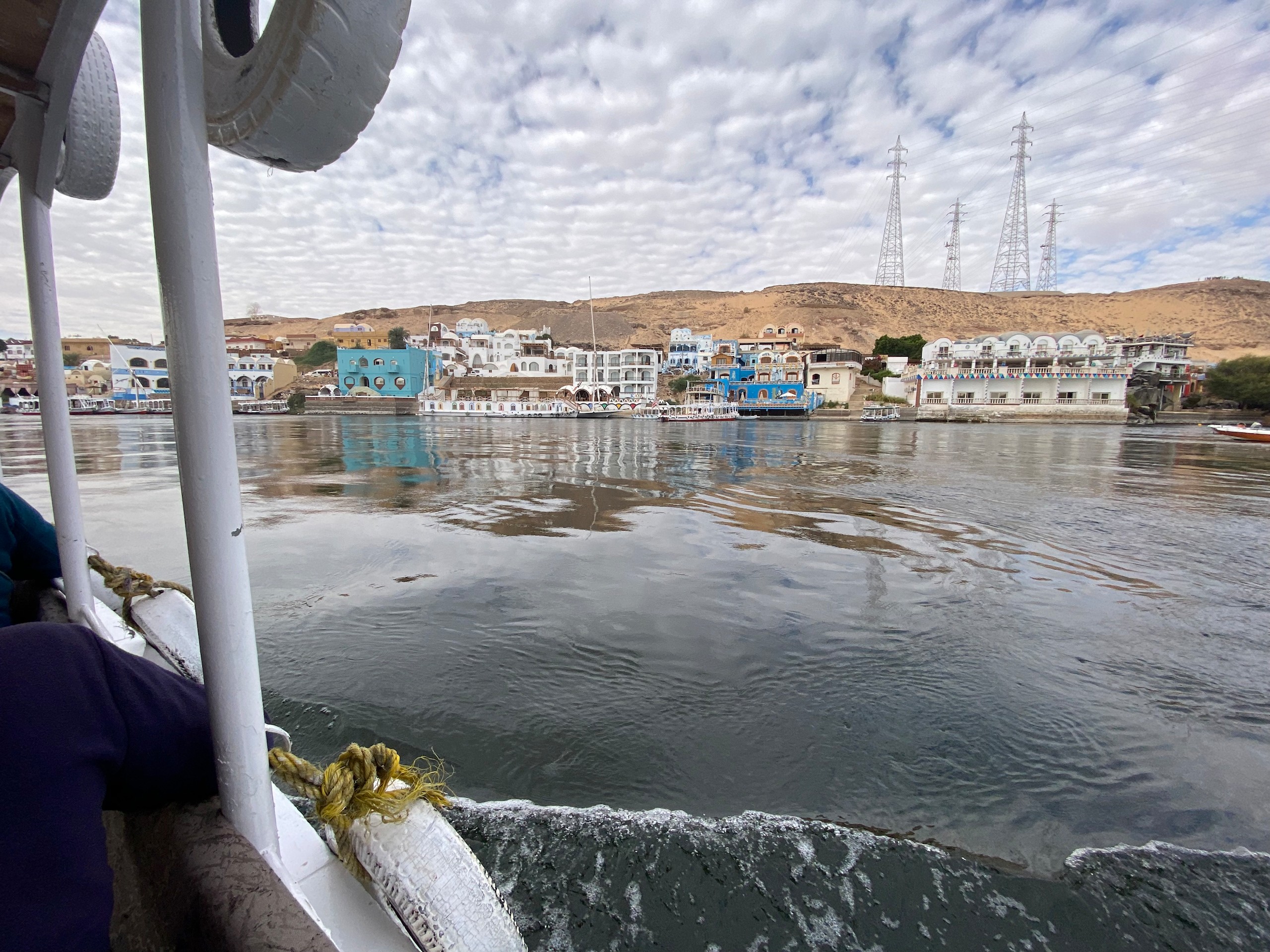 Zu guter Letzt setzt unser Boot auf einem dicken Granitfels im Fluss auf, aber auch hier ist Gott sei Dank nichts passiert. Nach einer knappen Stunde kommen wir in West Aswan an. Das Westufer des Nils ist hier nubisch geprägt, was man sehr gut an der veränderten Bauweise erkennt. Hier gibt es Kuppeln und die Gebäude sind teilweise sehr schön bunt verziert. Die Nubier waren ein stolzes altes ägyptisches Volk mit Wurzeln im heutigen Sudan. Sie waren die dunkleren Ägypter.