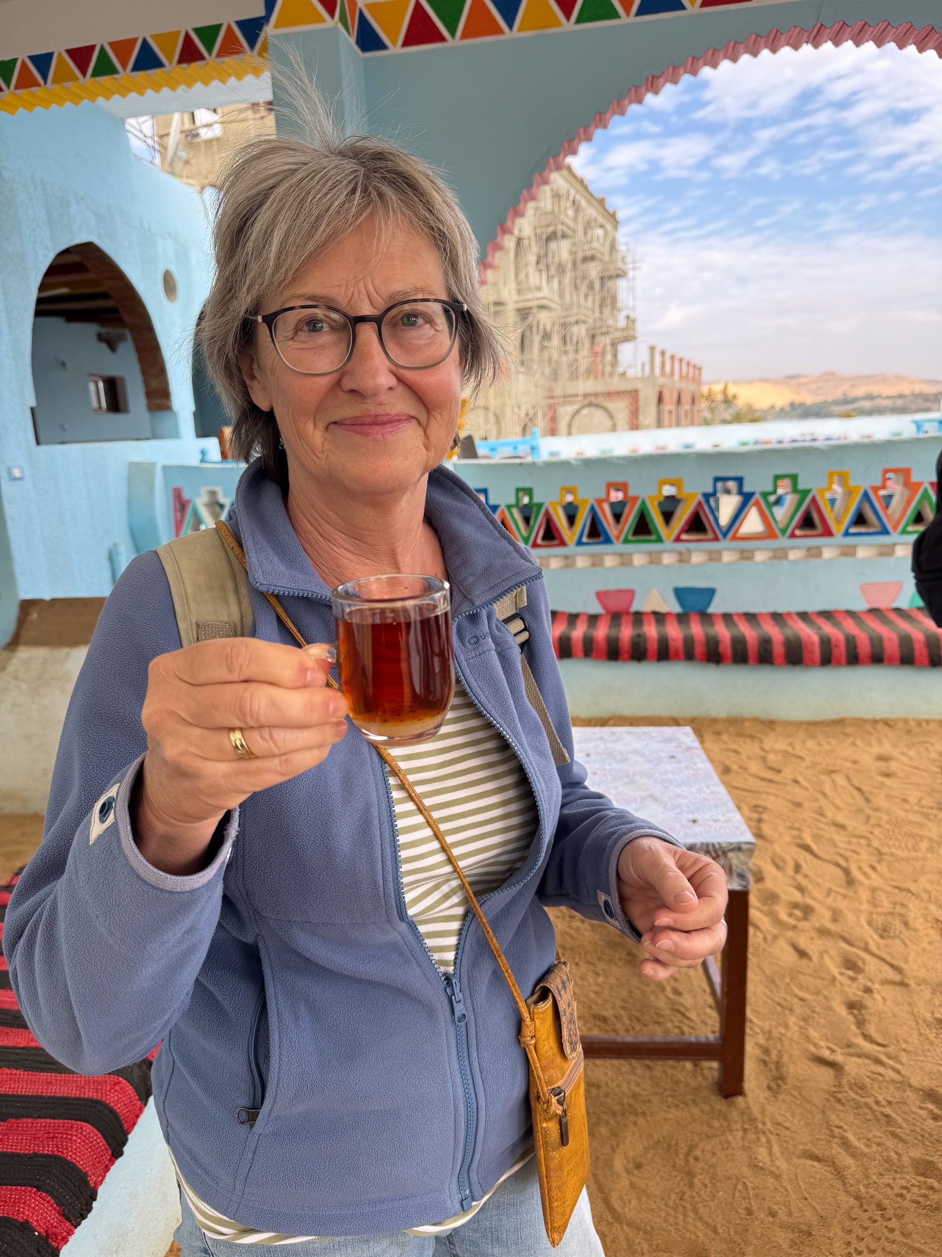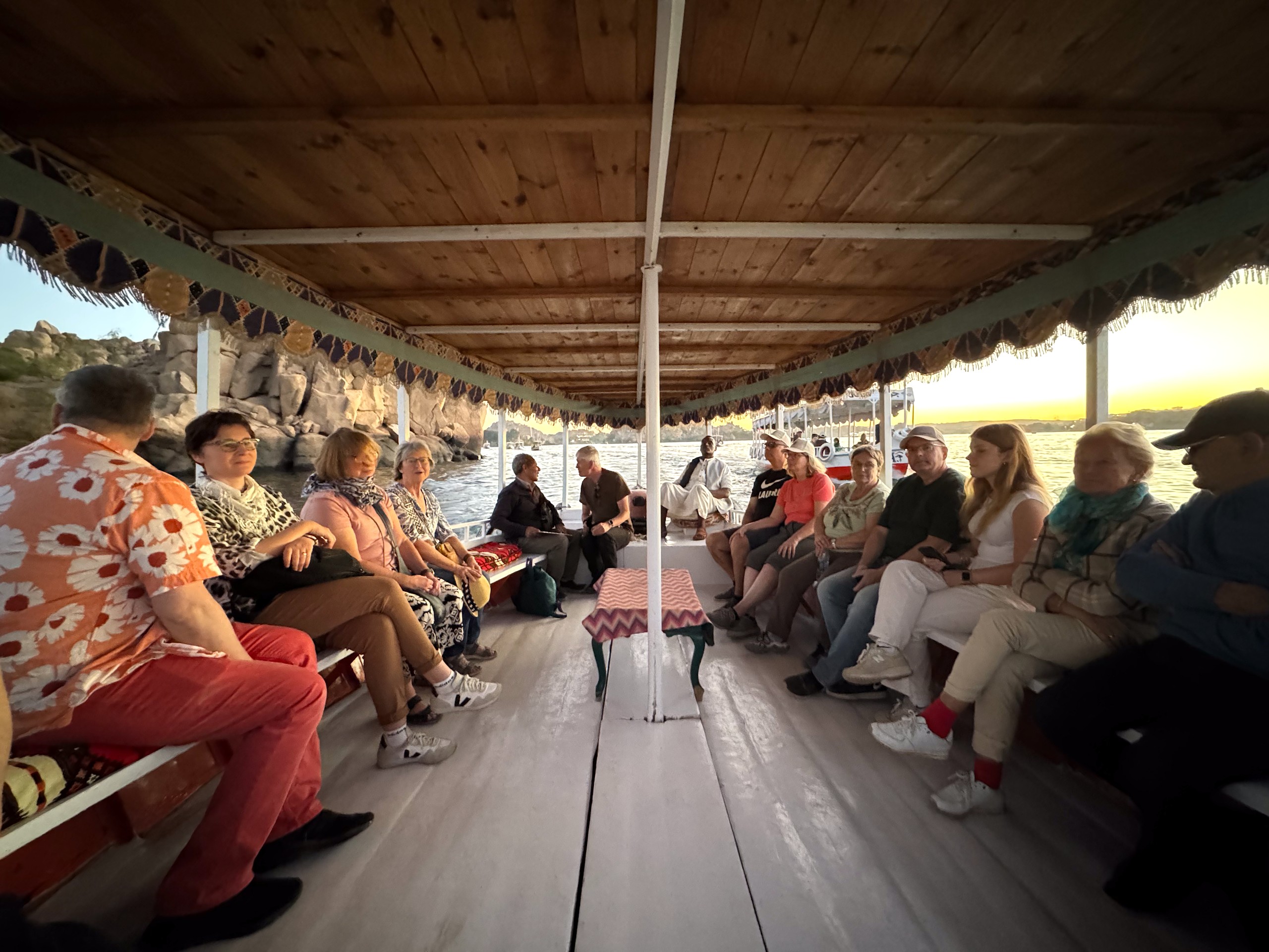 Wir sind rechtzeitig zum Mittagessen zurück und können jetzt noch etwas auf dem Sonnendeck relaxen. Später will Mahmud mit uns noch einen Spaziergang machen und den Basar in Assuan besuchen, um uns die dort angebotenen Gewürze zu zeigen. Bisher war es wieder sehr abwechslungsreich und wir haben wieder viele Einblicke in den Alltag der Menschen hier bekommen.