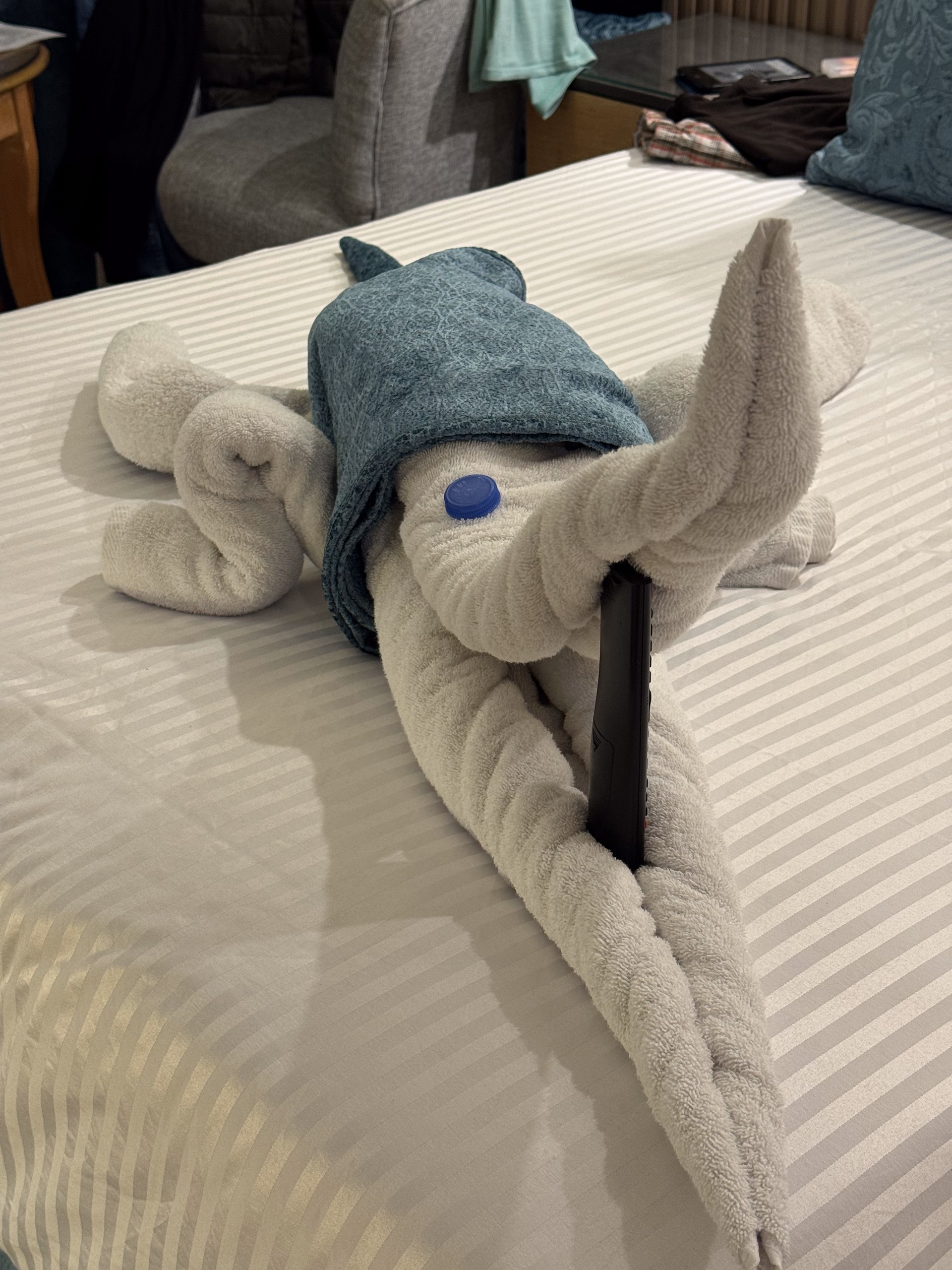 Besonders gut gefällt uns hier das Personal. Alle sind durchweg freundlich, hilfsbereit und aufmerksam, aber nicht aufdringlich. Selbst jeder Gärtner grüßt freundlich und findet nette Worte. Das war auf dem Schiff genauso, mal davon abgesehen, dass es keine Gärtner gab. Diese natürlich wirkende Freundlichkeit hatte ich hier irgendwie gar nicht erwartet, warum auch immer.