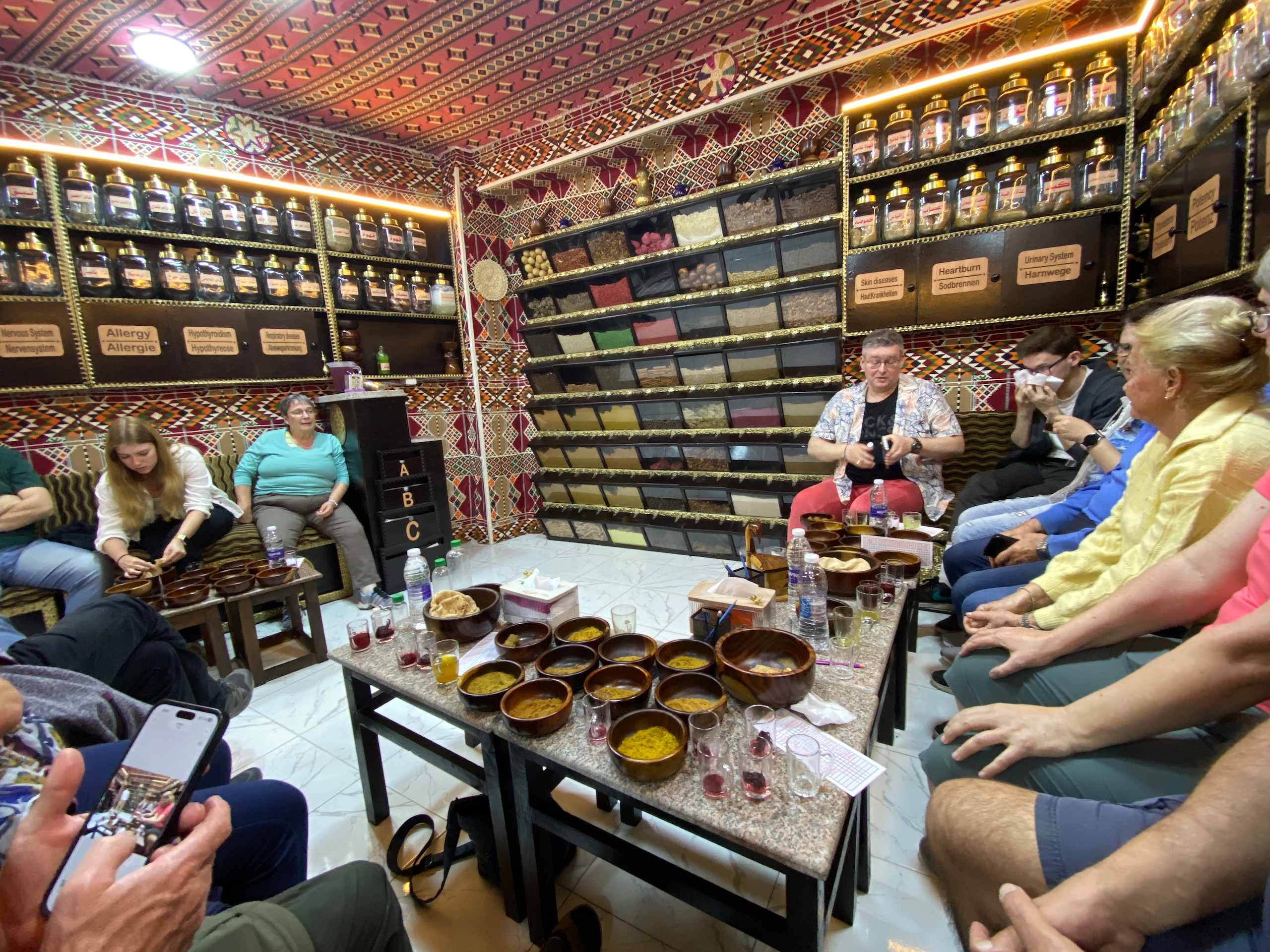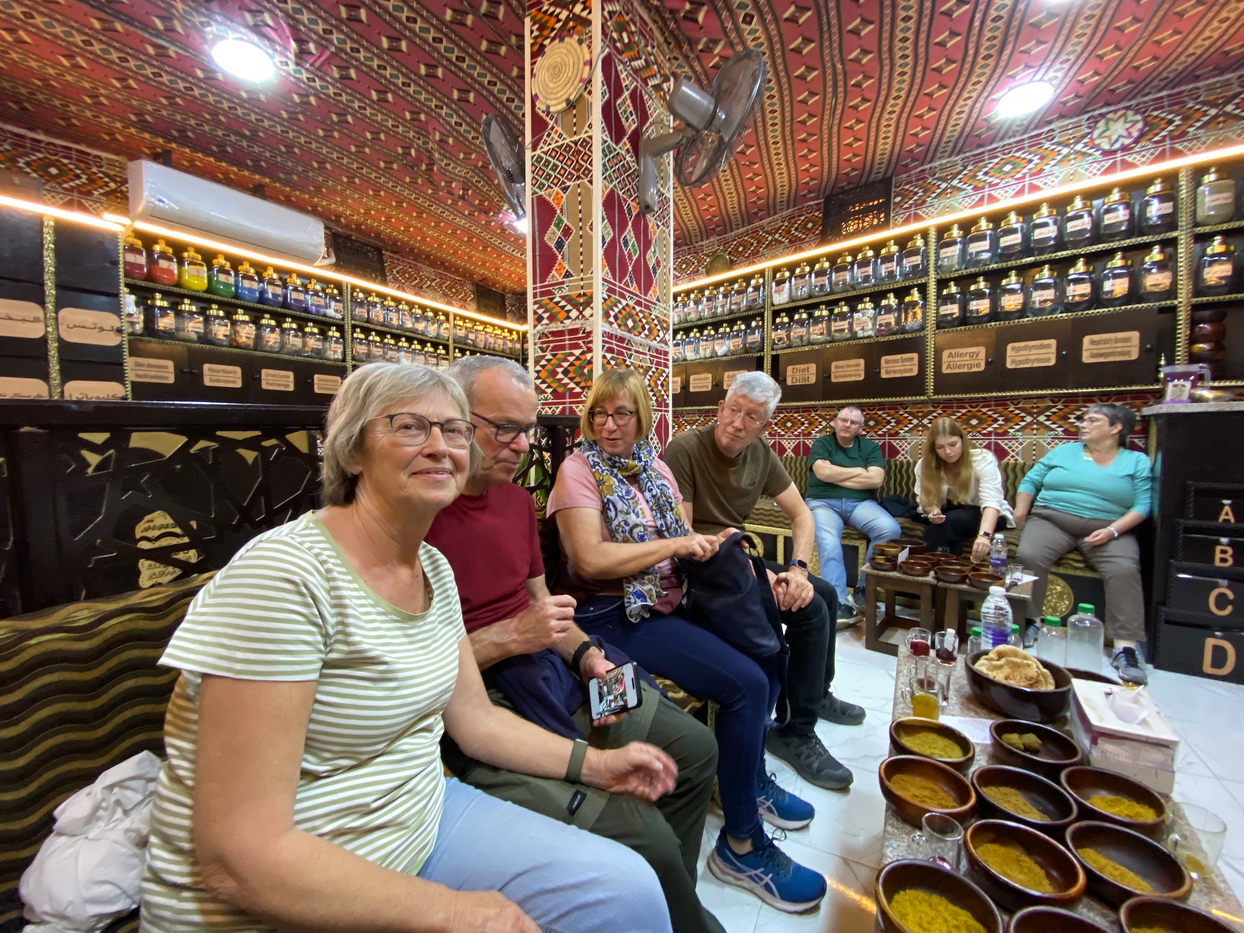 Wir kaufen zum Schluss tatsächlich alle etwas, allerdings sind die Mengen, die dann in den Tüten abgepackt werden, ziemlich üppig und dementsprechend teuer. Wir haben zwei Tüten Curry, eine weitere Gewürzmisching, sowie eine Tutanchamun Lotion gekauft und sind preislich noch halbwegs gut weggekommen, die meisten lagen jeweils bei weit über hundert Euro für die Gewürze und Essenzen. Trotzdem haben wir alle einen Riesenspaß, besonders weil einige auch Minzsteine gekauft haben, die abgepackt wie Crystal Meth oder ähnliches aussehen. Viel Spaß dann beim Zoll.