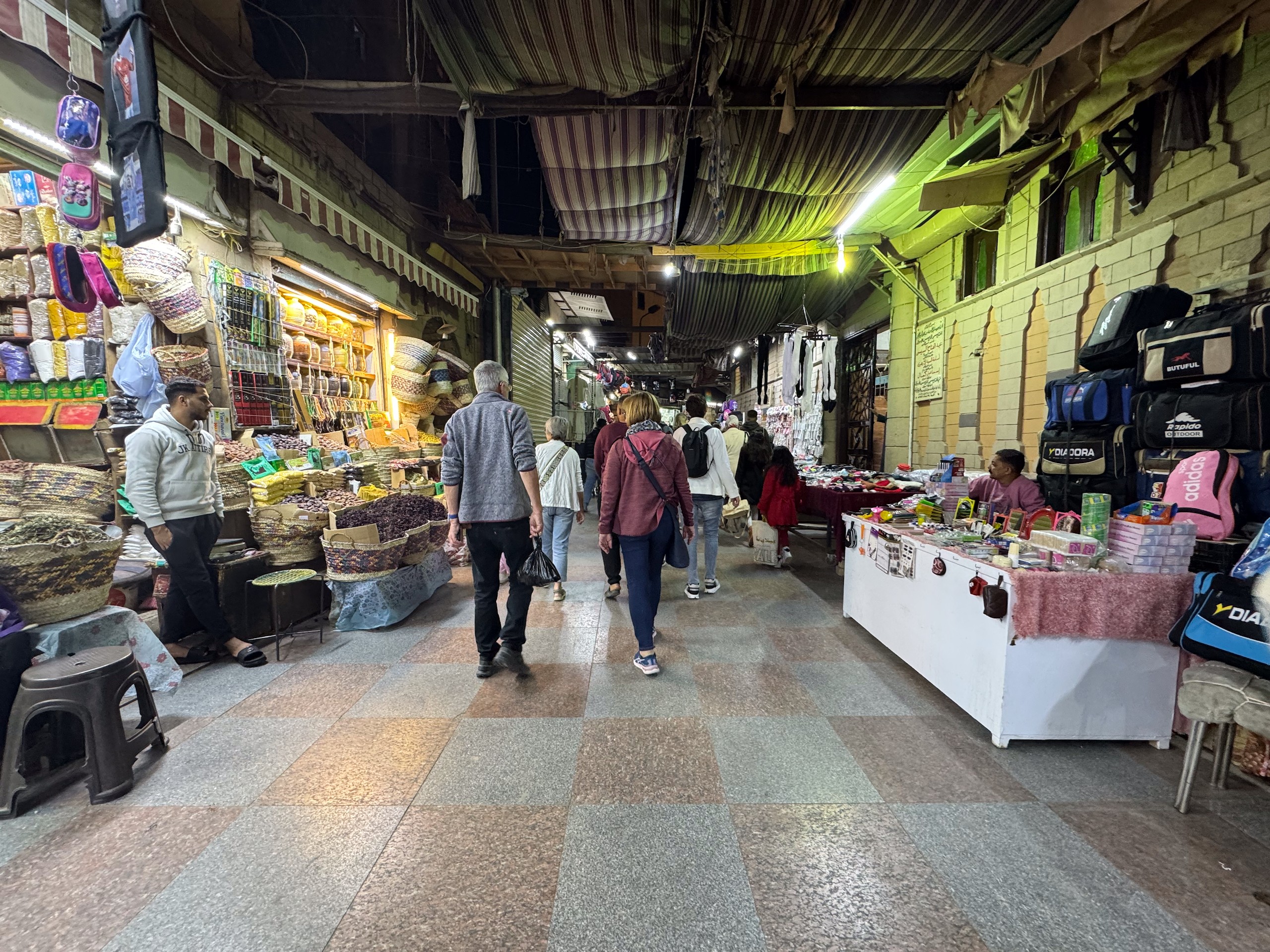 Unser Tour durch den Bazar startet um 17.00 Uhr. Nachdem wir halsbrecherisch die stark befahrene Straße in Assuan überquert haben, erreichen wir einen schönen Gewürzladen. Wir werden wieder herzlich willkommen geheißen und bekommen Fladenbrot und Hibiskustee serviert und dann beginnt die übliche Verkaufsveranstaltung. Allerdings ist der Ladenbesitzer sehr nett und kurzweilig und wir haben in der Gruppe zusammen sehr viel Spaß.
