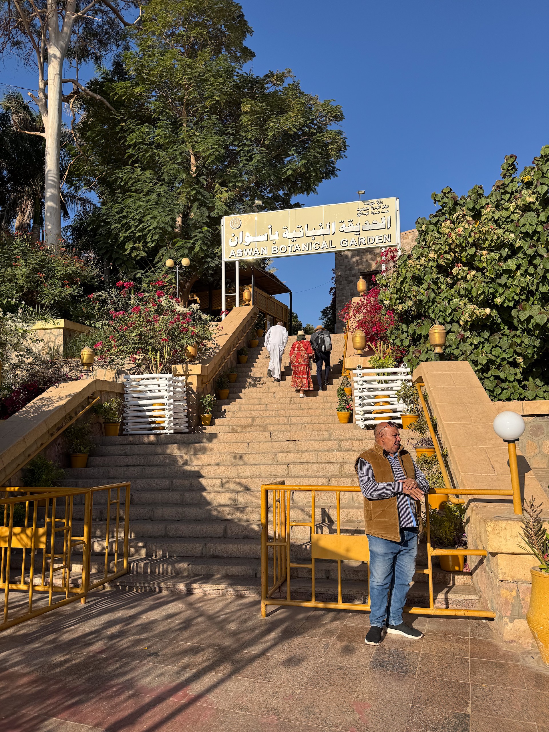 Heute Morgen starten wir kurz nach acht mit einem kleinen Boot auf die Kitchener-Insel zum Botanischen Garten von Assuan und spazieren hier auf eigene Faust ca. 45 Minuten herum. Wirklich überzeugen kann uns der Garten nicht, viele Bäume und dazwischen ein paar Wege, aber auch wieder Händler, die ich dort nicht wirklich gebraucht hätte. Mittlerweile ist unser Mahmud etwas unstrukturiert und die Touren werden kreuz und quer durchgeführt. So kommen wir nach knapp zwei Stunden wieder am Schiff an, um gleich um 14.00 Uhr den zweiten Teil des Ausflugs anzutreten. So verbummeln wir jetzt ein bisschen Zeit auf dem Schiff, was auch ganz gut tut.