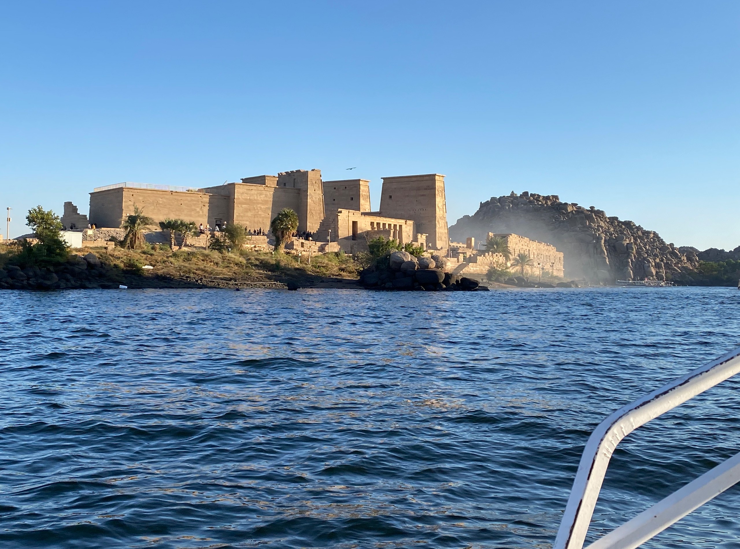 Von hier aus geht es weiter zu einer Bootsanlegestelle, von der aus es wieder mit einem der vielen Bootstaxen zur Insel Agilkia geht. Im Boot nutzen zwei kleine Ägypter die kurze Fahrt für den Verkauf von Armbändern und Broschüren. Viele Kinder gehen trotz Schulpflicht nicht zur Schule oder gehen in Klassen mit bis zu 60 Schülern. So wie wir aus den Schilderungen unserer diversen Reiseleiter herausgehört haben, hat sich nach dem arabischen Frühling sogar vieles zum Nachteil für die ägyptische Bevölkerung entwickelt, so z.B. neben dem Schulsystem auch das Gesundheitssystem.