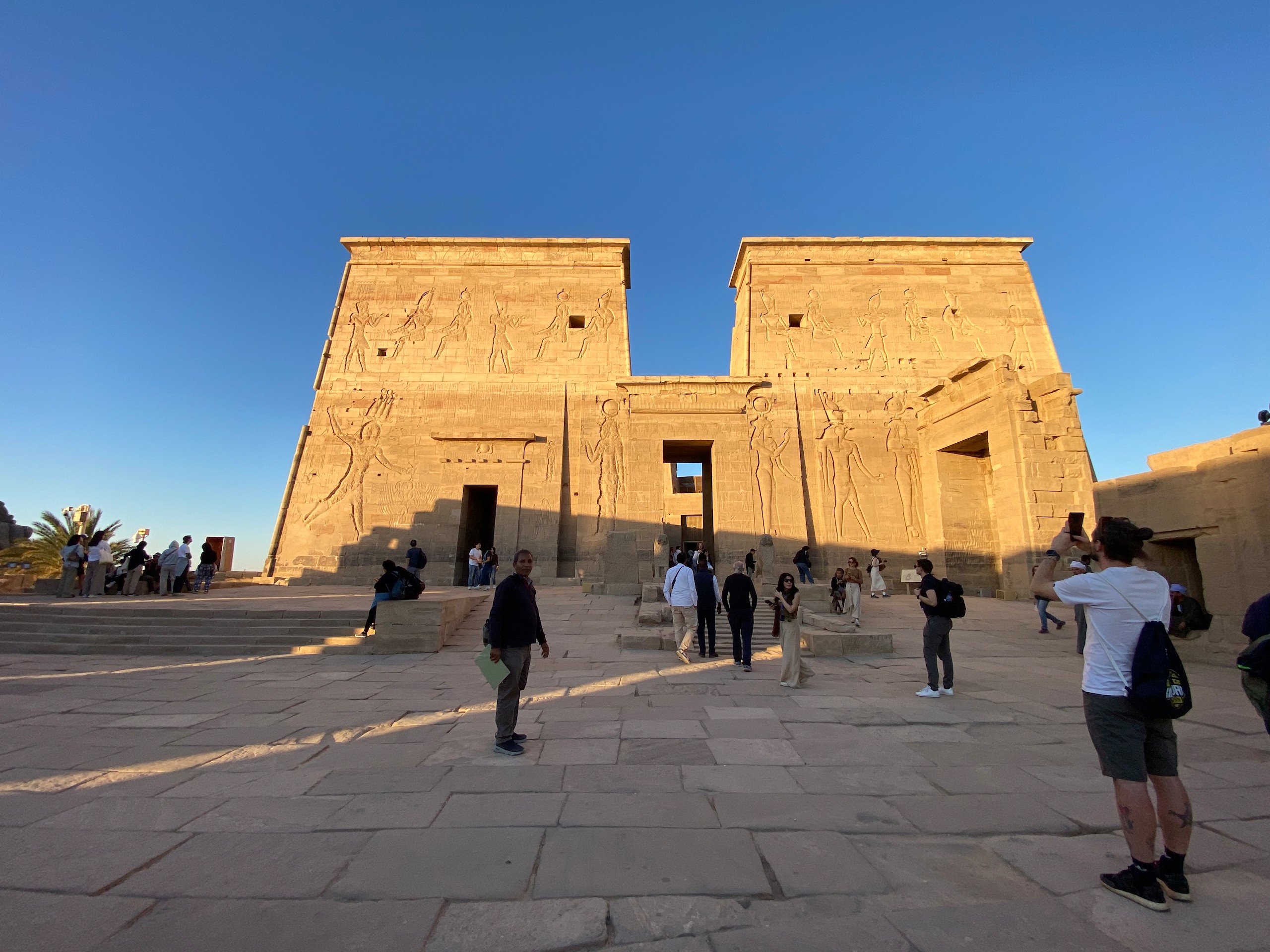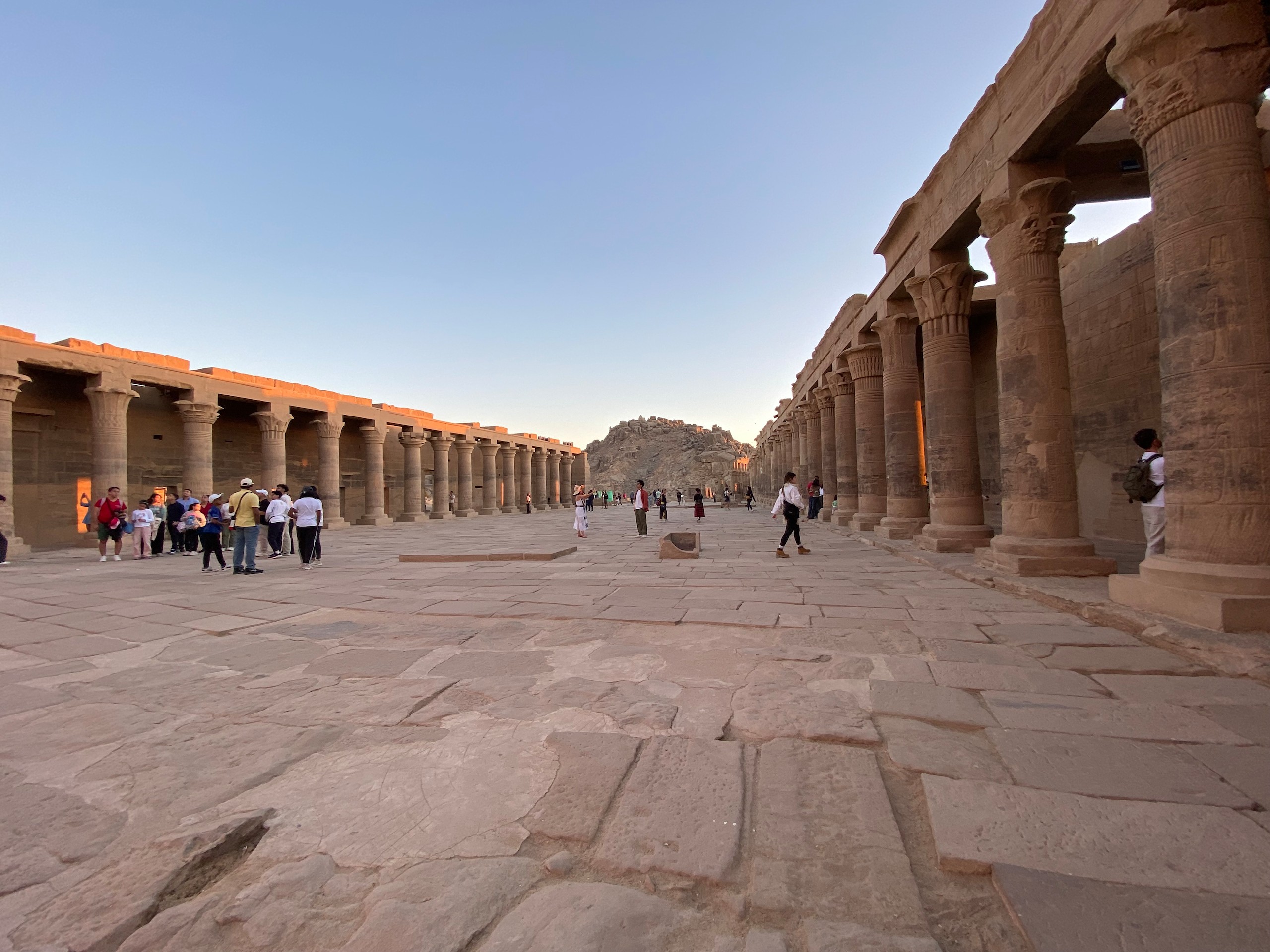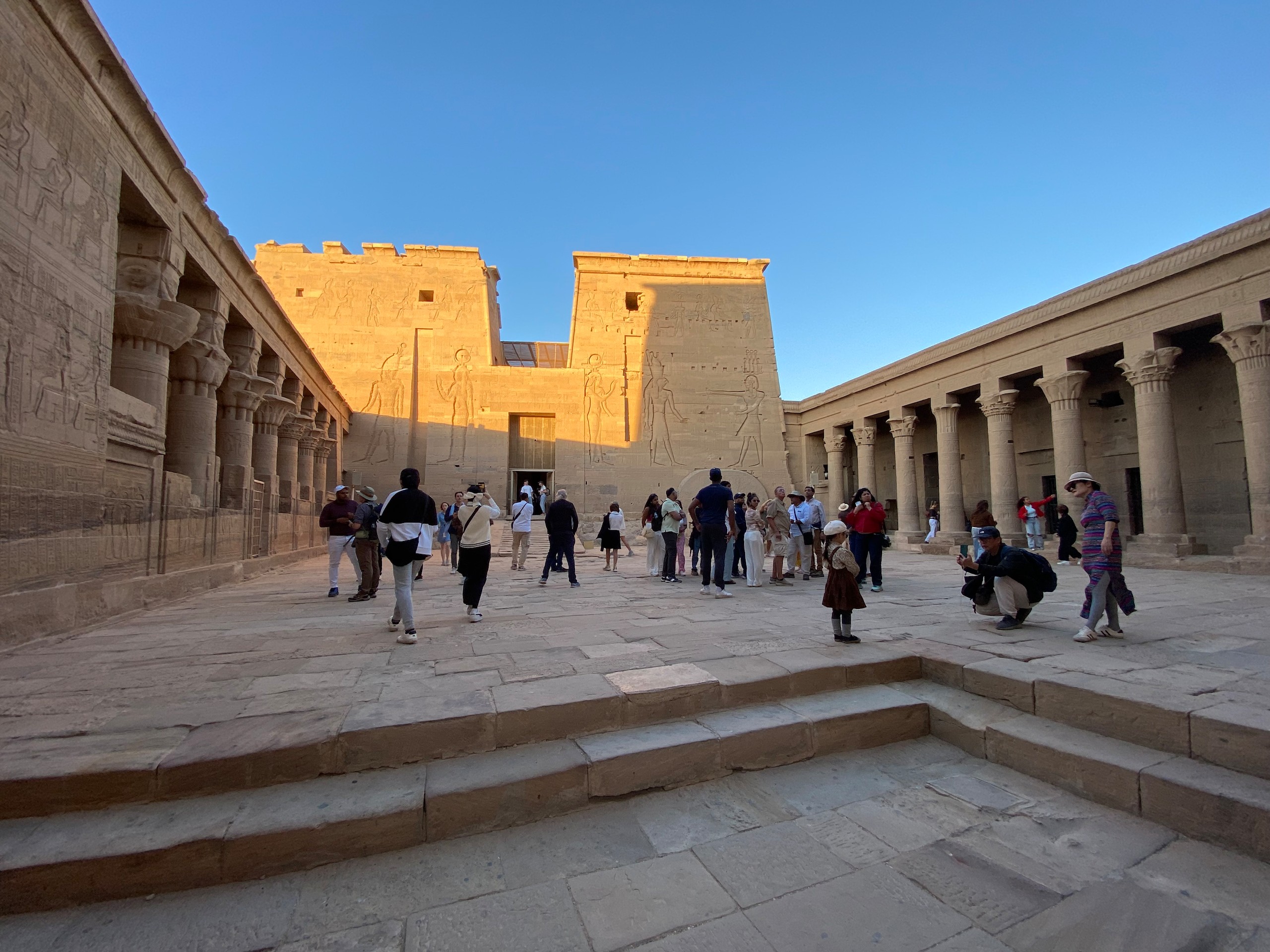 Auf der Insel angekommen herrscht wieder viel Betrieb. Hier steht der Tempel Philea für die Göttin Isis. Ich muss gestehen, dass ich den Ausführungen unseres Guides nicht mehr so ganz gefolgt bin, deshalb hab ich kaum etwas über die Hintergründe des Tempels mitbekommen. Interessant ist aber, dass diese Tempelanlage ursprünglich auf der Nebeninsel Philea gestanden hat und durch den Stausee zwischen dem alten und dem neuen Staudamm gefährdet war, weil sie zeitweise unter Wasser stand.