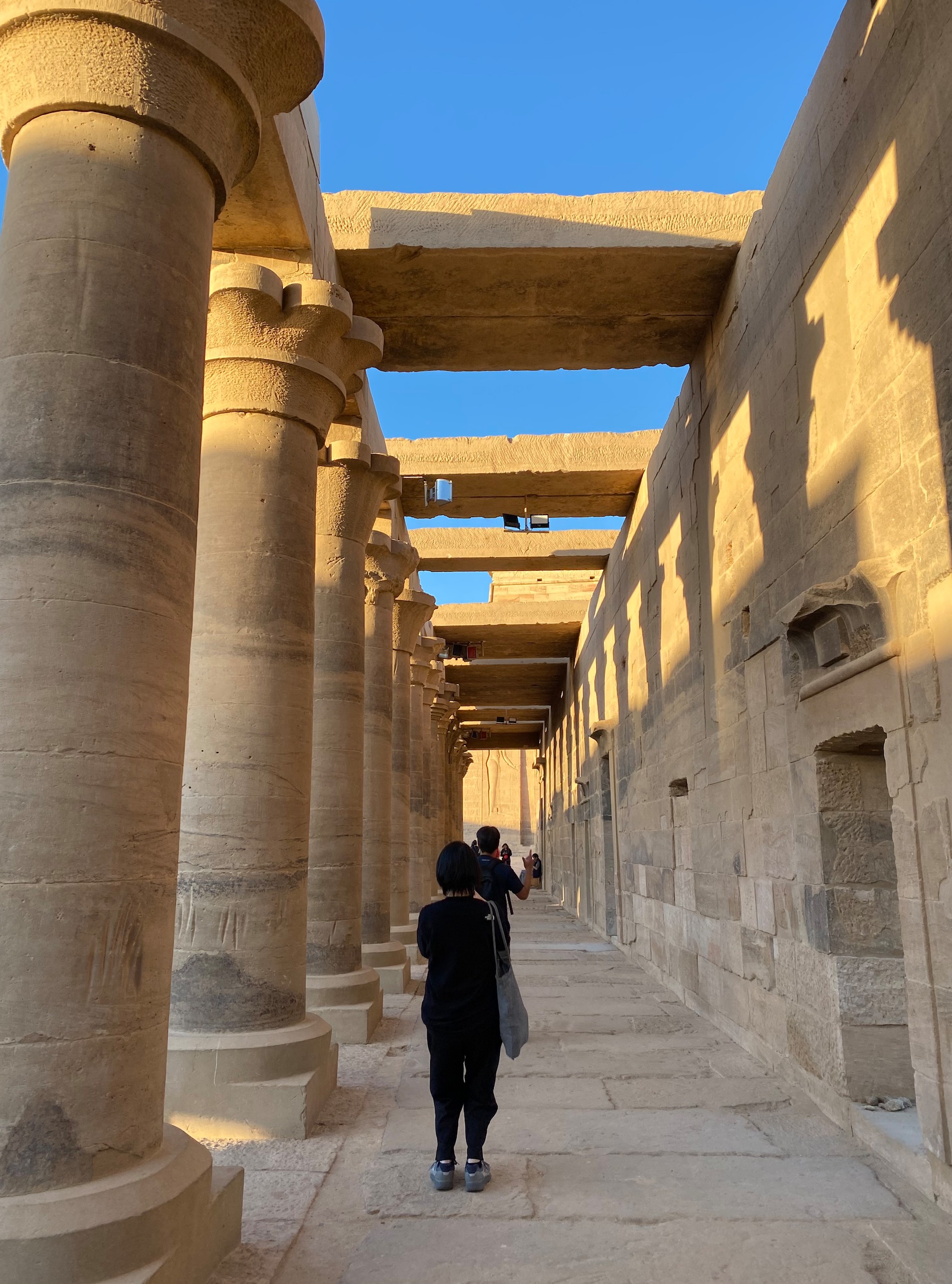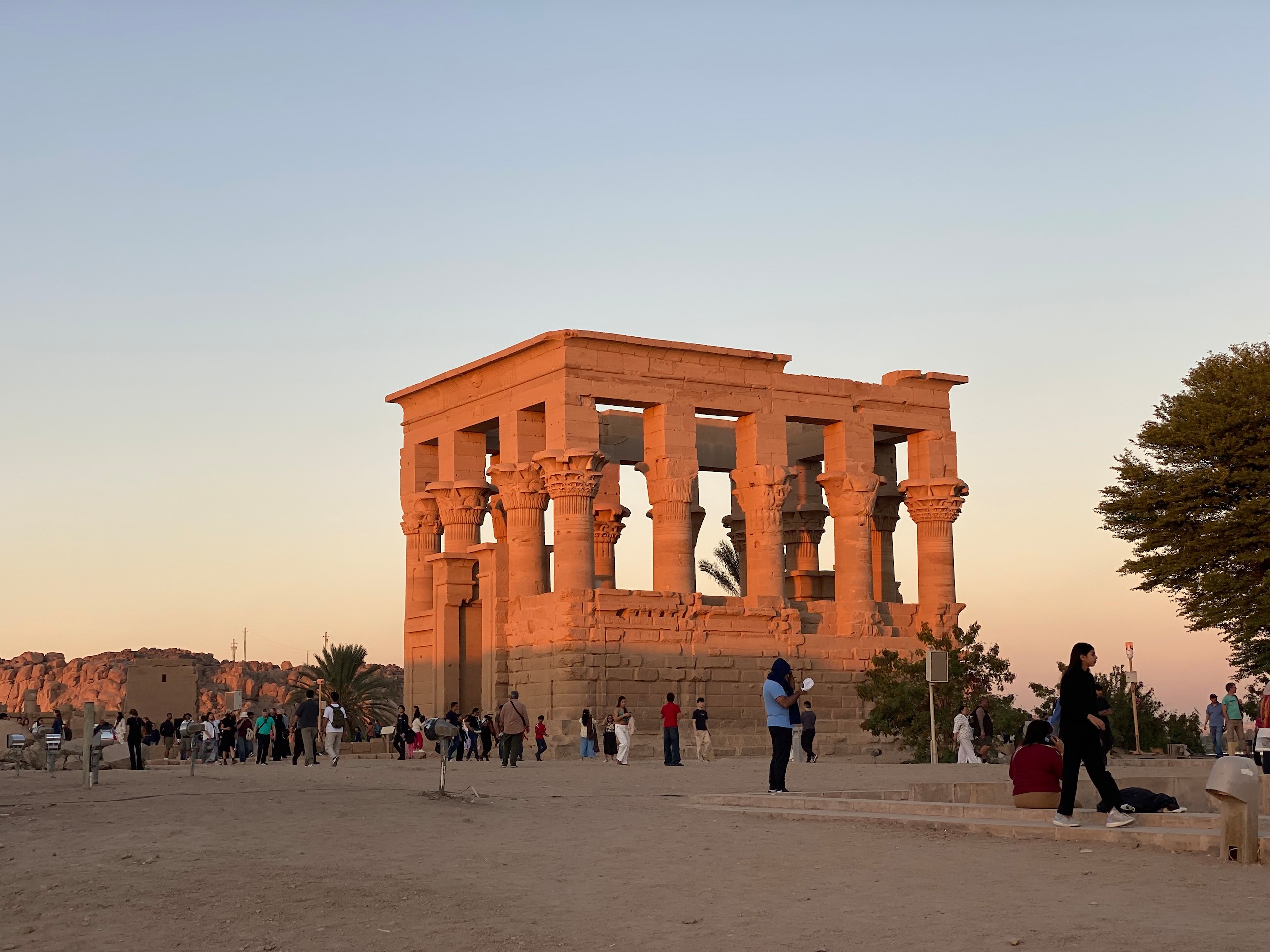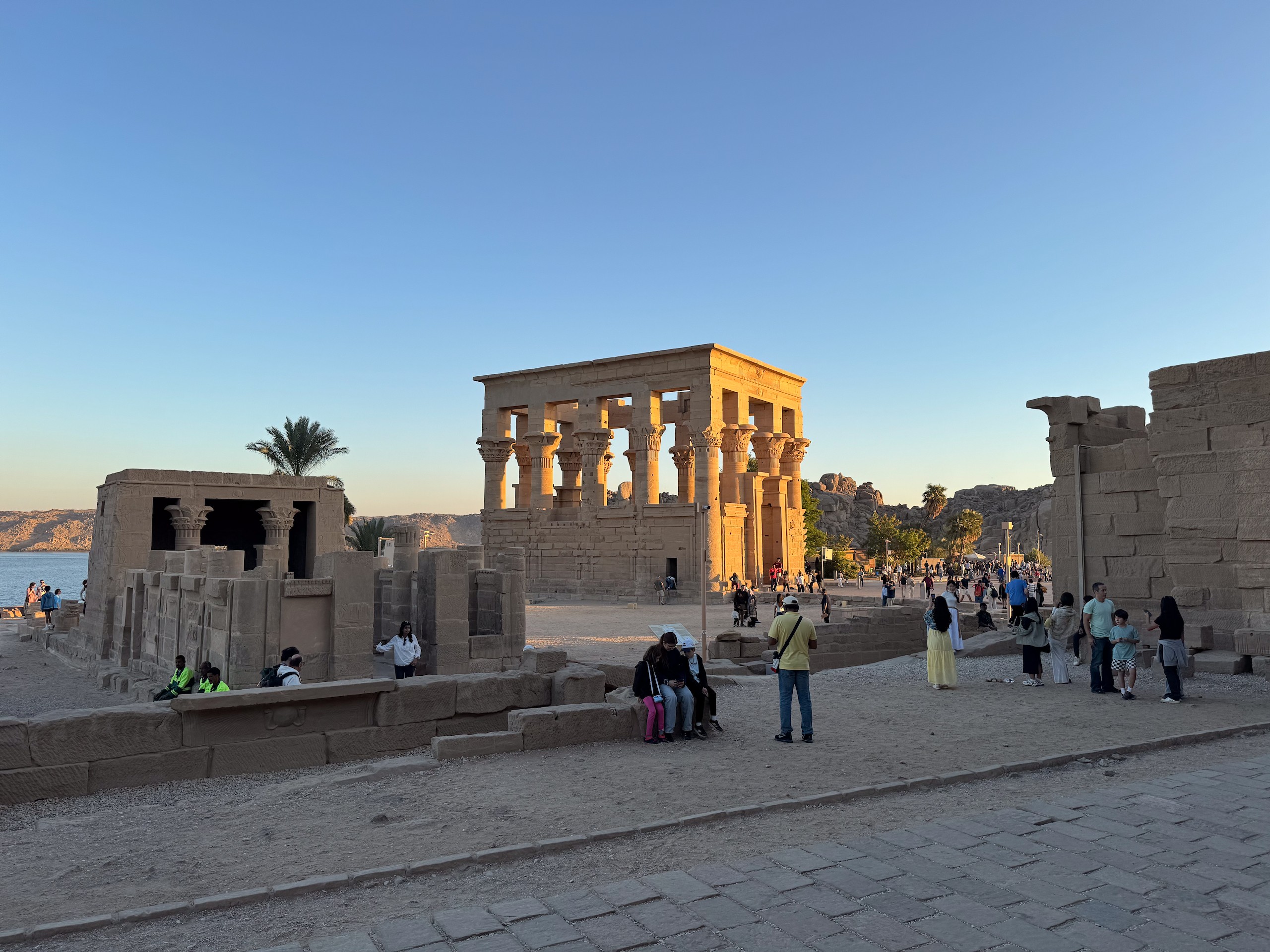 Auf der Insel angekommen herrscht wieder viel Betrieb. Hier steht der Tempel Philea für die Göttin Isis. Ich muss gestehen, dass ich den Ausführungen unseres Guides nicht mehr so ganz gefolgt bin, deshalb hab ich kaum etwas über die Hintergründe des Tempels mitbekommen. Interessant ist aber, dass diese Tempelanlage ursprünglich auf der Nebeninsel Philea gestanden hat und durch den Stausee zwischen dem alten und dem neuen Staudamm gefährdet war, weil sie zeitweise unter Wasser stand.