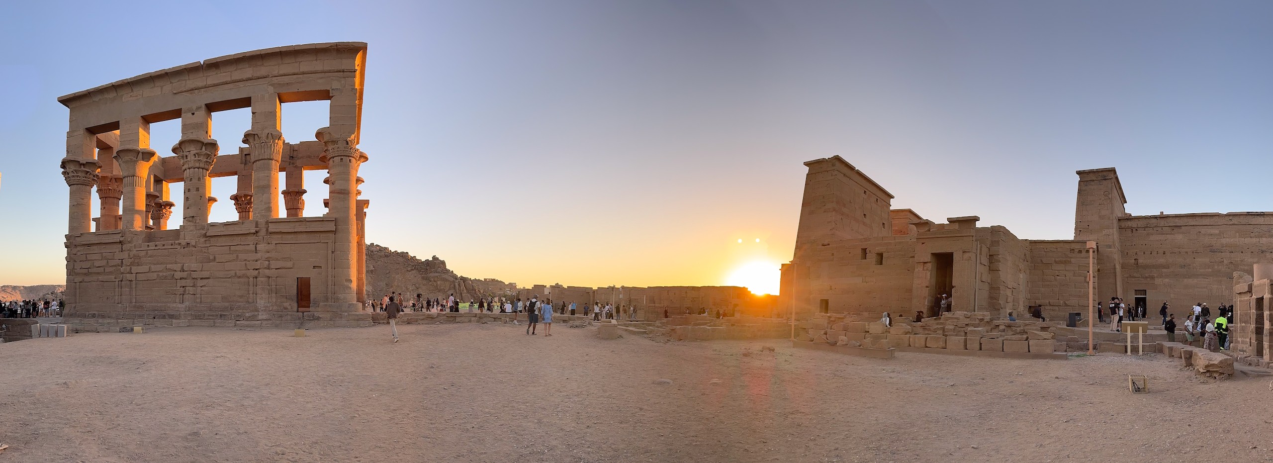 In den Jahren von 1972 bis 1980 wurde der Tempel im Auftrag der UNESCO Stein für Stein auf die daneben liegende höhere Insel versetzt. Auch Deutschland hat sich an der Finanzierung der Kosten beteiligt. Insgesamt sollen durch den Bau des Staudamms 16 bedrohte Kulturdenkmäler versetzt worden sein, das größte und bekannteste davon ist der Tempel Abu Simbel, den wir morgen besuchen werden. Jetzt laufen wir noch ein wenig durch die Tempelanlage, schiessen ein paar Fotos, bevor die Sonne jetzt gegen halb sechs untergeht und wir die Rückfahrt antreten.