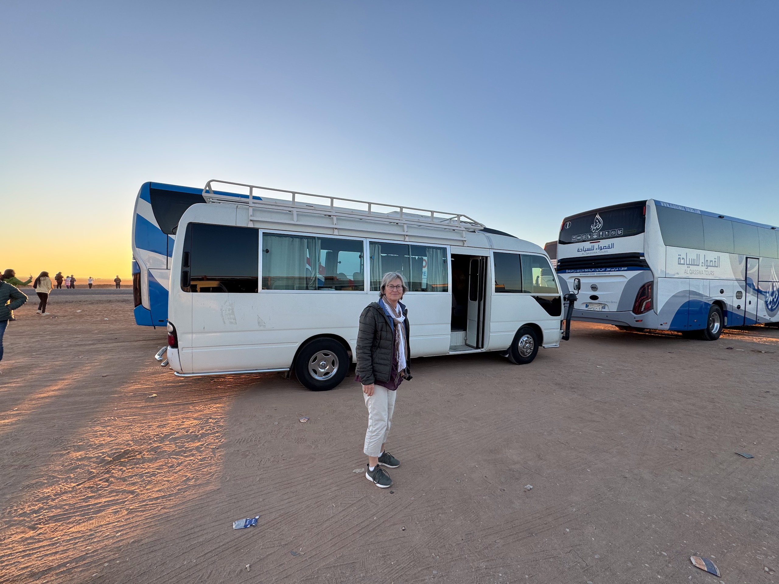 Aber da wir einmal hier sind, wollen wir uns das nicht entgehen lassen. Wir sind noch nicht weit gekommen, als wir prompt im Stau stehen. Keine fünf Uhr morgens und bereits Massen an Reisebussen unterwegs. Später erklärt mir Mahmud, dass er am Vorabend alle Reisepassdaten weitergegeben hat, denn jeder Besucher wird aus Sicherheitsgründen registriert.