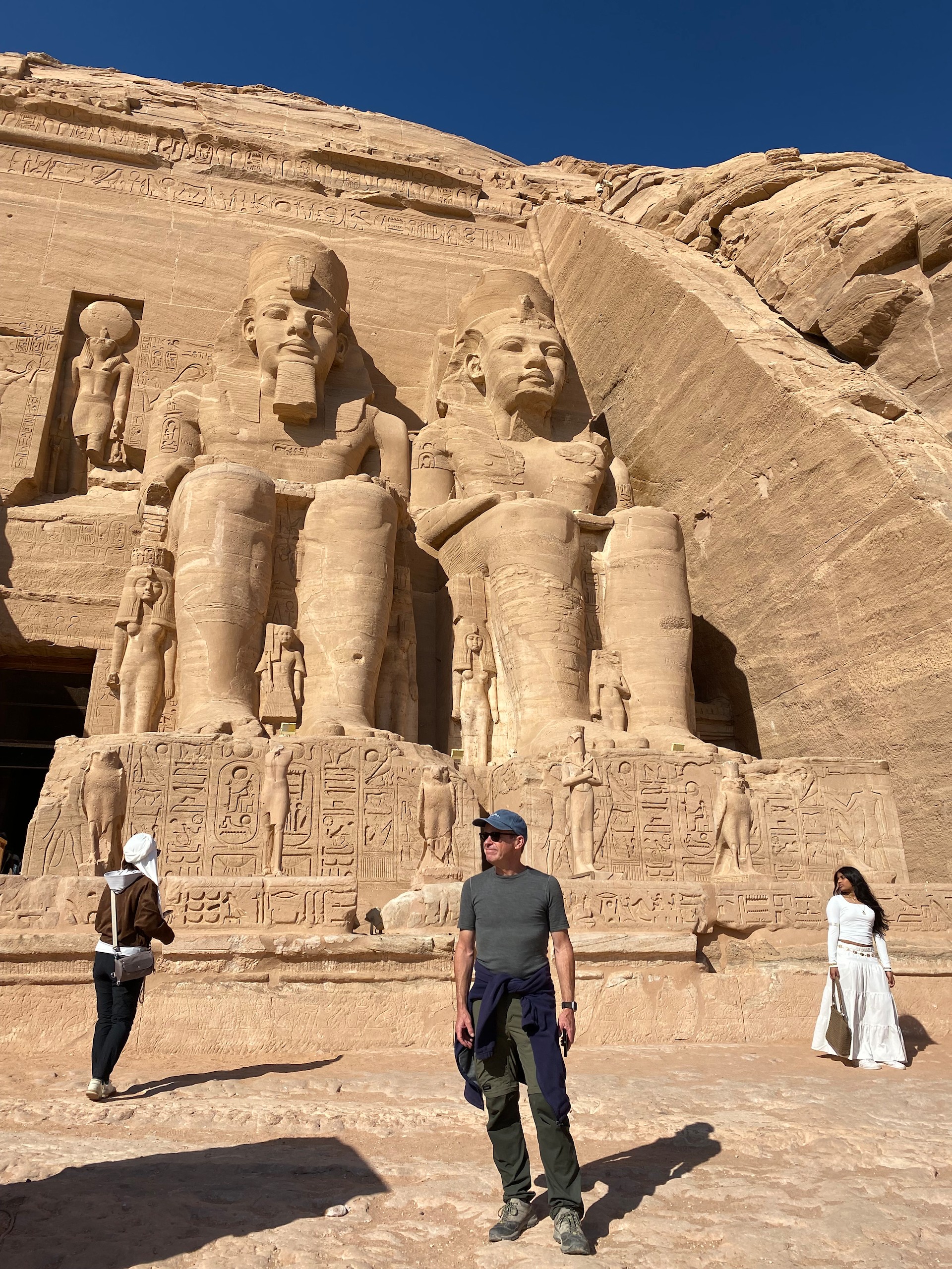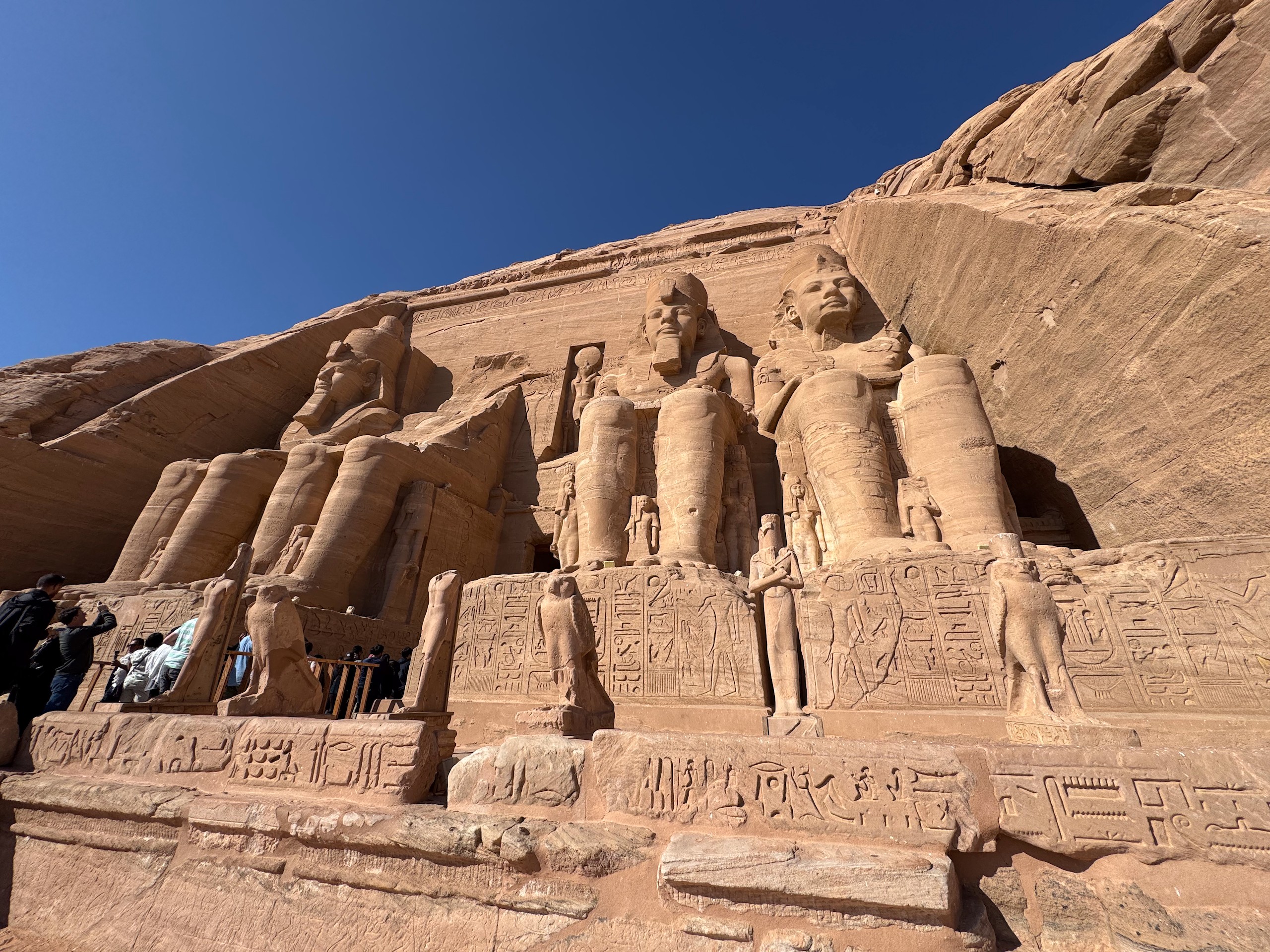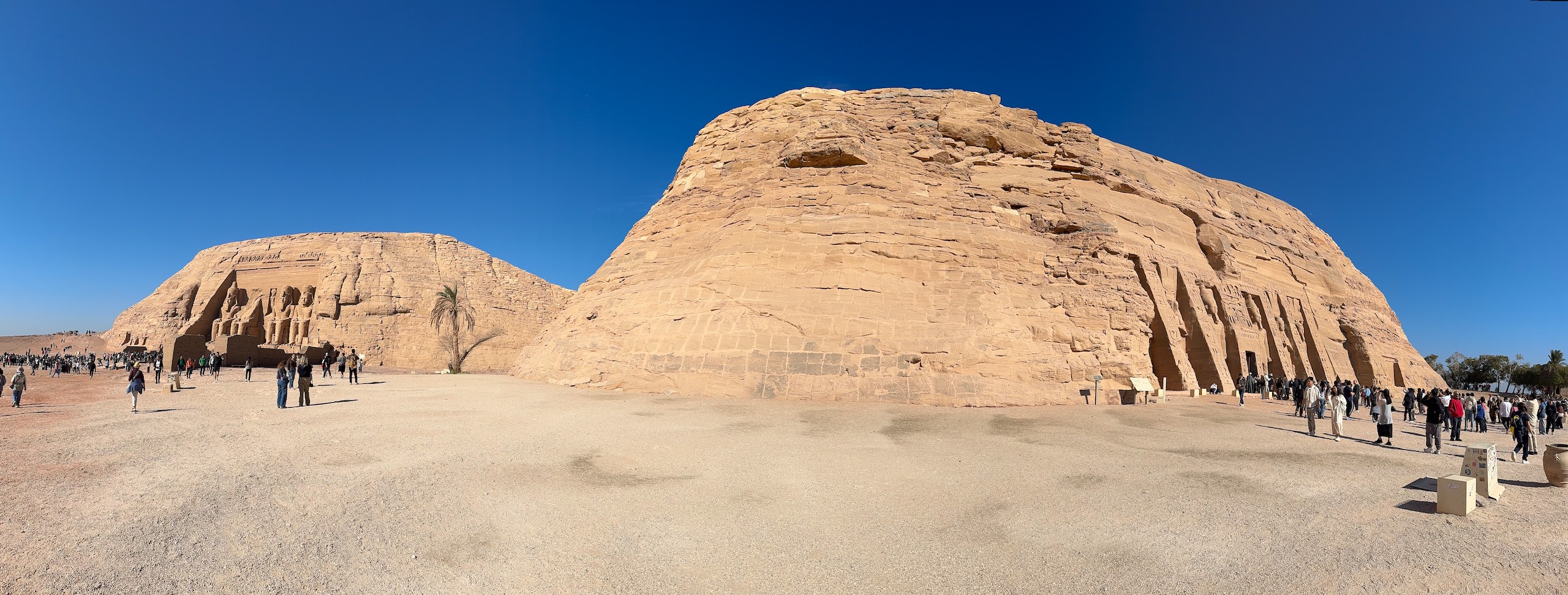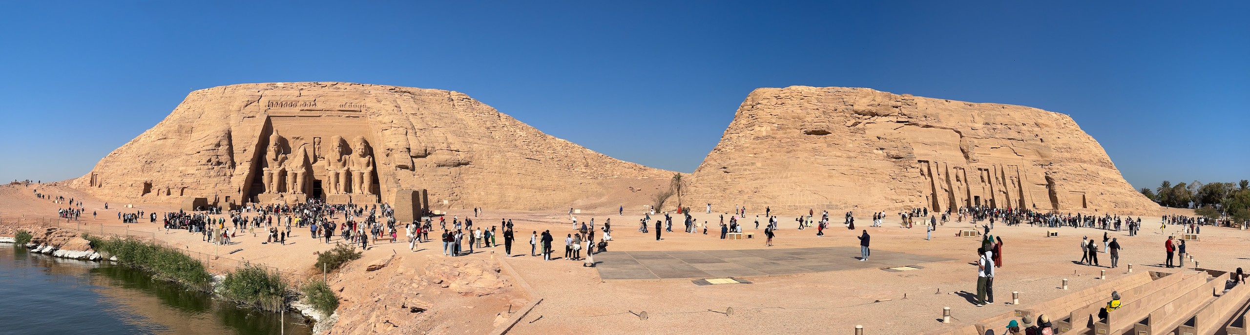 Dann geht es schnell weiter, wir erreichen den Parkplatz als Zwischenstopp aber leider nicht wie geplant zum Sonnenaufgang. Knapp verpasst, trotzdem machen alle die obligatorischen Fotos in der Wüste und dann geht es flott weiter. Als wir um zirka 8.30 Uhr Abu Simbel erreichen, ist schon jede Menge los. Erstaunlich, wie viele Menschen sich dafür so zeitig aus dem Bett gequält haben.