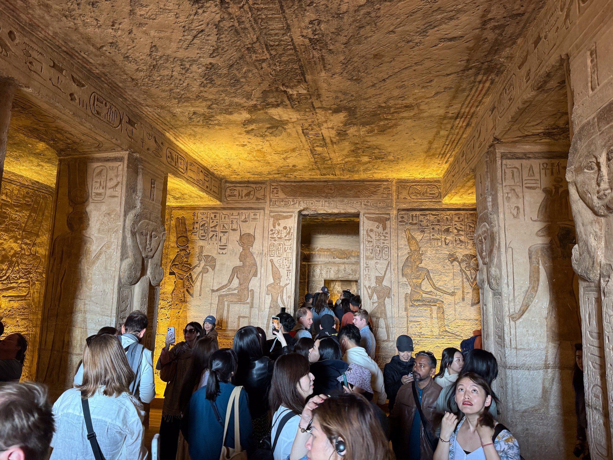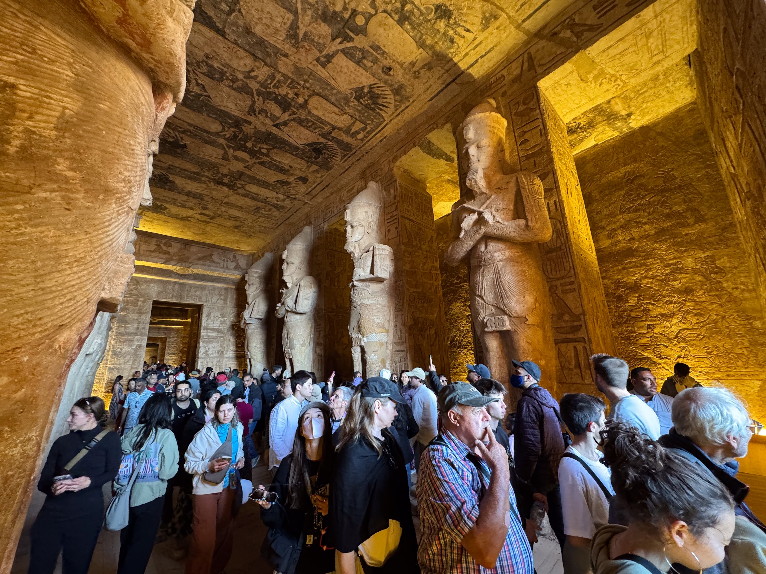 Wir bekommen jetzt ca. 1,5 Stunden Zeit zur freien Besichtigung. Trotz der vielen Menschen kommen wir recht zügig in beide Tempel, aber eigentlich wird man ziemlich durchgeschoben. Mahmud hat uns erklärt, dass wir jetzt auch auf dem Höhepunkt der Hauptsaison hier wären. Ab 5. Januar wäre es nicht mehr so voll. Wir können es nicht ändern, staunen trotzdem wieder über die wunderbaren Kunstschätze und wir freuen uns, hier zu sein.