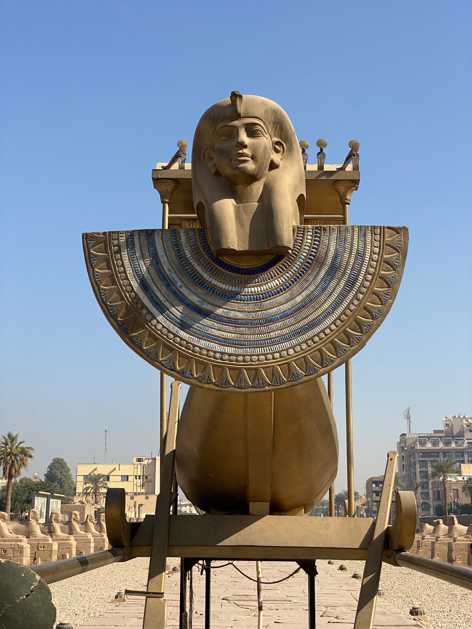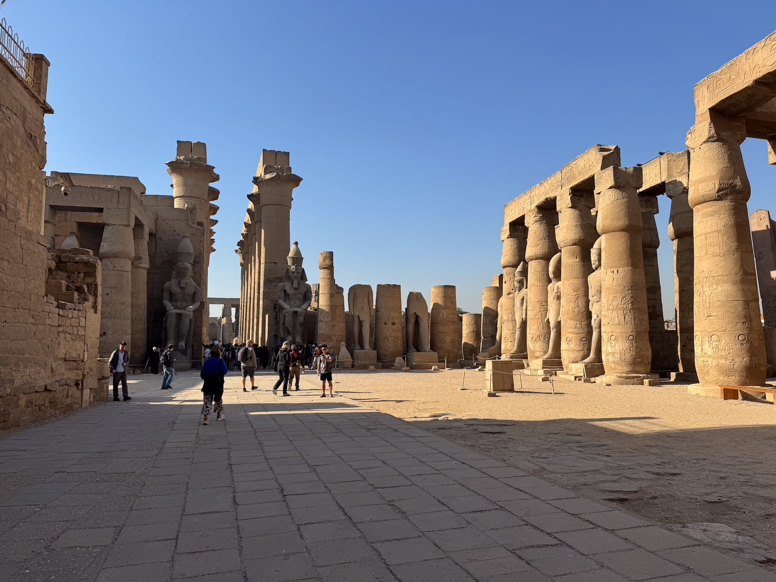 Der Luxortempel war lange Zeit durch Sand und Nilschlamm verschüttet und wurde erst nach 1881 freigelegt. Am Eingang des Tempels befanden sich zwei Obelisken. Als ein Franzose die Hieroglyphen entschlüsselte, begann die Wissenschaft der Ägyptologie. Daraufhin hat Ägypten den Franzosen die beiden Obelisken geschenkt. Da der Transport eines Obelisken 1831 über den Nil und die Seine nach Paris drei Jahre dauerte, verzichtete Frankreich auf den zweiten. Der erste Obelisk steht jetzt auf dem Place de la Concorde in Paris.