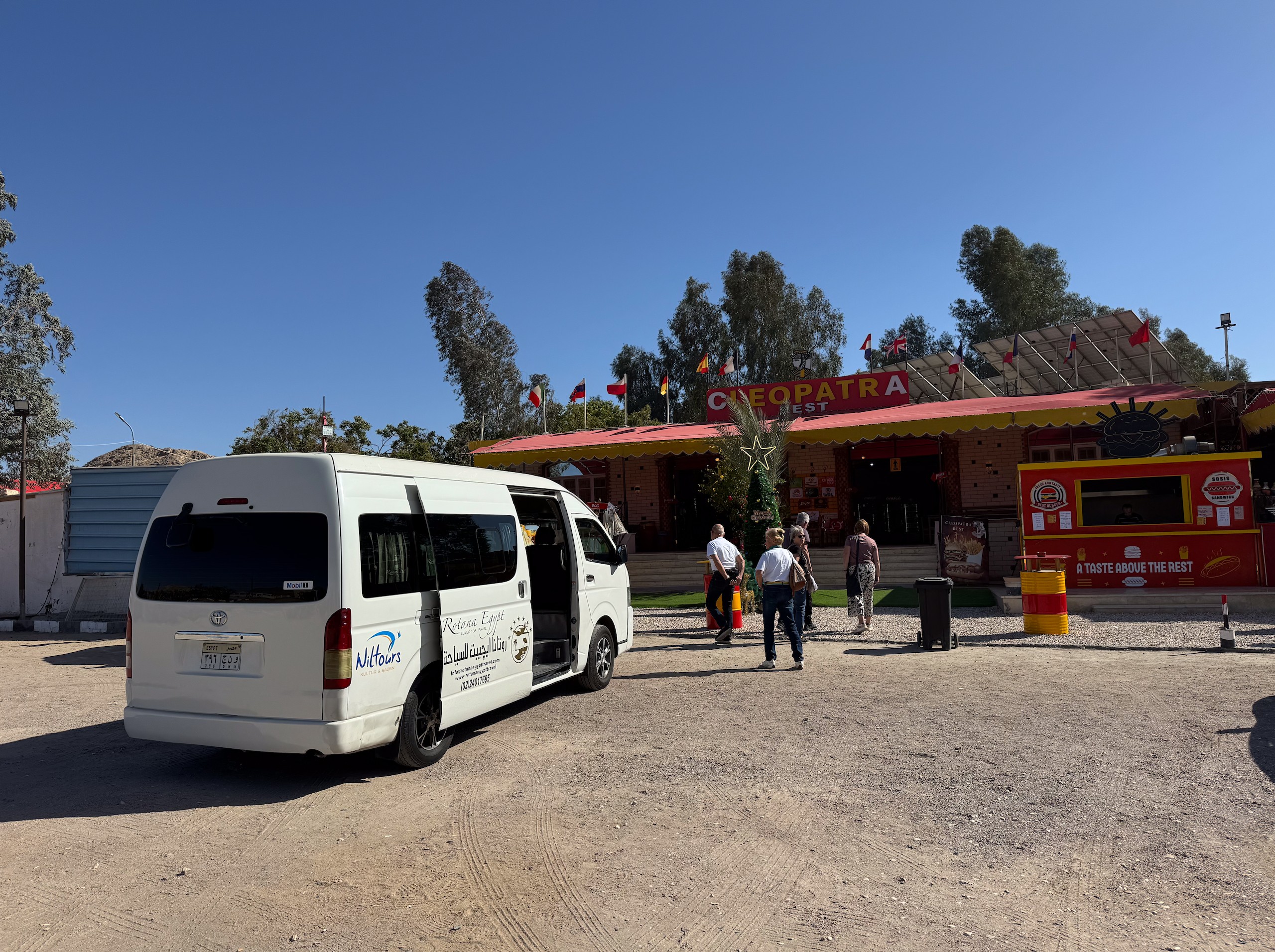 Nach einer extrem kurzen Nacht starten wir nach einem Kaffee um ca. 4.30 Uhr mit einem Kleinbus Richtung Abu Simbel. Diese Tour haben wir optional dazu gebucht, im Wissen, dass dafür ca. sieben bis acht Stunden Fahrzeit für Hin- und Rückfahrt veranschlagt werden müssen und nur zwei Stunden Besichtigung zur Verfügung stehen.