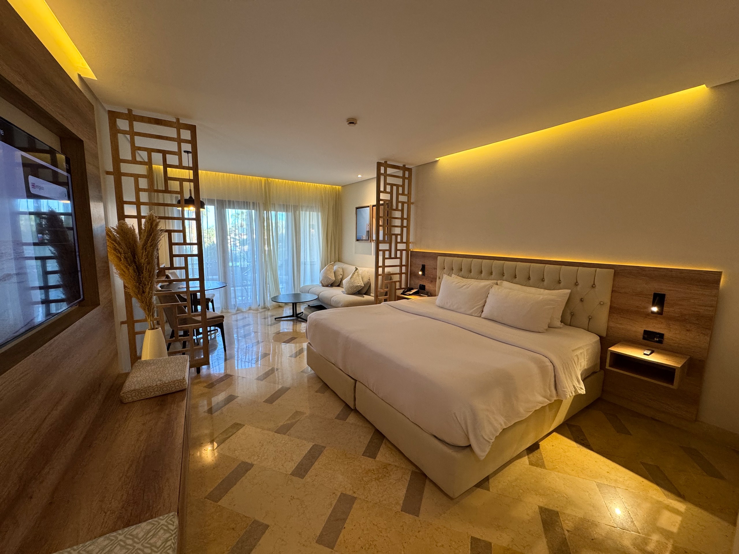Unsere Anlage ist zwar recht weitläufig, aber schon am Strand sind die Grenzen schnell durch andere Hotelanlagen gesteckt. Also nichts mit langen Strandspaziergängen. Das Meer ist ebenso wie die Pools mit um die 20 Grad Wassertemperatur auch nichts für uns Warmduscher. Aber da sich insgesamt kaum Menschen im Pool aufhalten, geht es anderen wohl ebenso.