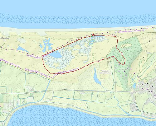 Heute machen wir eine Fahrradtour vom Campingplatz Duinnoord nach Hollum und dann über Ballum zurück. Weit kommen wir aber nicht, da unterbrechen wir unsere Radtour bereits für eine Wanderung. Es geht bei dieser Wanderung einmal um das Hagedoornveld, wobei es sich um ein schönes Wald- und Dünengebiet mit einer typischen Flora und Fauna handelt. Die Runde ist etwas über 5 Kilometer lang und wir sind dafür ziemlich genau eine Stunde unterwegs.