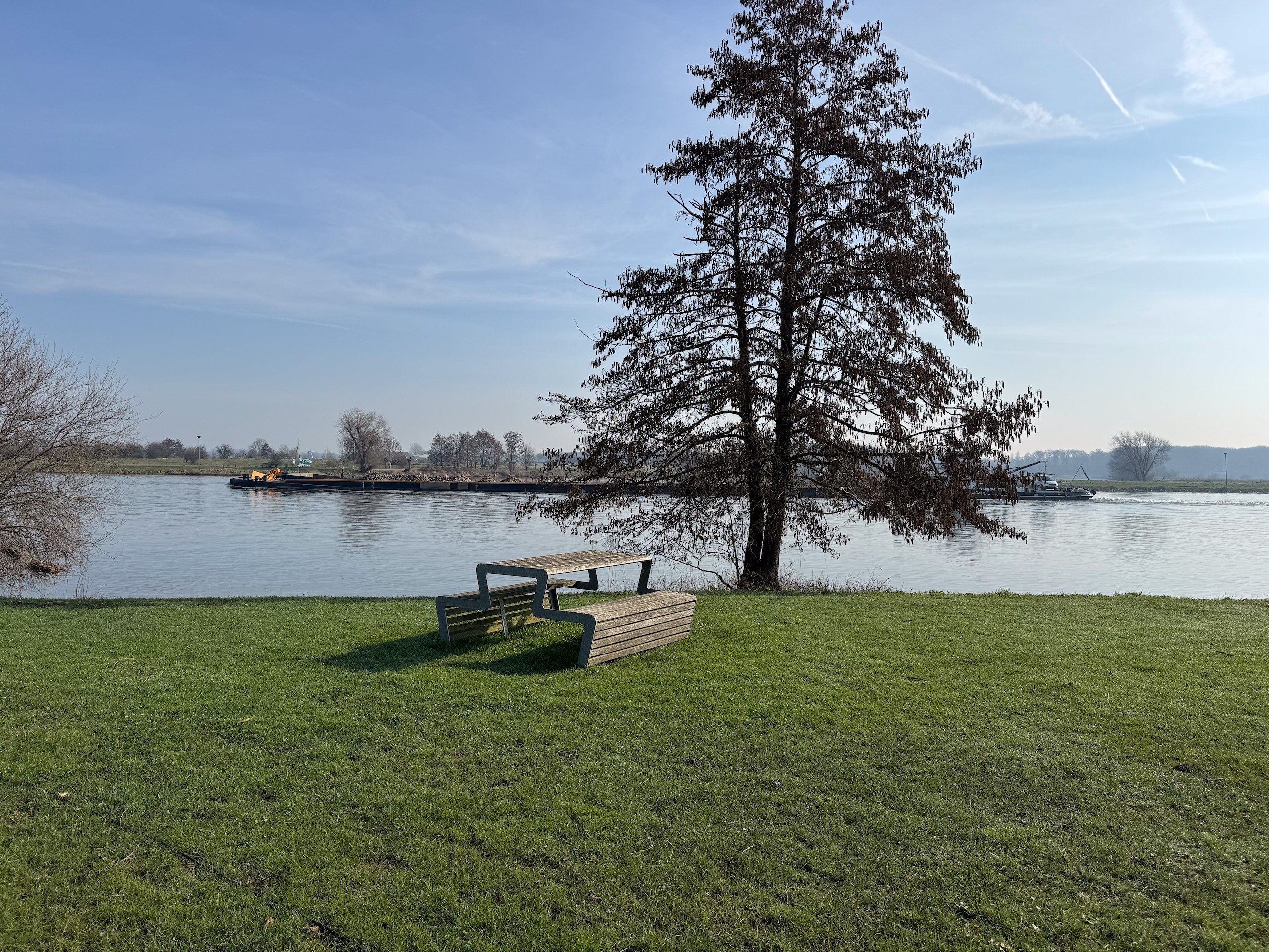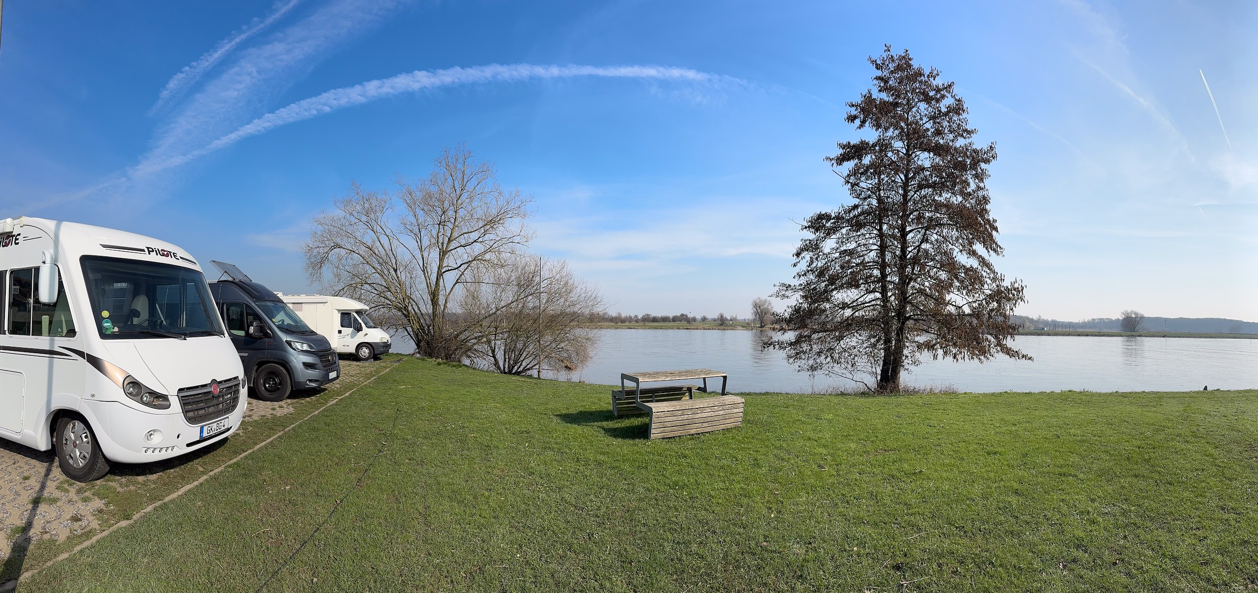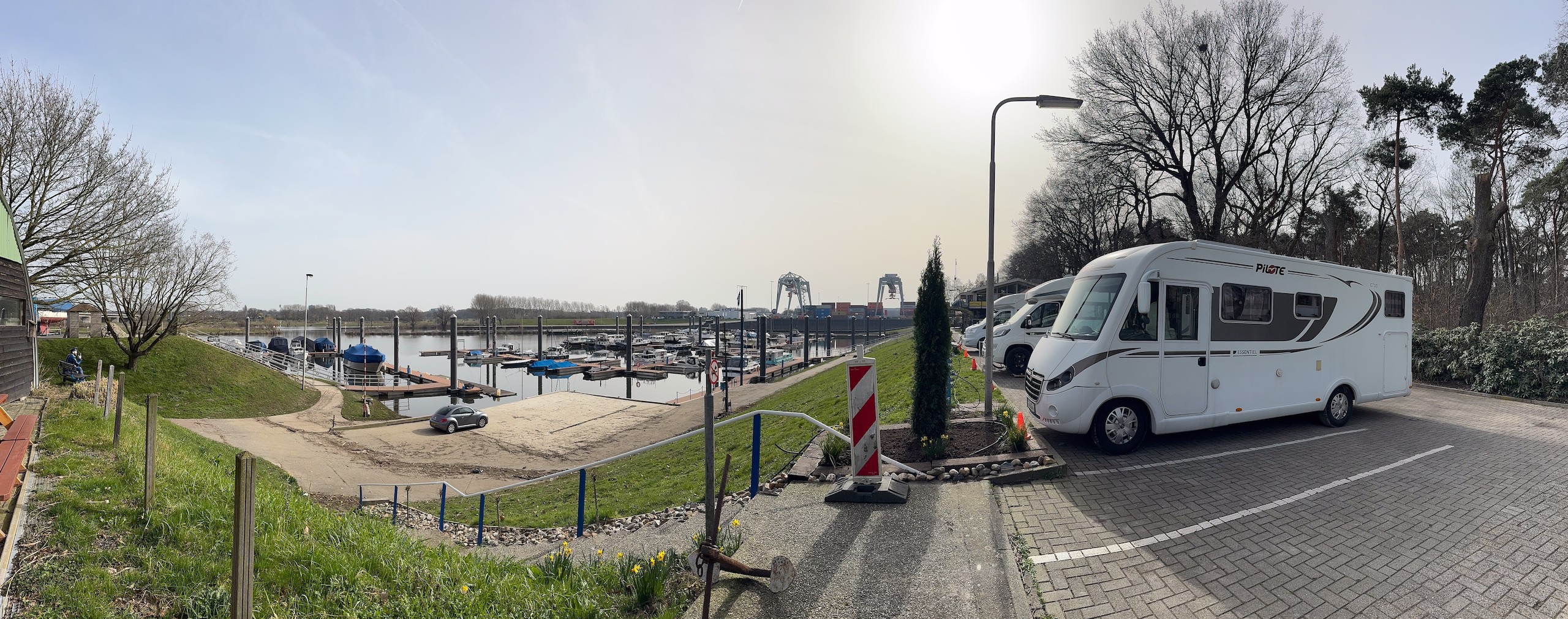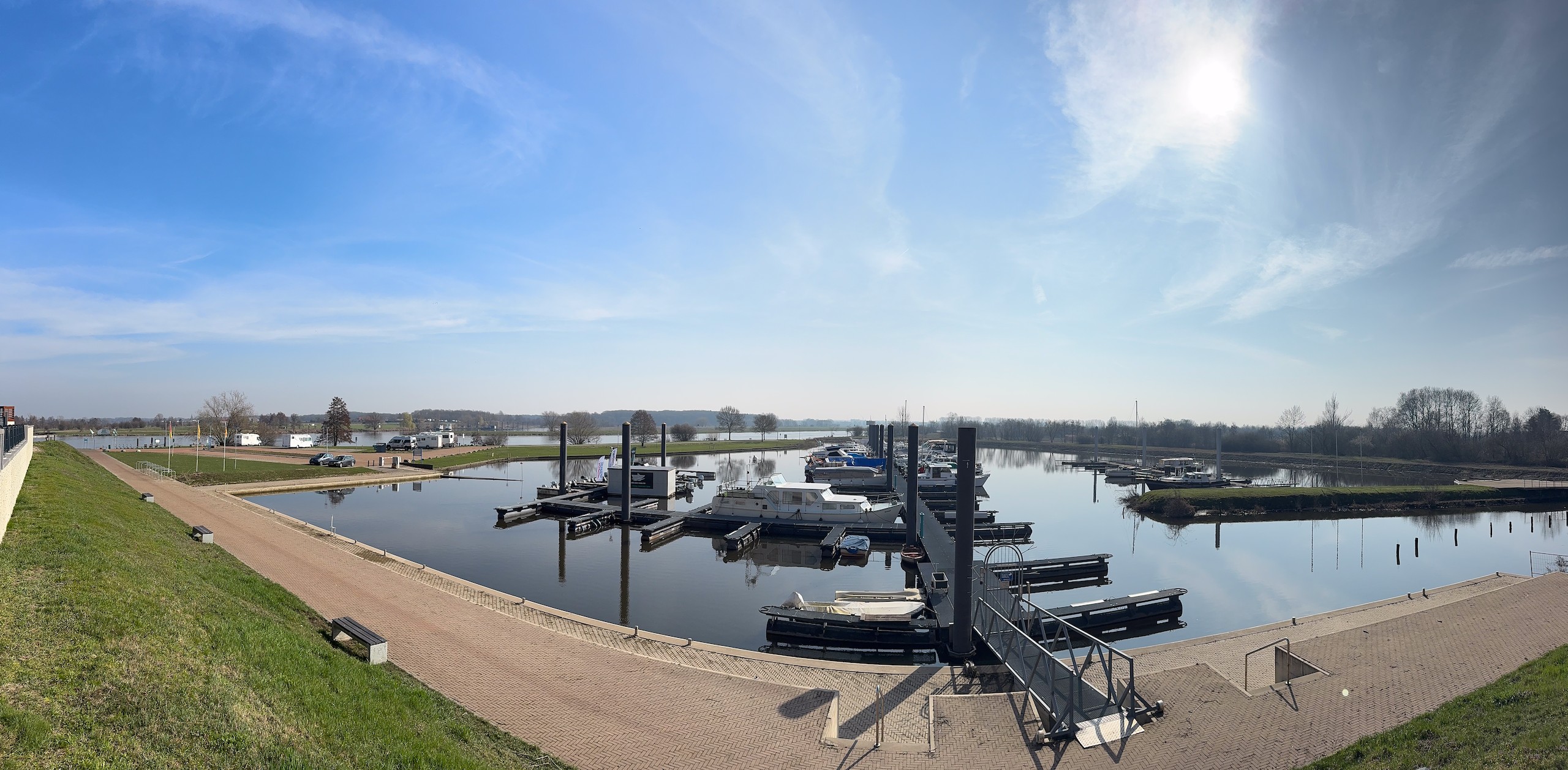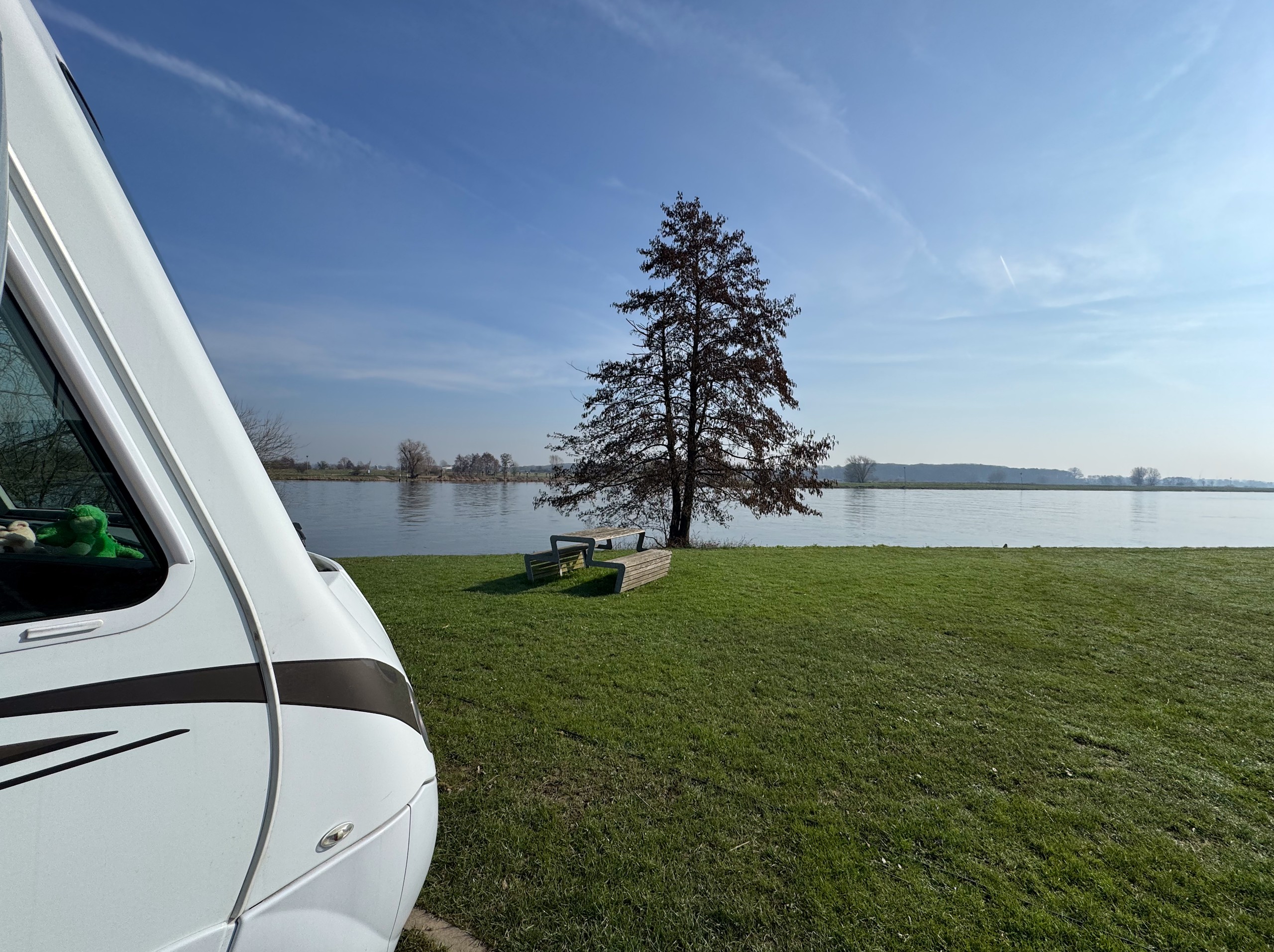 Das Wetter ist jetzt Anfang März prima und die nächsten drei bis vier Tage soll es auch so bleiben. Also sind wir mal ganz spontan, machen das Wohnmobil startklar und fahren an die Maas, was für uns etwas über eine Stunde Fahrzeit bedeutet. Ursprünglich wollten wir zum Wohnmobilstellplatz Camperplaats Kessel-Eik aan de Maas, da waren wir schon im März 2024. Kurzfristig entscheiden wir uns dann aber für den drei Kilometer flussaufwärts liegenden Camperplaats Jachthaven in Hanssum und haben die Entscheidung nicht bereut.