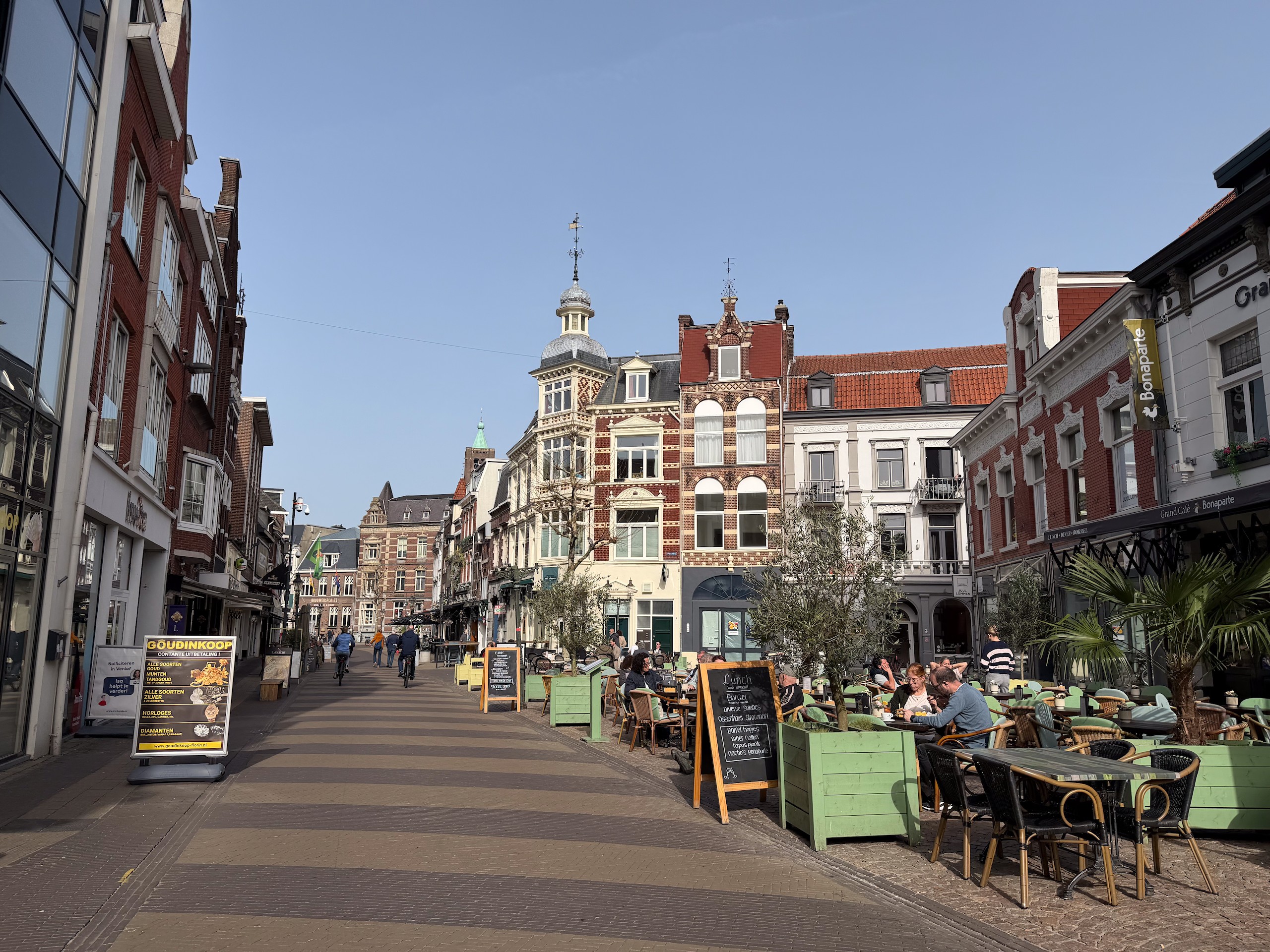 Heute machen wir mal wieder eine kleine Fahrradtour und zwar geht es vom Hafen in Hassum nach Roermond, wo wir auf dem Marktplatz die Außengastonomie nutzen. Hier sind wir mittlerweile auf der anderen Maas-Seite und radeln weiter bis nach Kessel, wo wir mit der Fähre wieder übersetzen und direkt zurück nach Hanssum radeln, da wir den hübschen Ort Kessel bereits kennen.