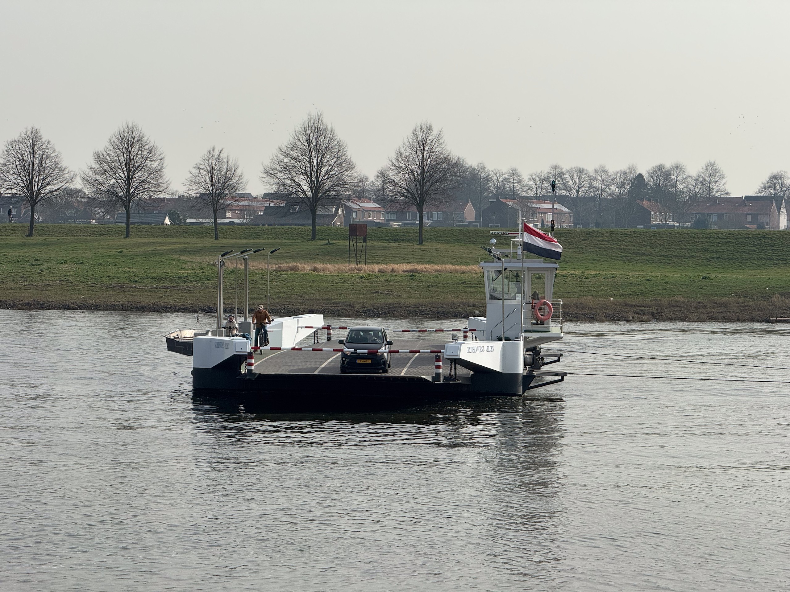 Der Camperplaats Jachthaven in Hanssum liegt direkt an der Maas und man kann hier schön die vorbeifahrenden Schiffe gucken, ein wirklich gut gemachter Stellplatz, allerdings ohne Ver- und Entsorgung. Der Stellplatz am Jachthafen liegt zwischen Roermond und Kessel und beide Orte sind prima mit dem Fahrrad zu erreichen. Für die Fähre hier sind wir allerdings noch zu früh im Jahr dran, die startet erst im April ihren Betrieb. Den Camperplaats Jachthaven bezahlt man ziemlich einfach über eine Webseite, die hier per Barcode ausgewiesen ist.