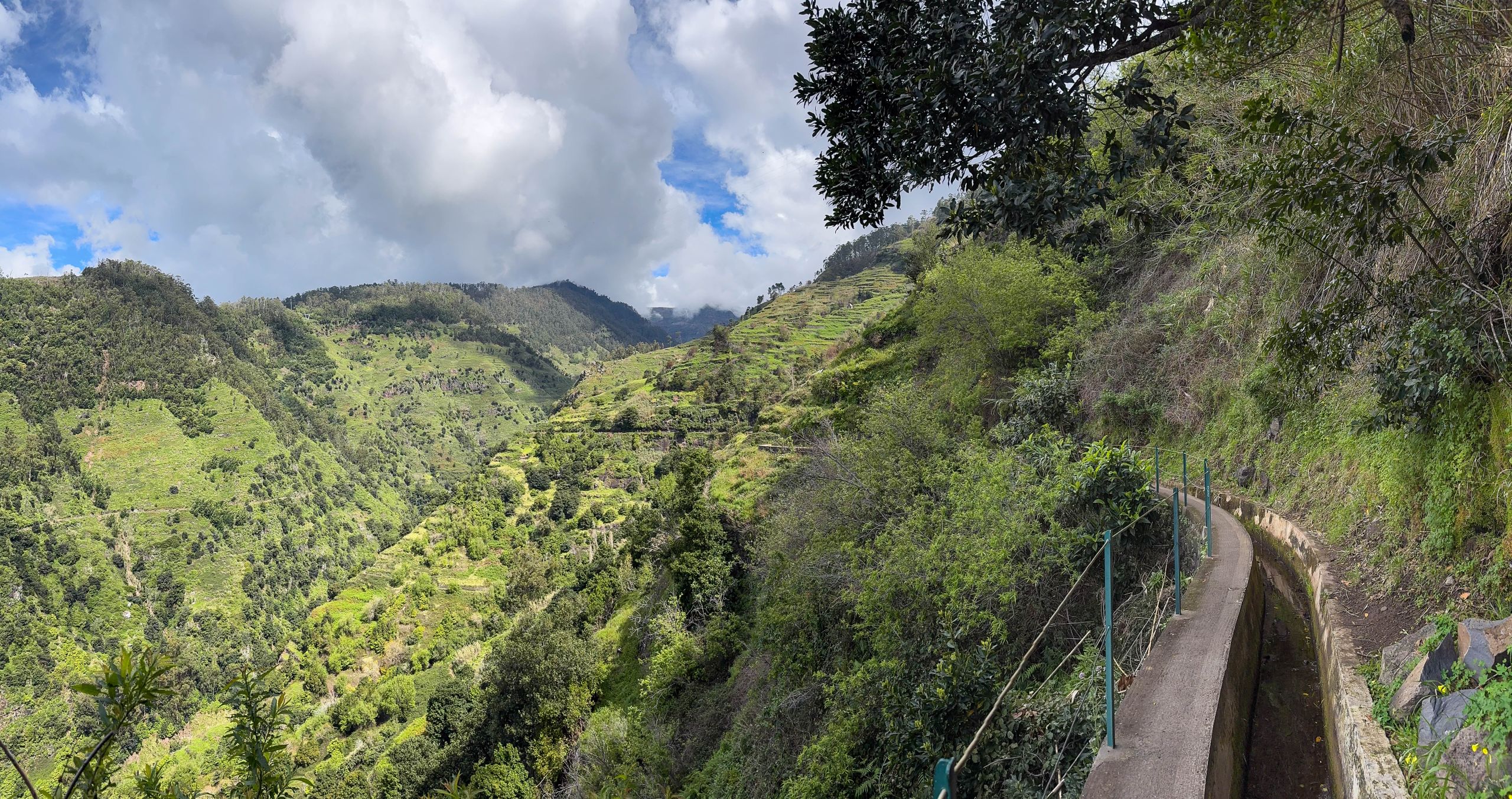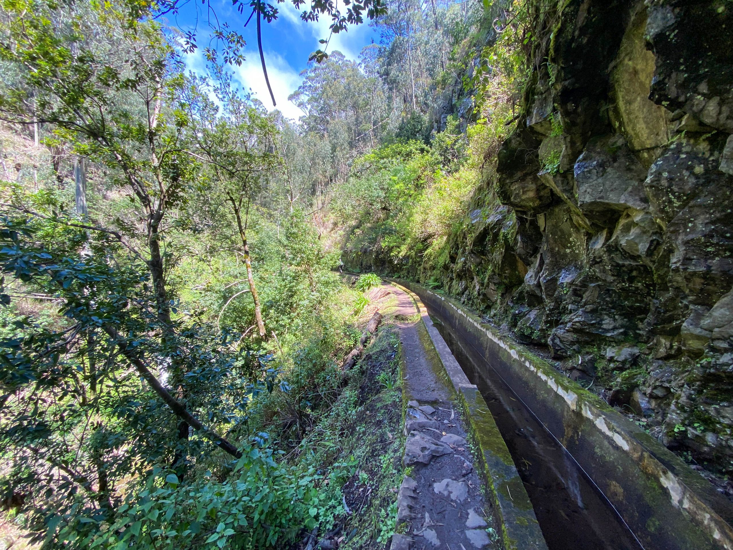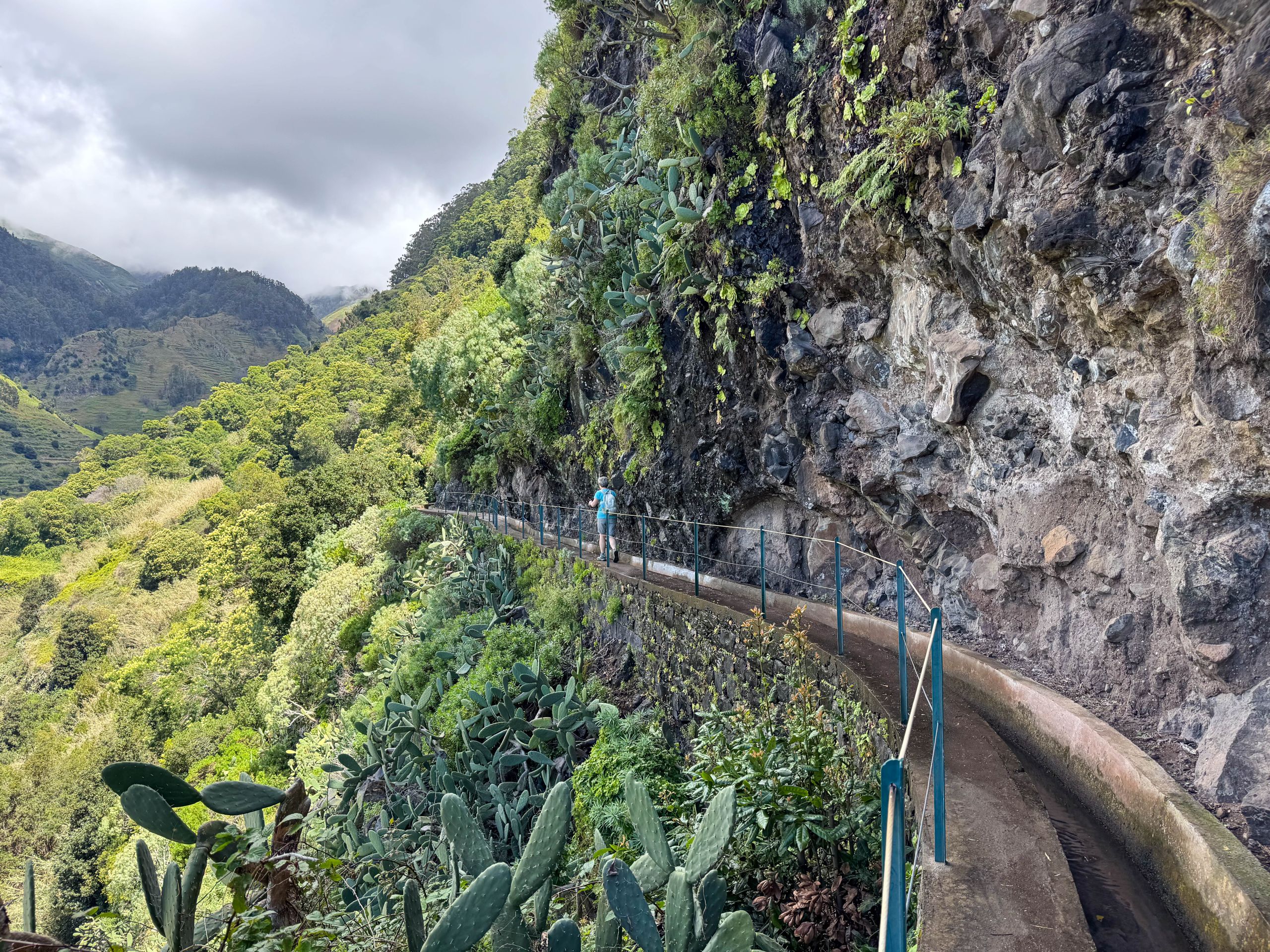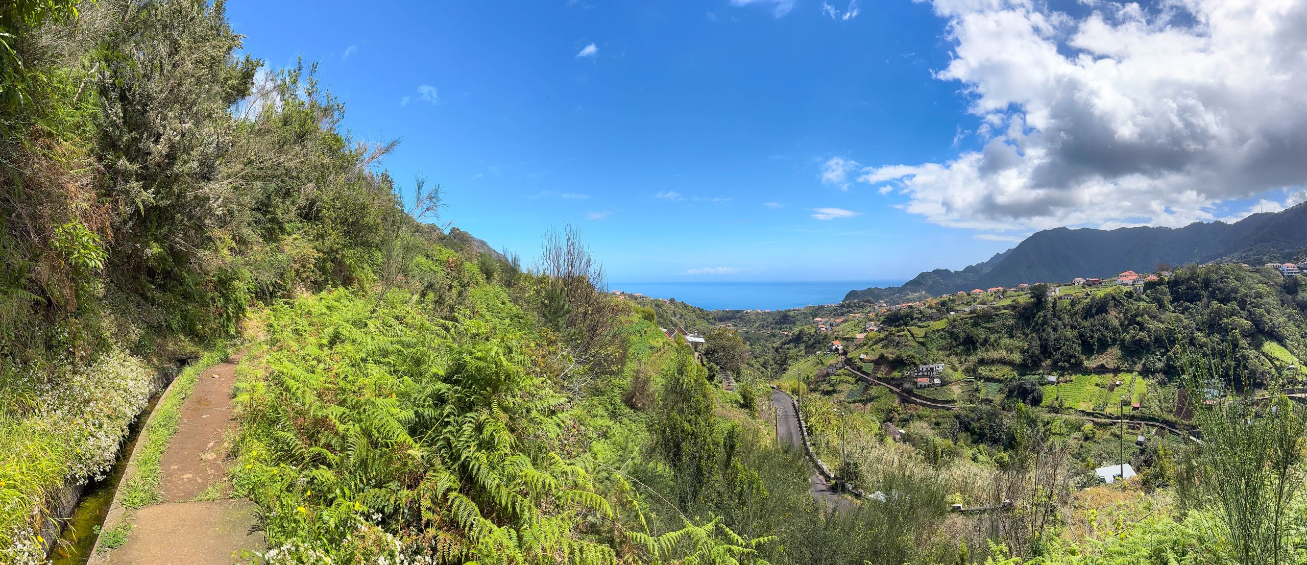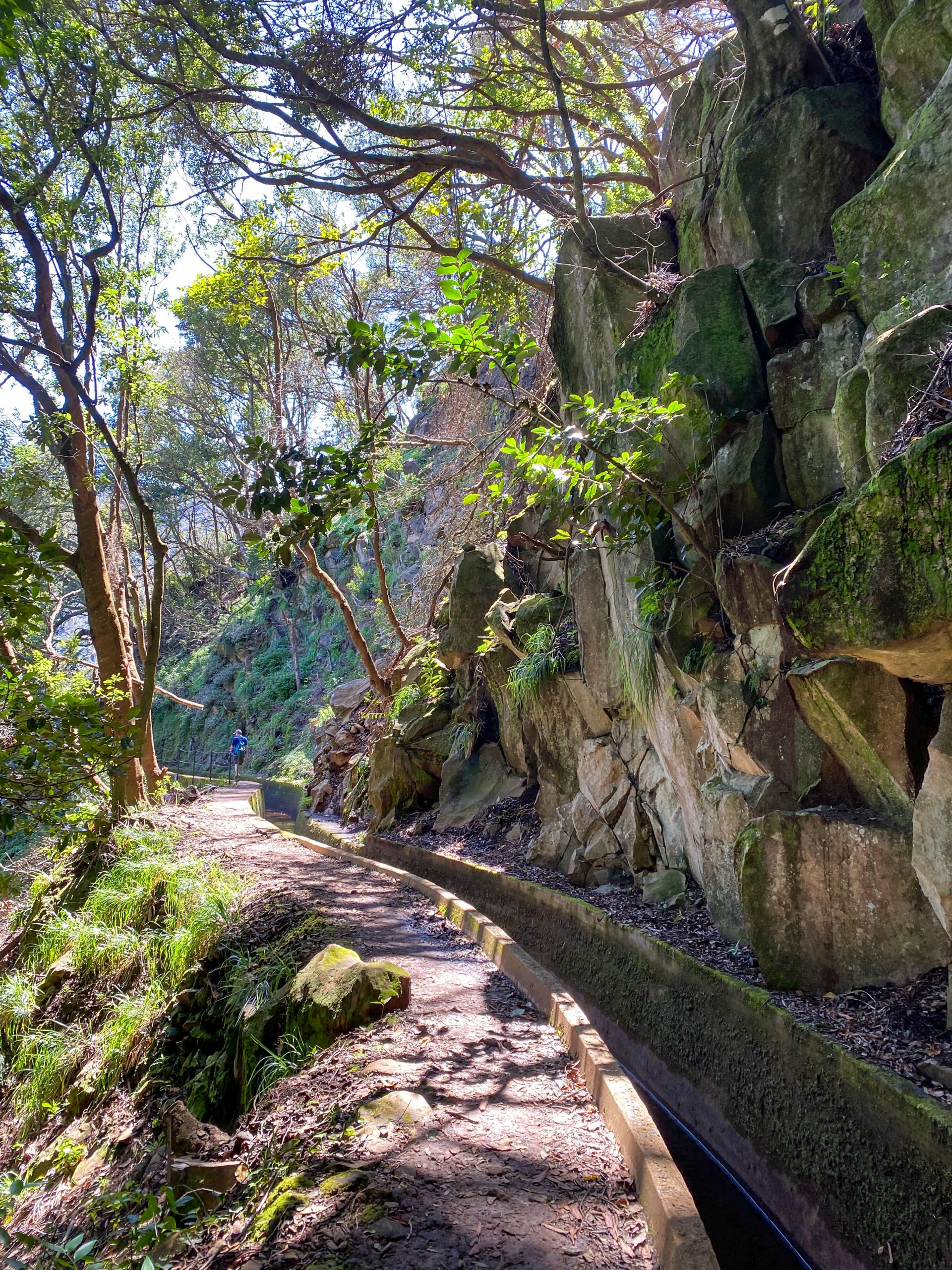 Wir parken an der selben Stelle wie beim letzten Mal und finden relativ schnell den Zugang zur Levada do Moinho. Diese verläuft unterhalb der Levada Nova, über die wir nachher zurück gehen werden. Die Levada do Moinho ist deutlich rustikaler zu gehen, gefällt uns aber auch sehr gut. Die Wege sind unebener und es ist zugewachsener.
