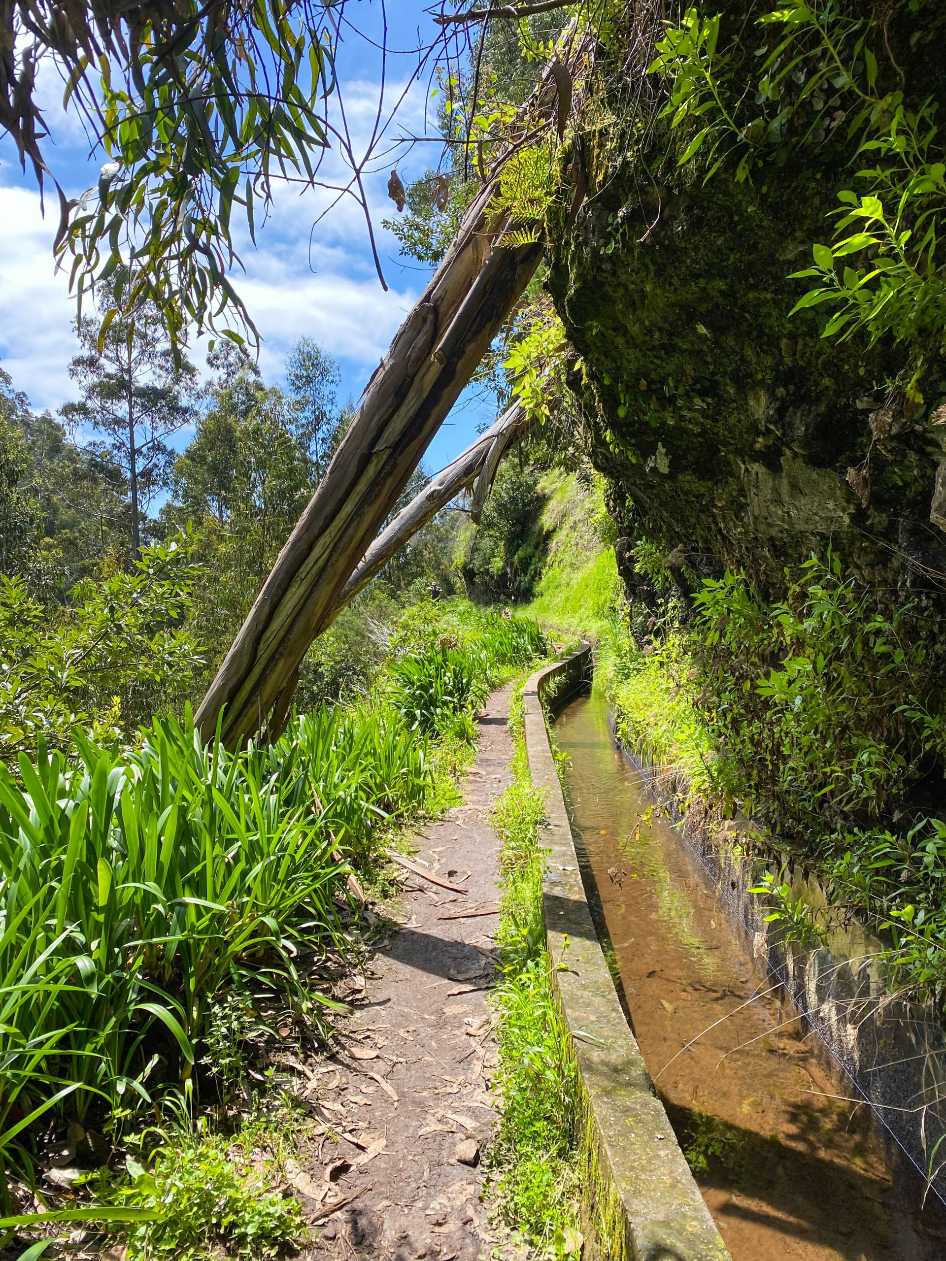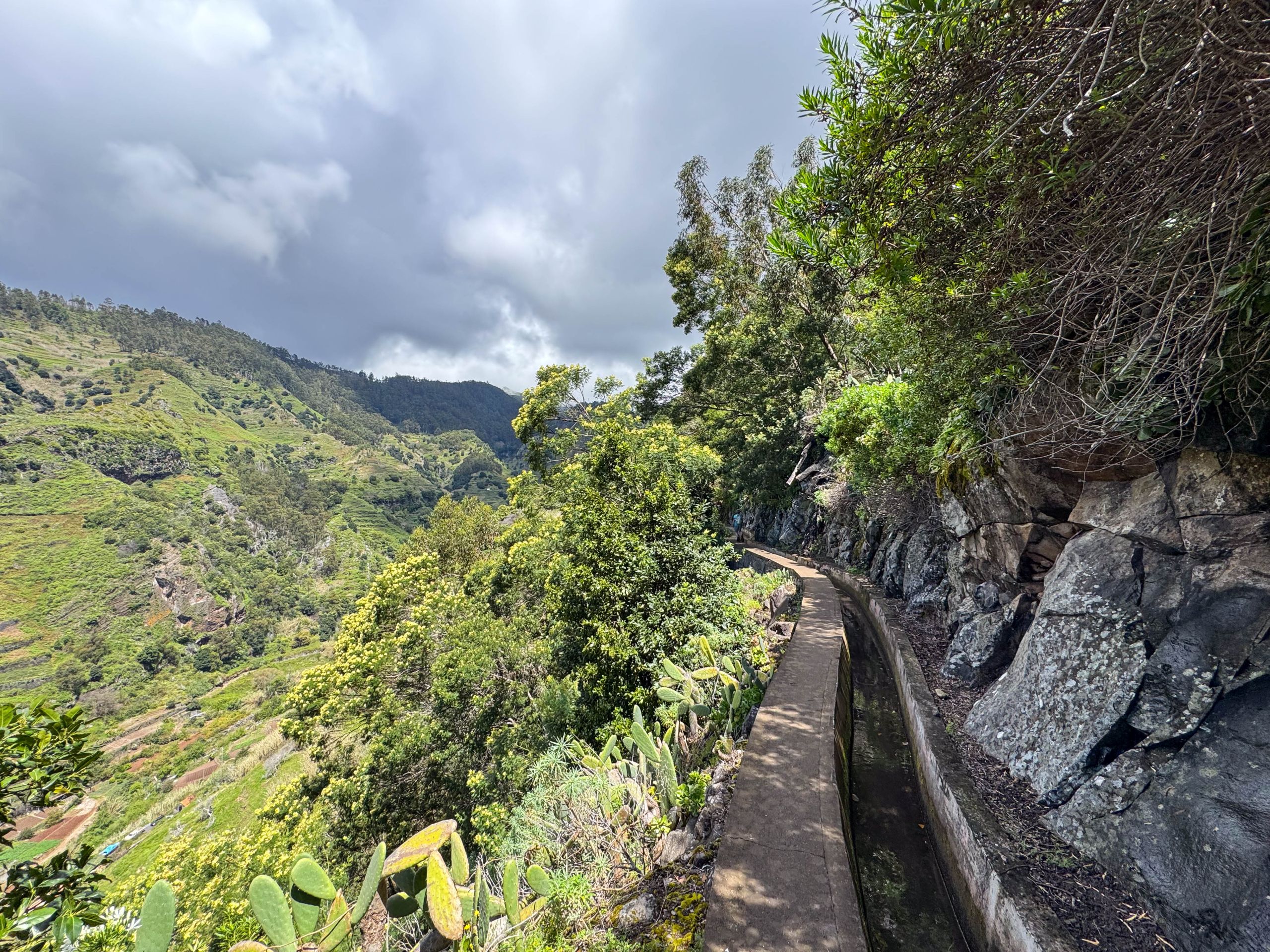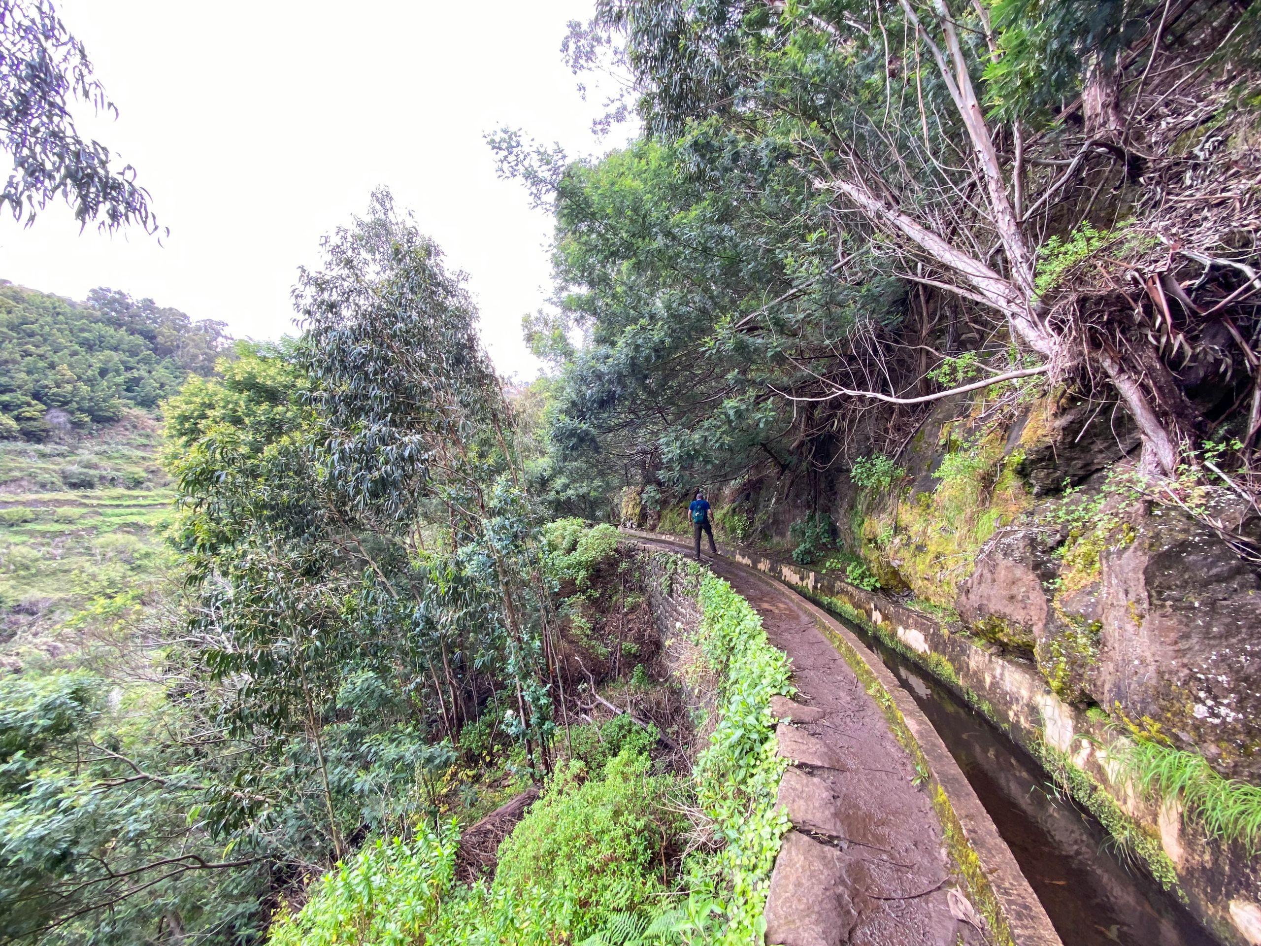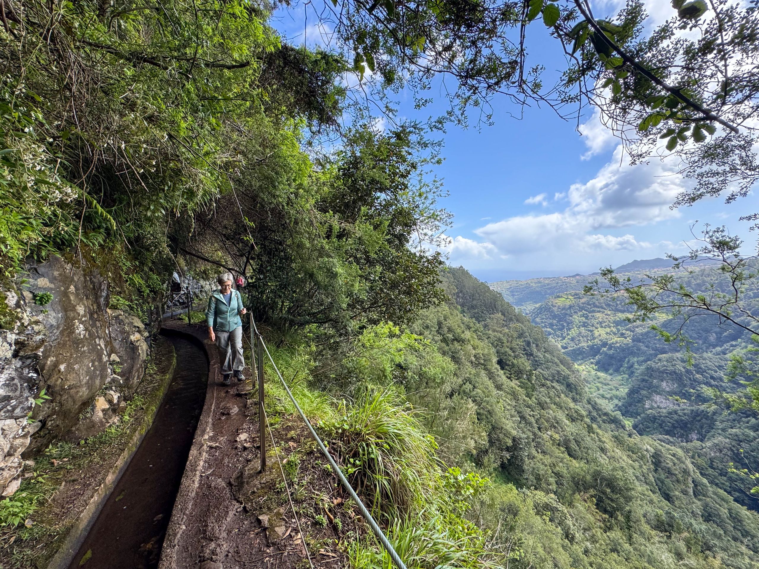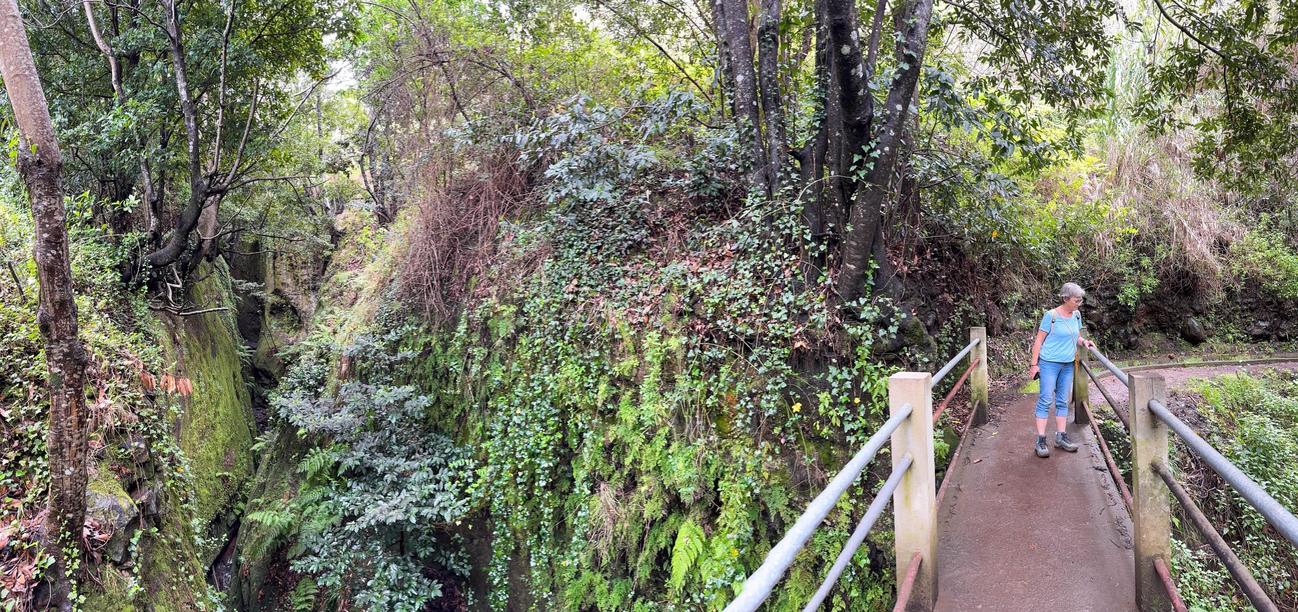 Wir parken an der selben Stelle wie beim letzten Mal und finden relativ schnell den Zugang zur Levada do Moinho. Diese verläuft unterhalb der Levada Nova, über die wir nachher zurück gehen werden. Die Levada do Moinho ist deutlich rustikaler zu gehen, gefällt uns aber auch sehr gut. Die Wege sind unebener und es ist zugewachsener.