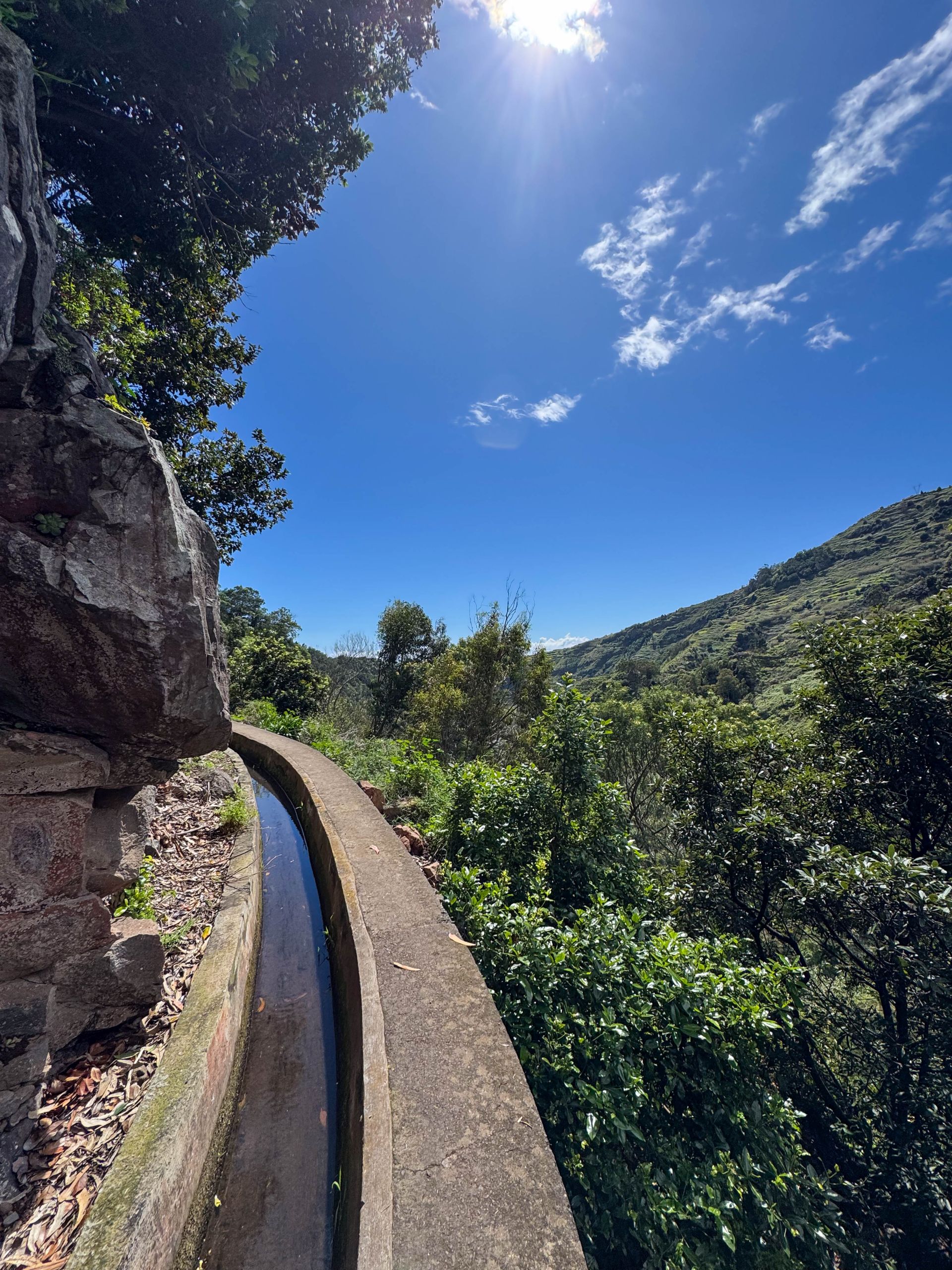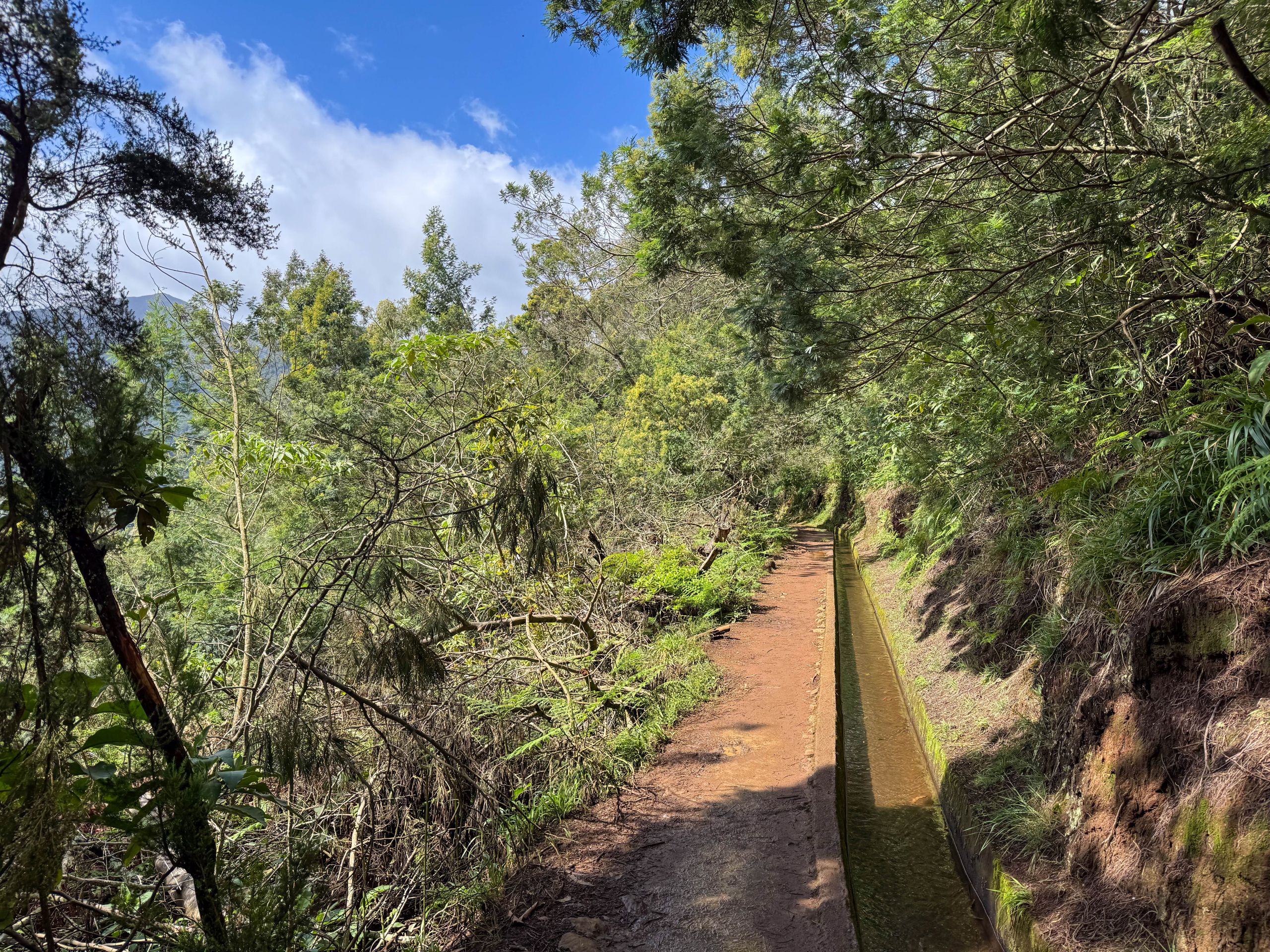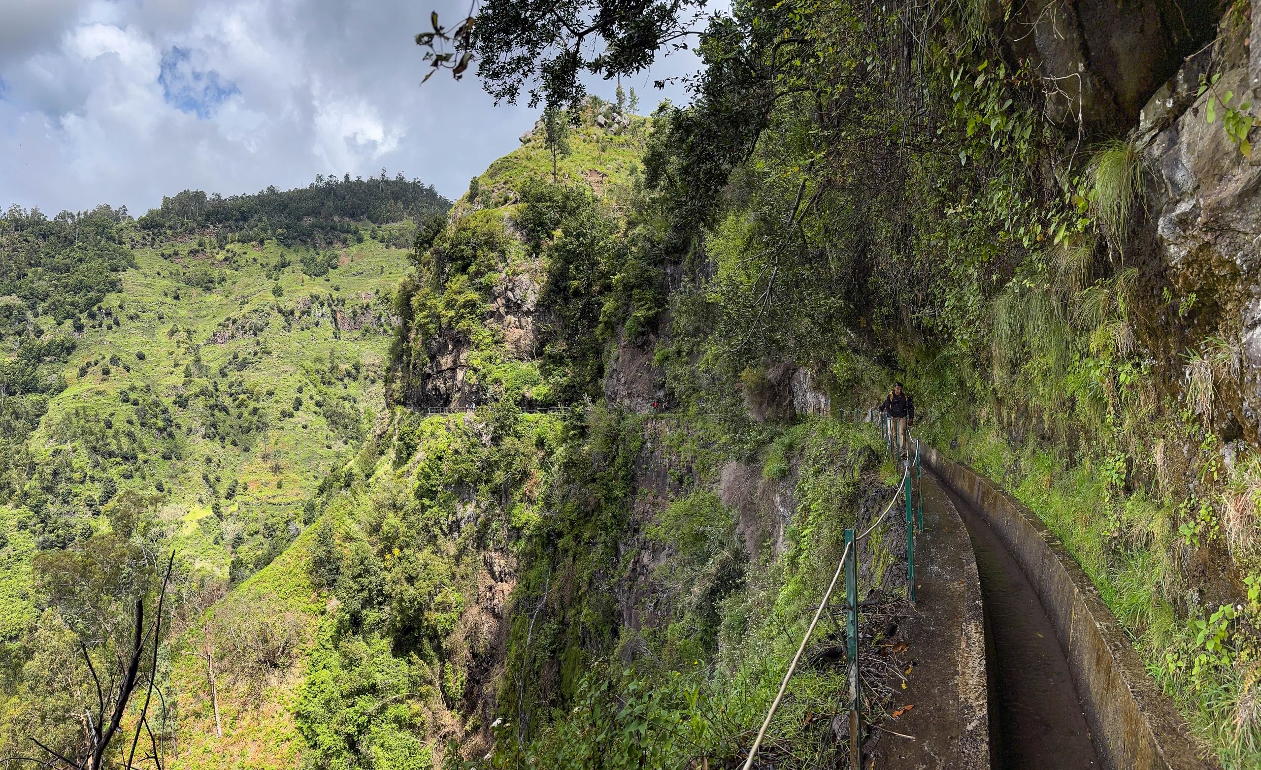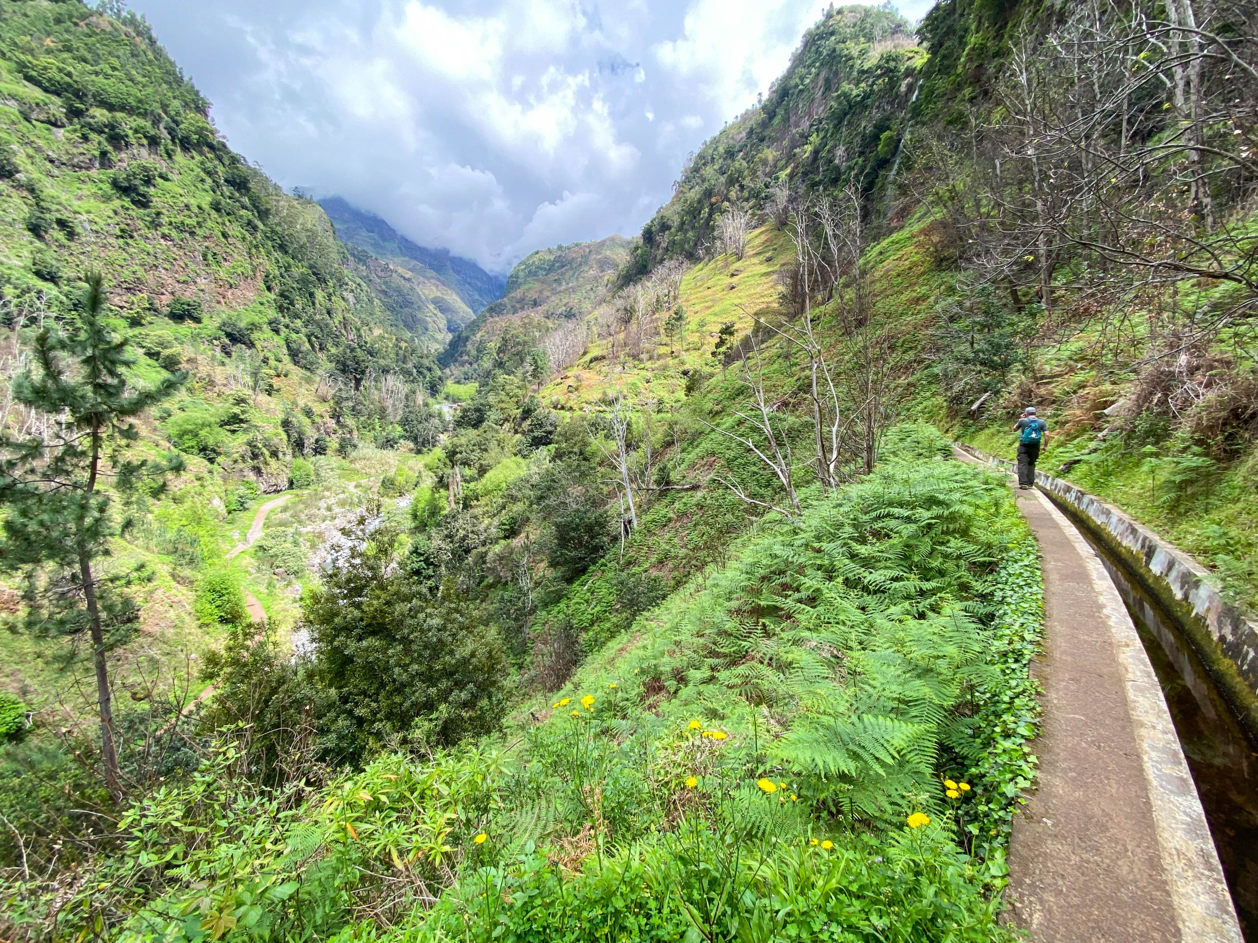 Wir parken an der selben Stelle wie beim letzten Mal und finden relativ schnell den Zugang zur Levada do Moinho. Diese verläuft unterhalb der Levada Nova, über die wir nachher zurück gehen werden. Die Levada do Moinho ist deutlich rustikaler zu gehen, gefällt uns aber auch sehr gut. Die Wege sind unebener und es ist zugewachsener.
