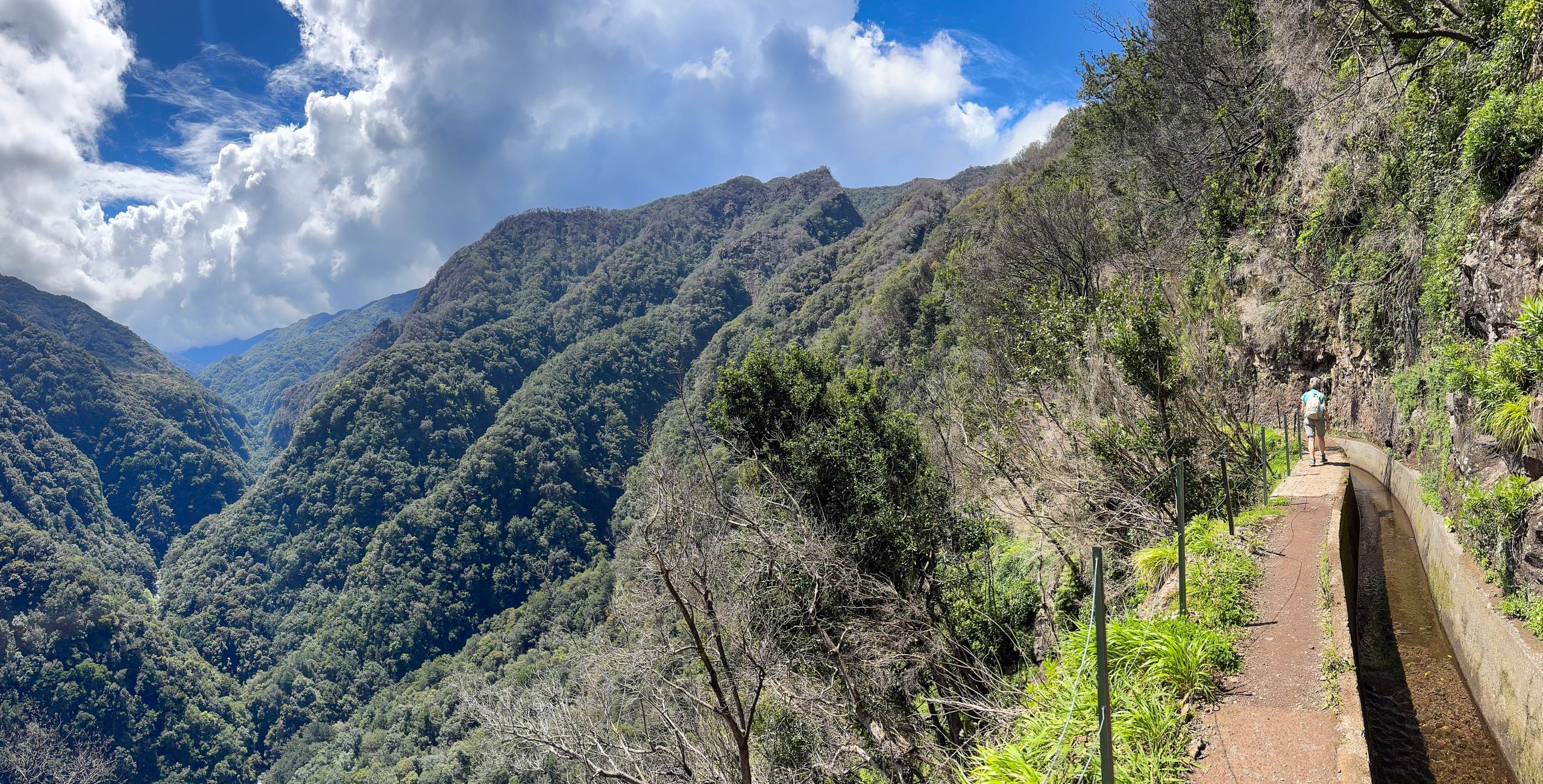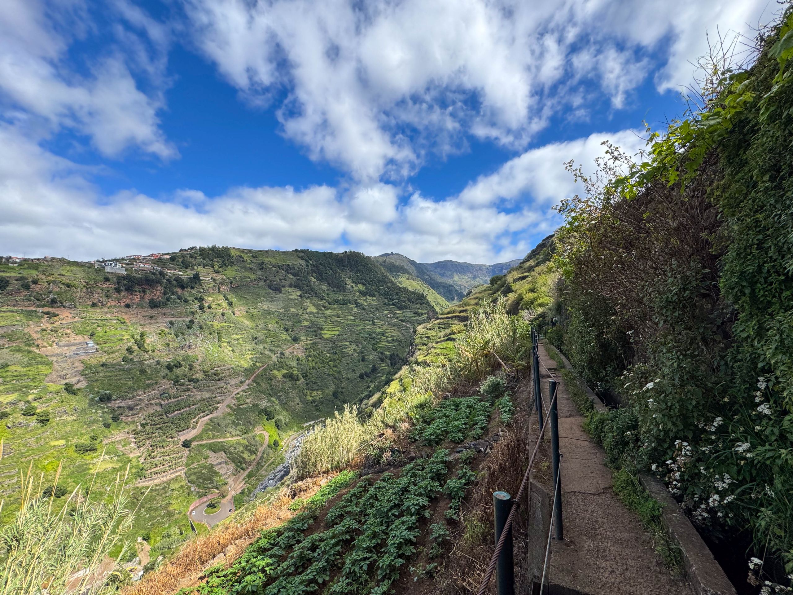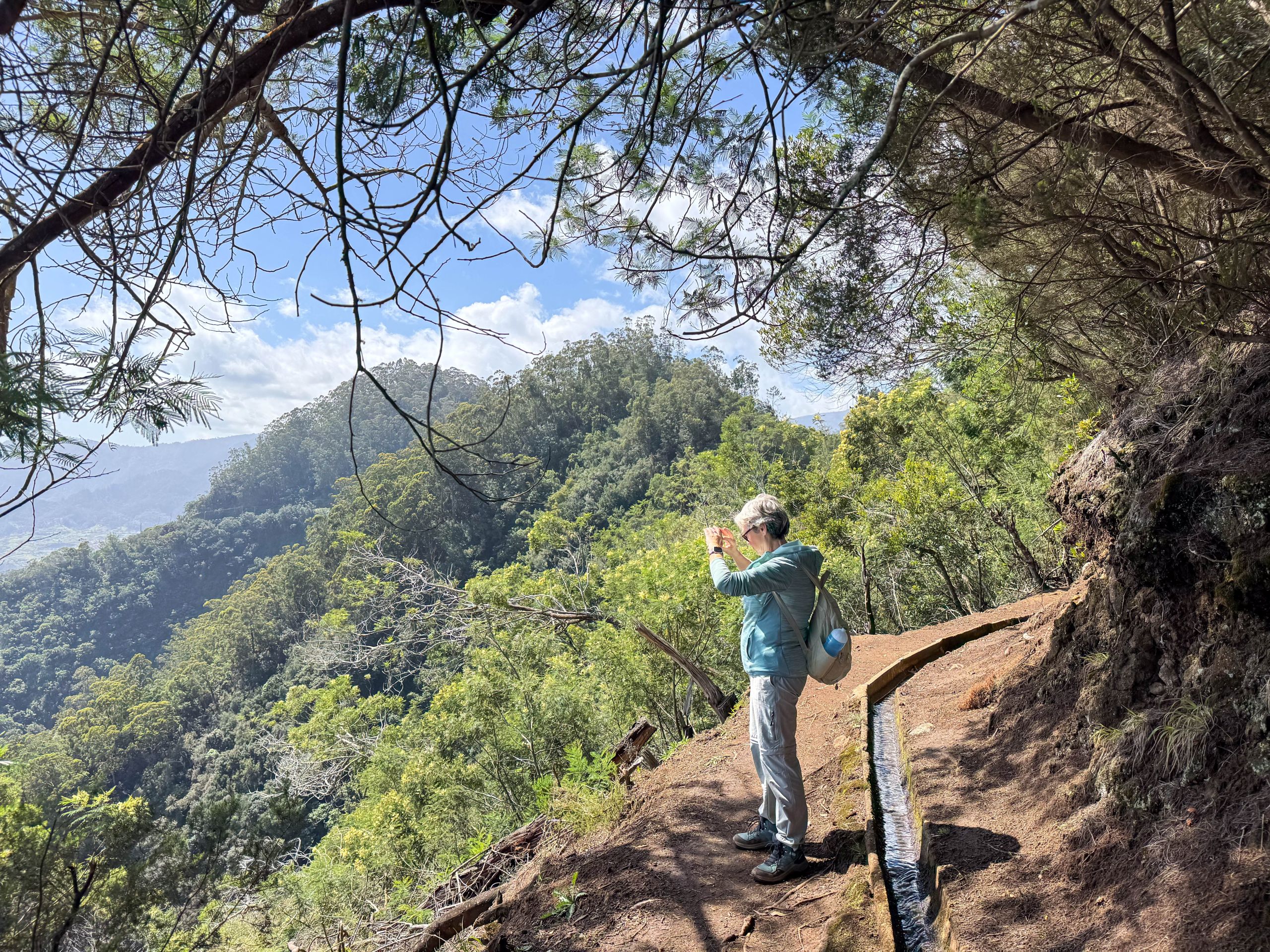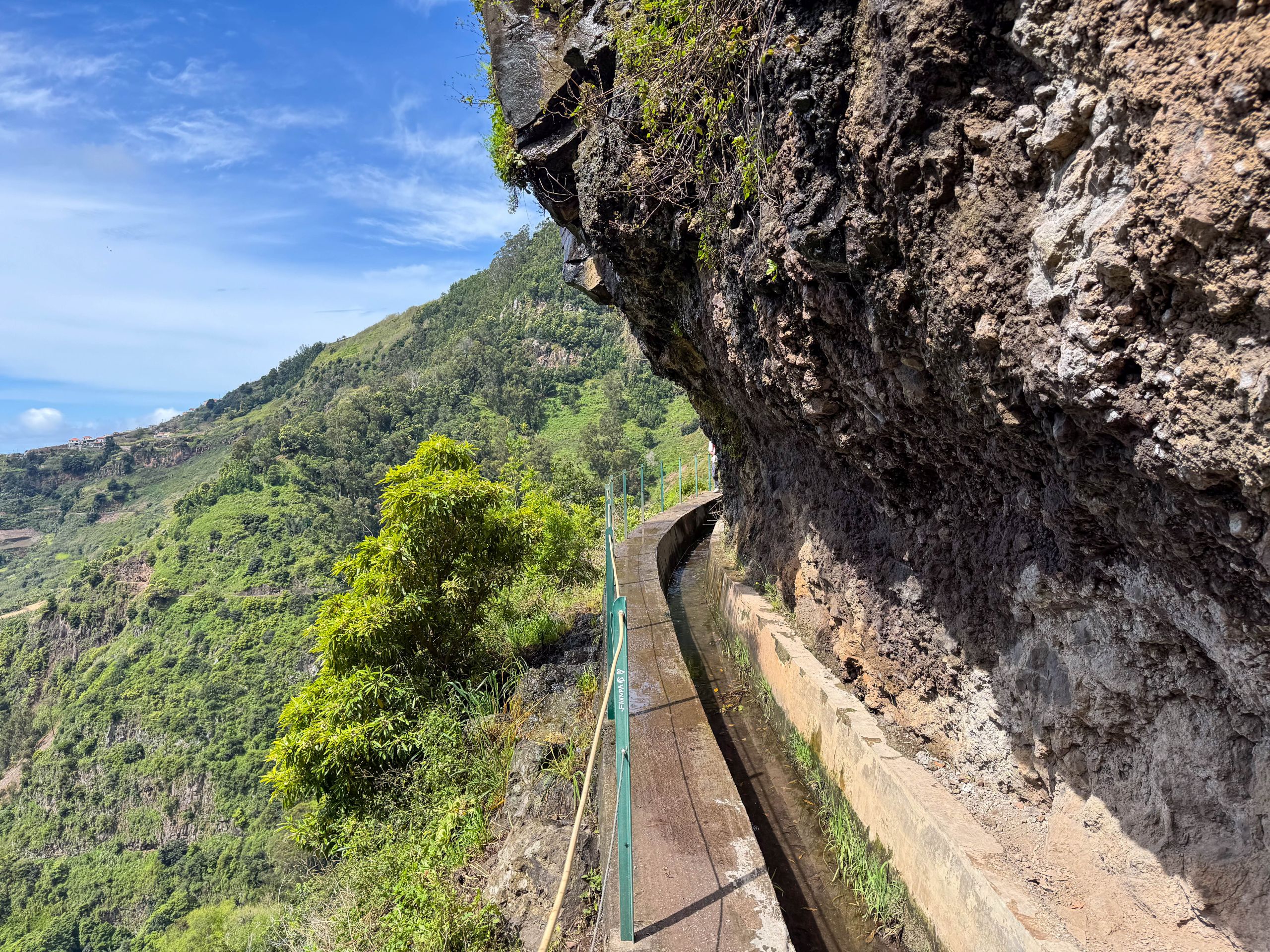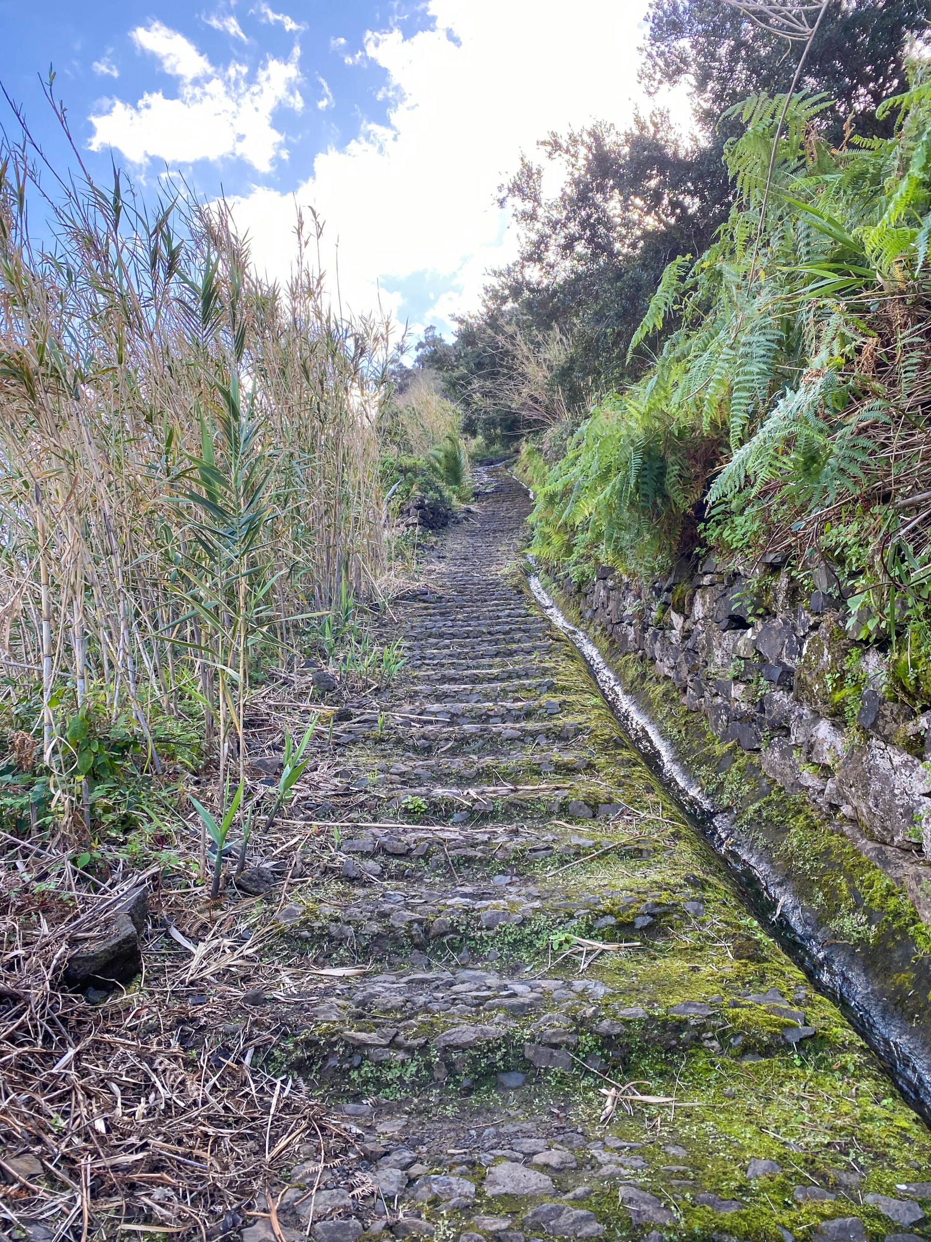 Wir parken an der selben Stelle wie beim letzten Mal und finden relativ schnell den Zugang zur Levada do Moinho. Diese verläuft unterhalb der Levada Nova, über die wir nachher zurück gehen werden. Die Levada do Moinho ist deutlich rustikaler zu gehen, gefällt uns aber auch sehr gut. Die Wege sind unebener und es ist zugewachsener.
