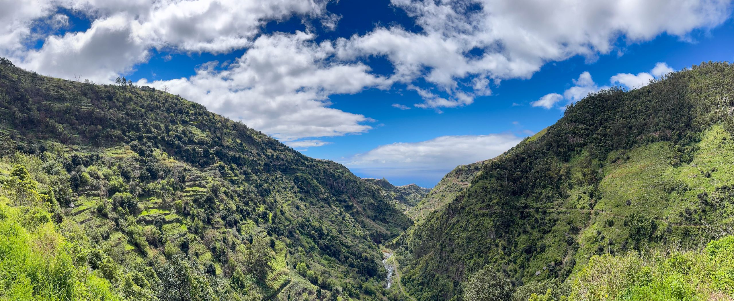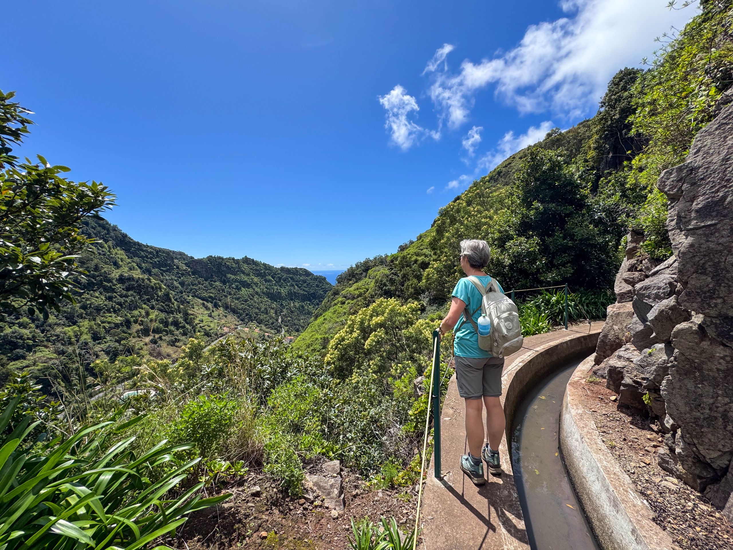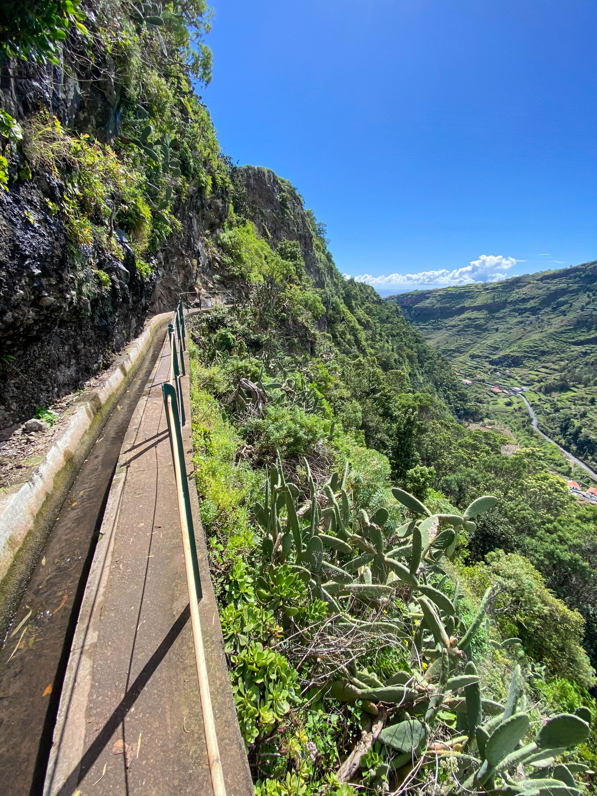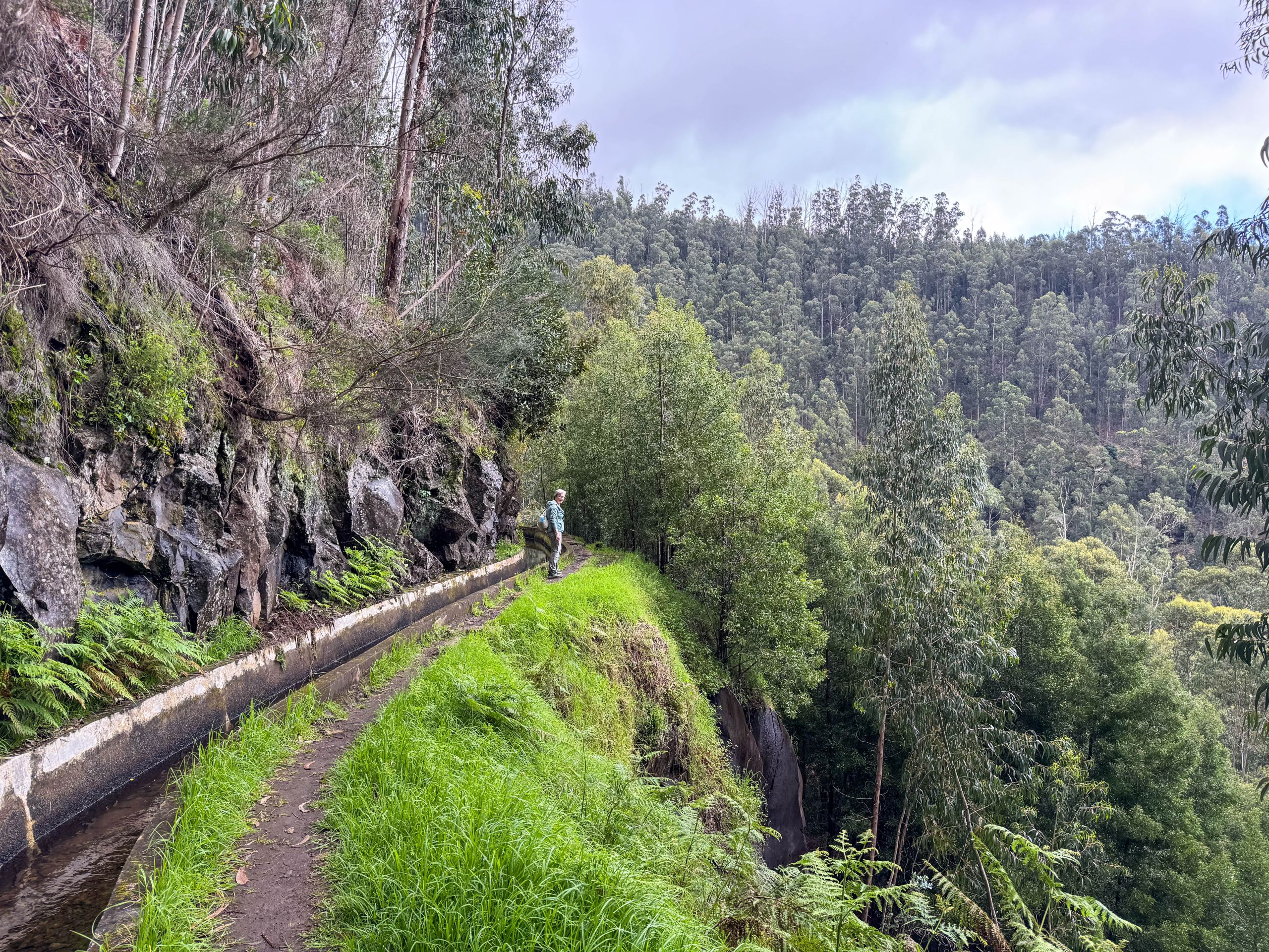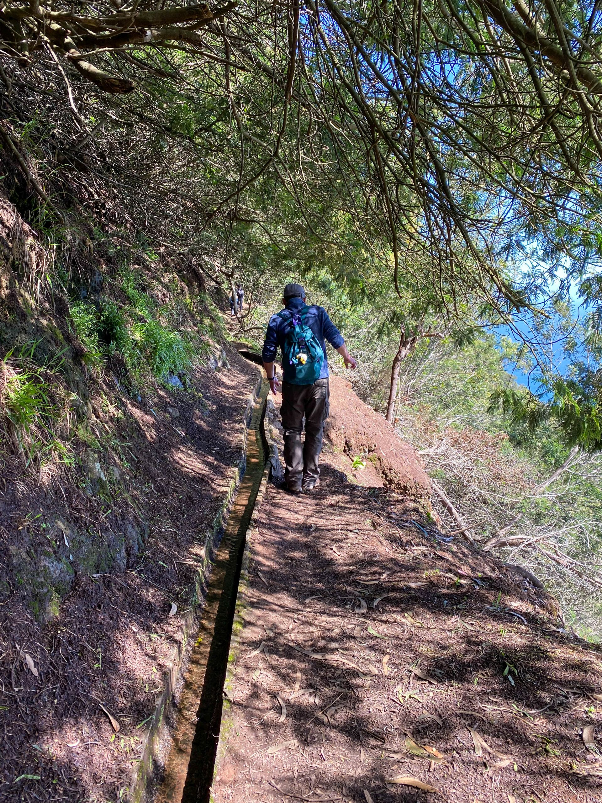 Wir parken an der selben Stelle wie beim letzten Mal und finden relativ schnell den Zugang zur Levada do Moinho. Diese verläuft unterhalb der Levada Nova, über die wir nachher zurück gehen werden. Die Levada do Moinho ist deutlich rustikaler zu gehen, gefällt uns aber auch sehr gut. Die Wege sind unebener und es ist zugewachsener.