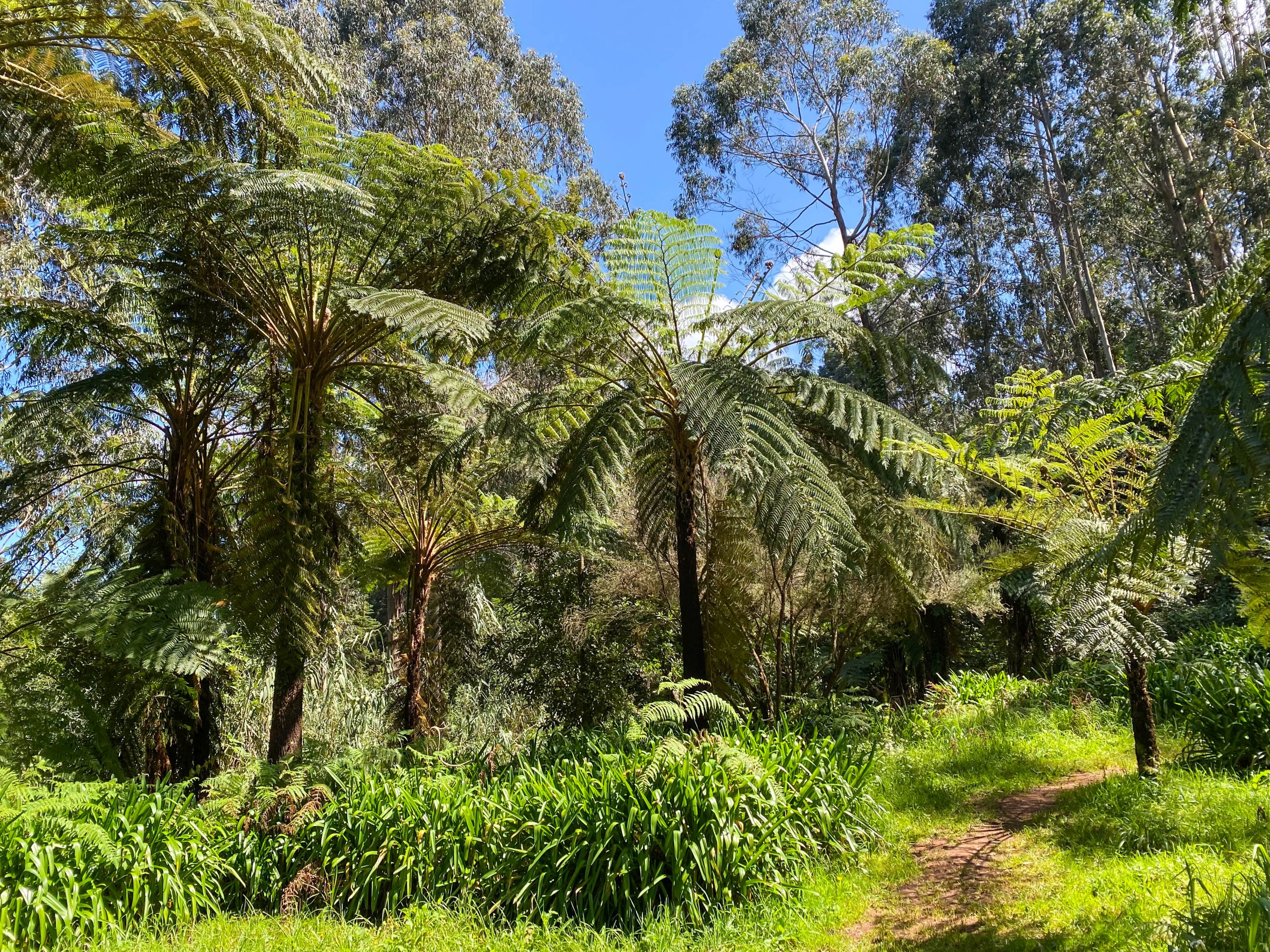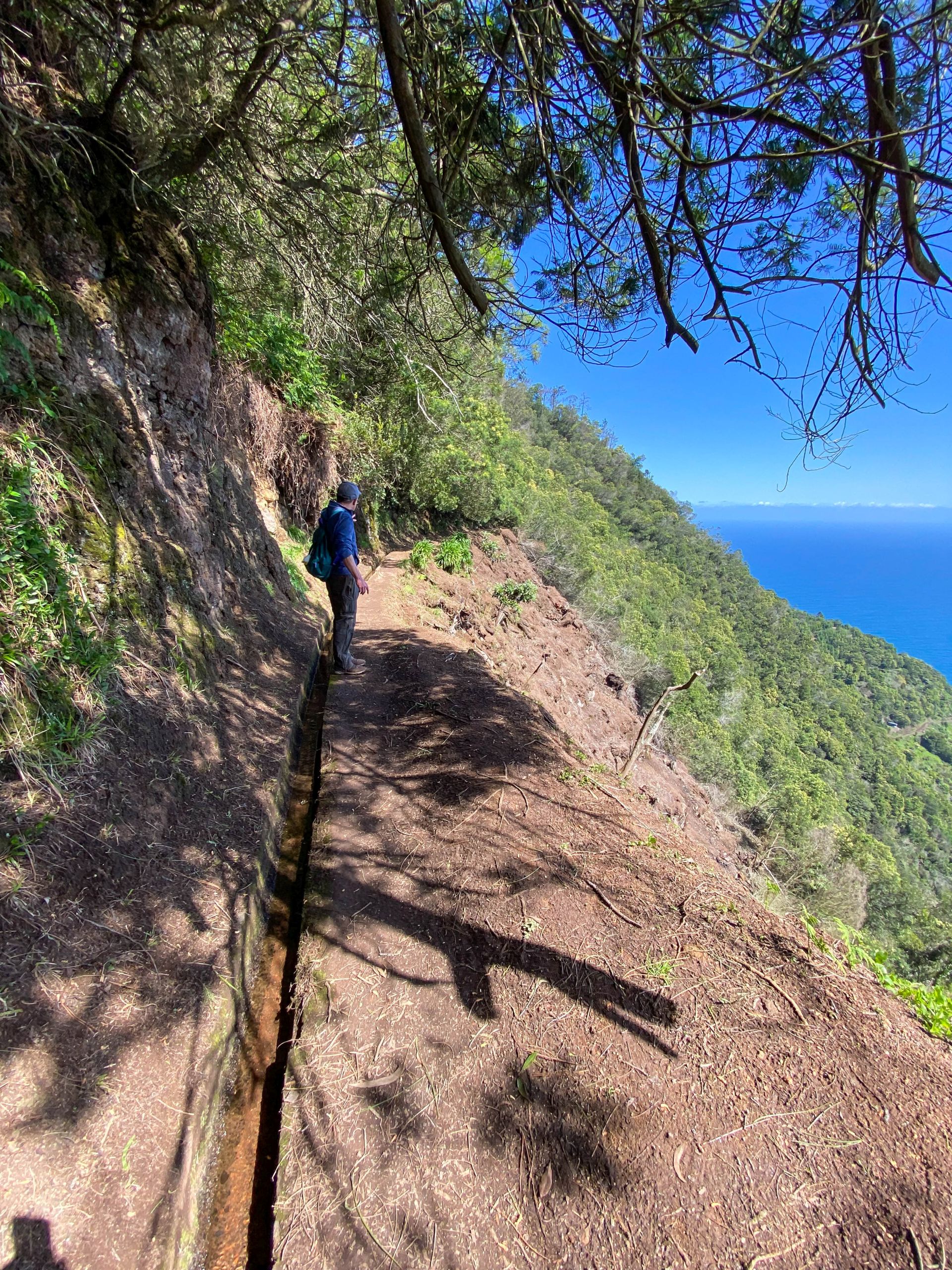 Der Weg ist größtenteils breit wie ein Waldweg, hat aber auch ein paar schmalere Stellen, die etwas Schwindelfreiheit erfordern. Der Nachteil dieser Wanderung ist die fehlende Aussicht, bzw. Fernsicht, da die vielen Eukalyptusbäume die Sicht nehmen. Auf dem Rückweg stellt sich dann auch immer mehr Sonne ein und trocken ist es auch geblieben. Nach etwas mehr als 4 Stunden kehren wir zum Auto zurück.