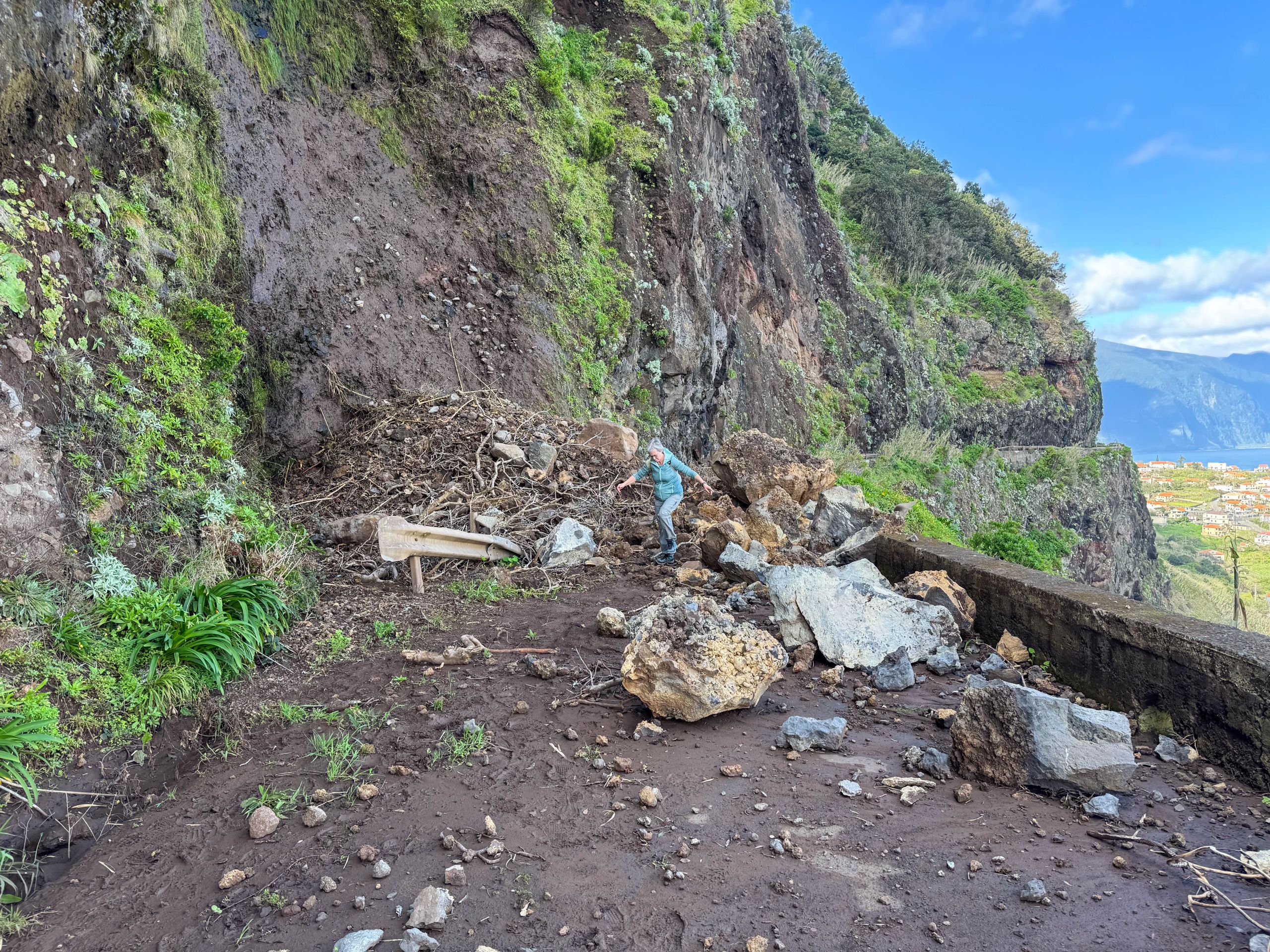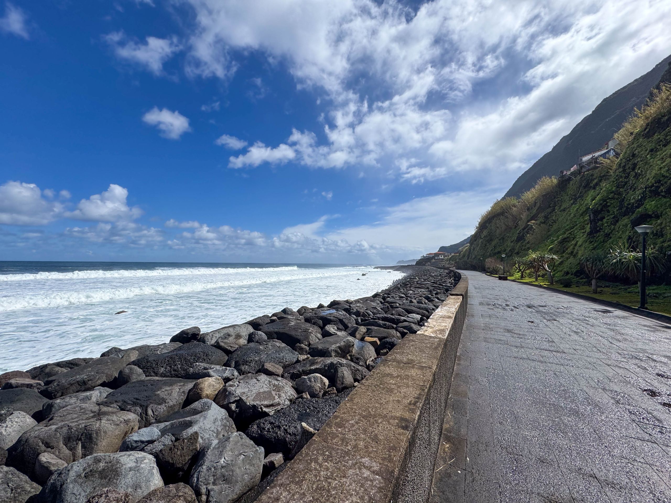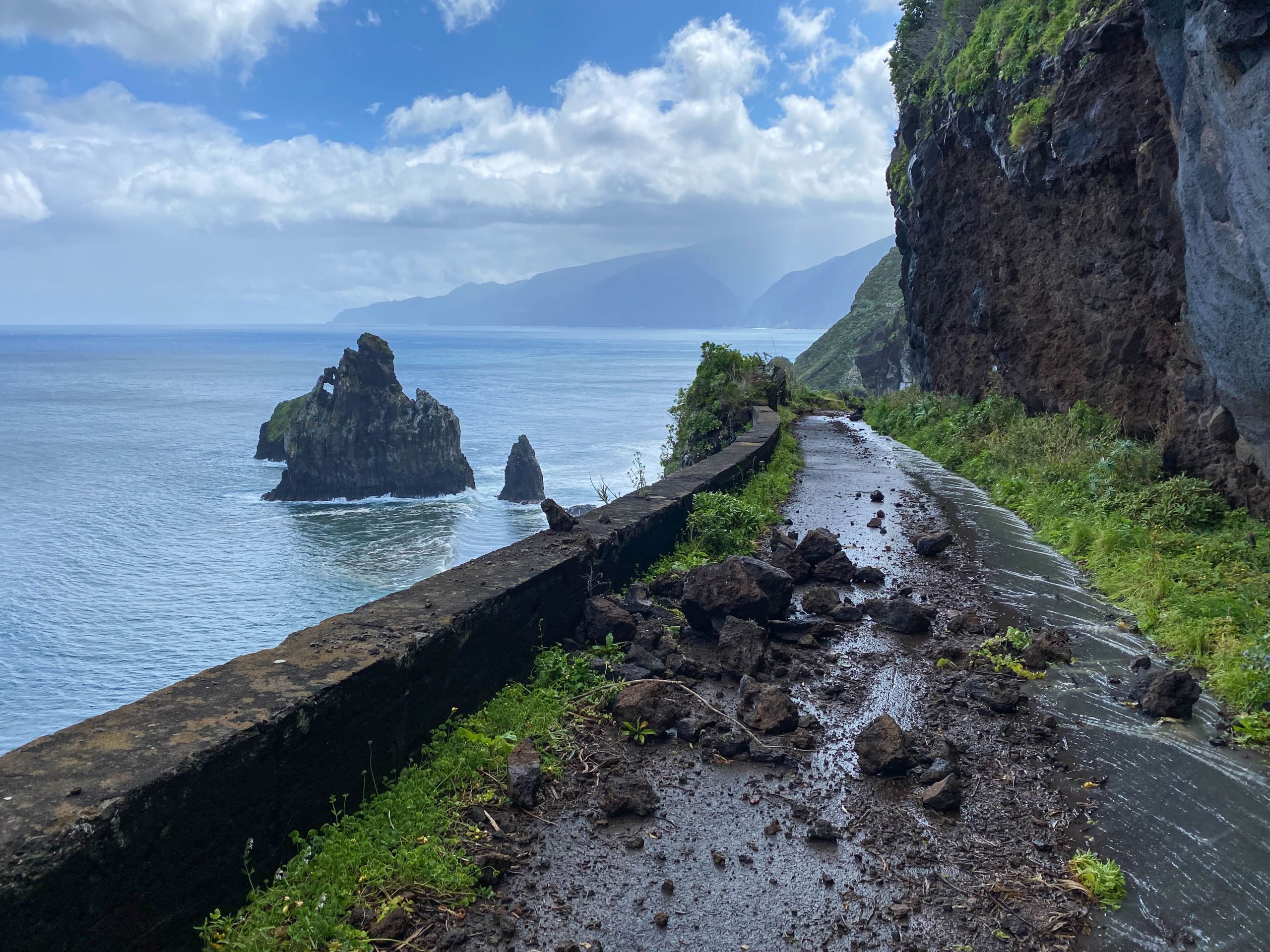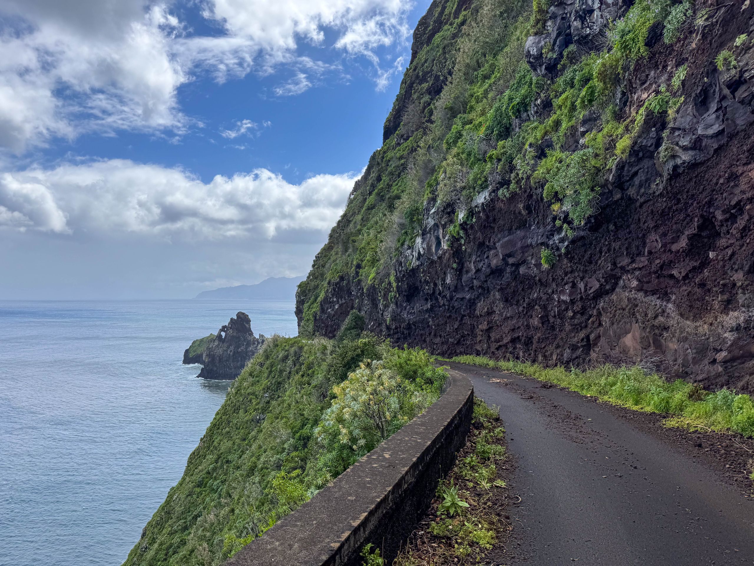 Dann ein kurzer Halt am Miradouro do Véu da Noiva und dann schauen wir uns auch noch Abschnitte der alten Küstenstraße an. Es gibt hier immer wieder Gründe anzuhalten oder auch nicht, weil es gerade wieder regnet. Oder auch am Aussichtspunkt in Ribeira da Janela, hier war derart alles zugeparkt, dass man gar keine Lust hatte, sich hier umzusehen. Irgendwie haben wir eh das Gefühl, dass der Tourismus immer mehr zunimmt und man oft nicht mal mehr einen Parkplatz findet. Naja, wir sind ja ein Teil des Problems.