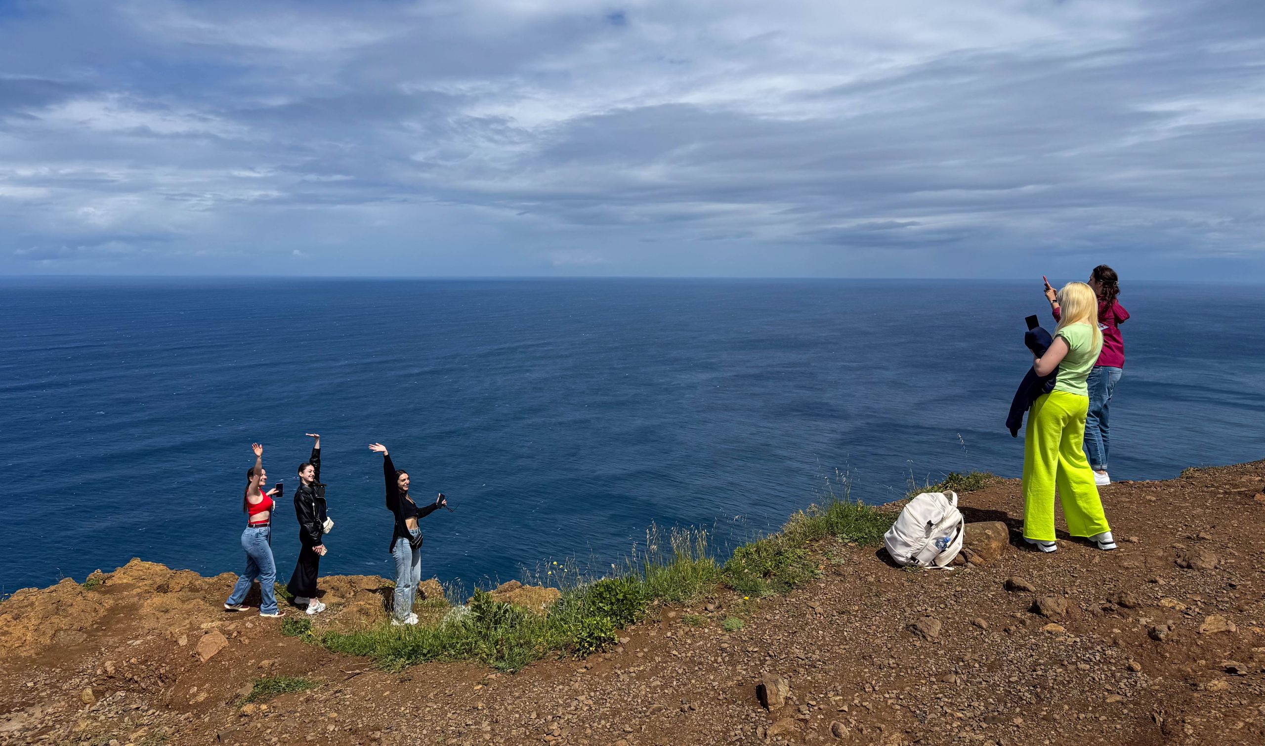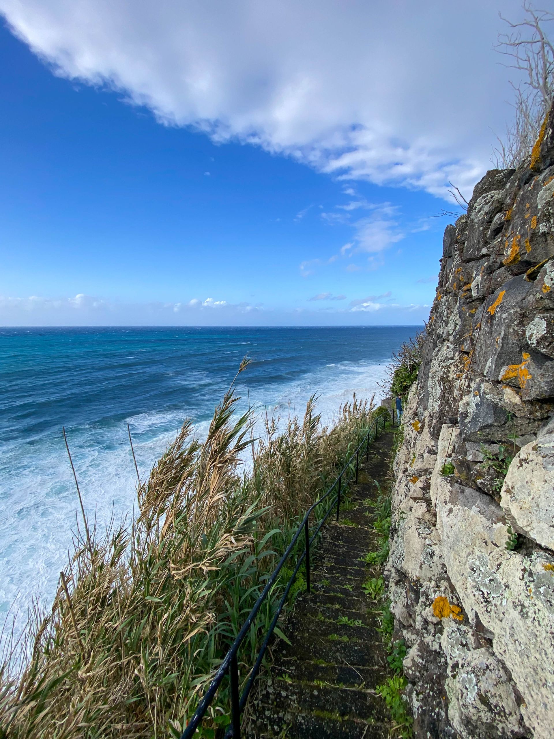 Zurück in Ponta Delgada gibt es dann noch ein oder zwei Ponchas bei Kare's Café. Bevor wir uns das sonnige, regnerische und stürmische Wetter aus unserem warmen Studio angucken, machen wir noch einen kleinen Schlenker an die hiesige Steilküste.
