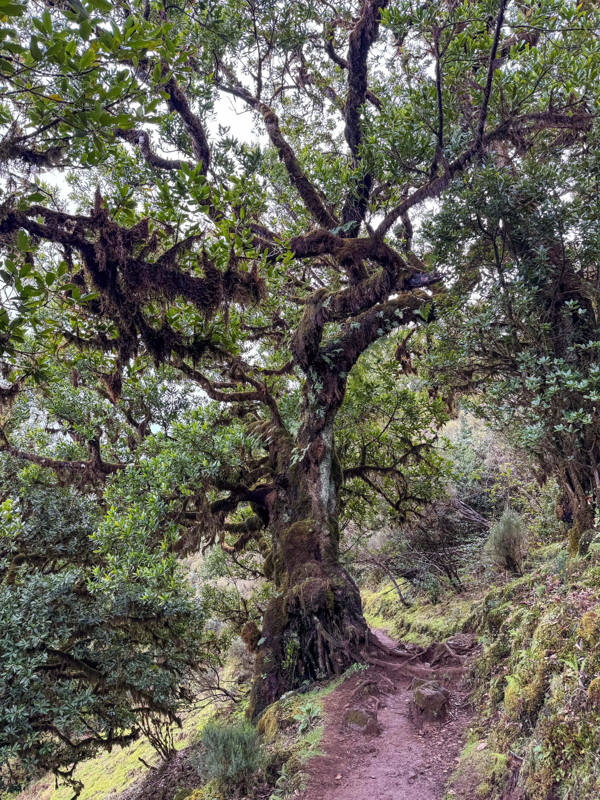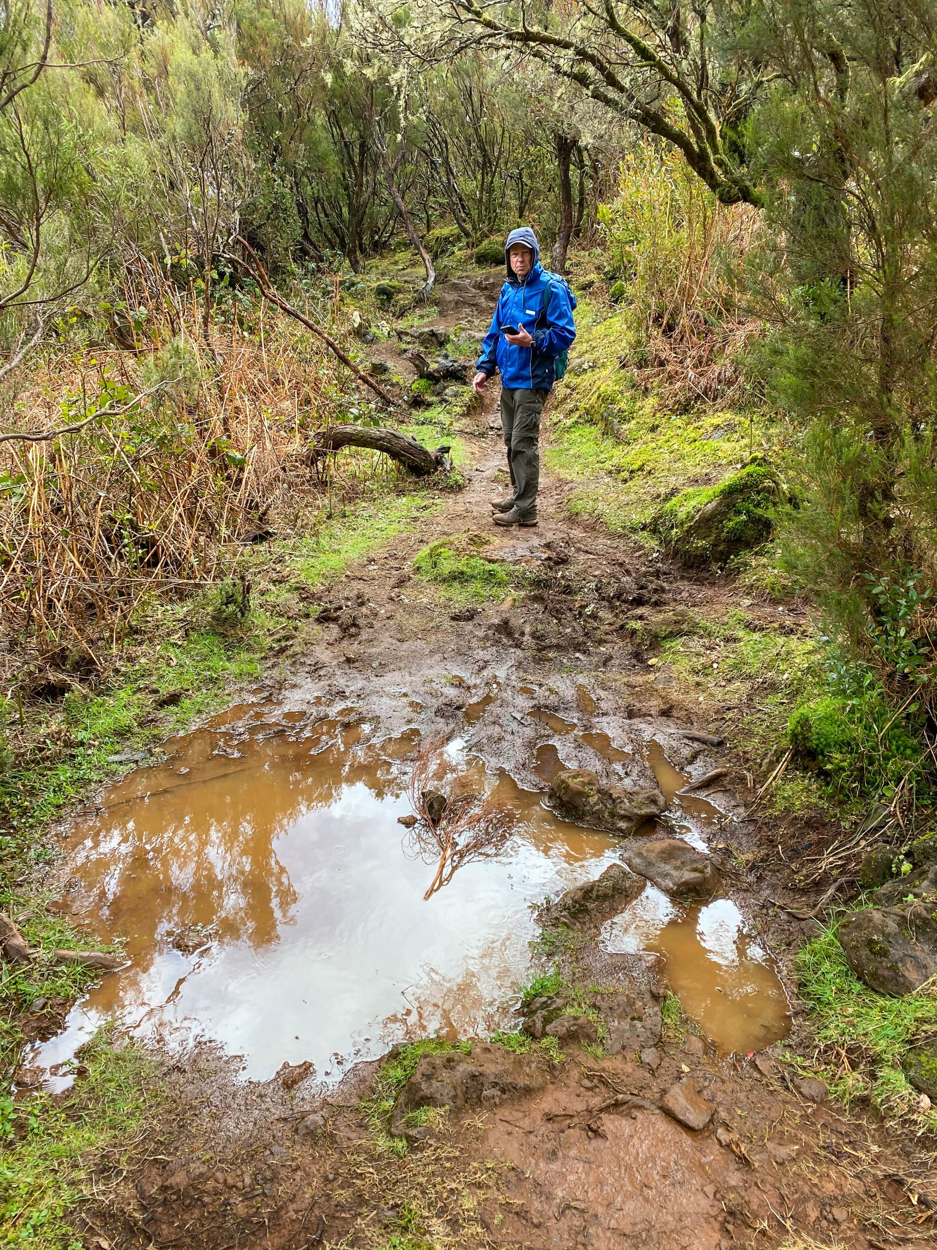 Auch hier auf dieser Wanderung ist es wieder ziemlich matschig und ich bin froh, dass meine Wanderschuhe und die Wanderhose keine Vorzeigeobjekte sind. Ich denke, der rotbraune Dreck wird nicht mehr so leicht raus gehen. Nachdem wir wieder den Startpunkt erreicht haben, geht unsere Wanderung auf der anderen Seite weiter. Hier sind über ein großes Gebiet locker verteilt bizarre Stinklorbeerbäume, die auch zahlreiche Fotografen und teilweise auch Influenzer anziehen.