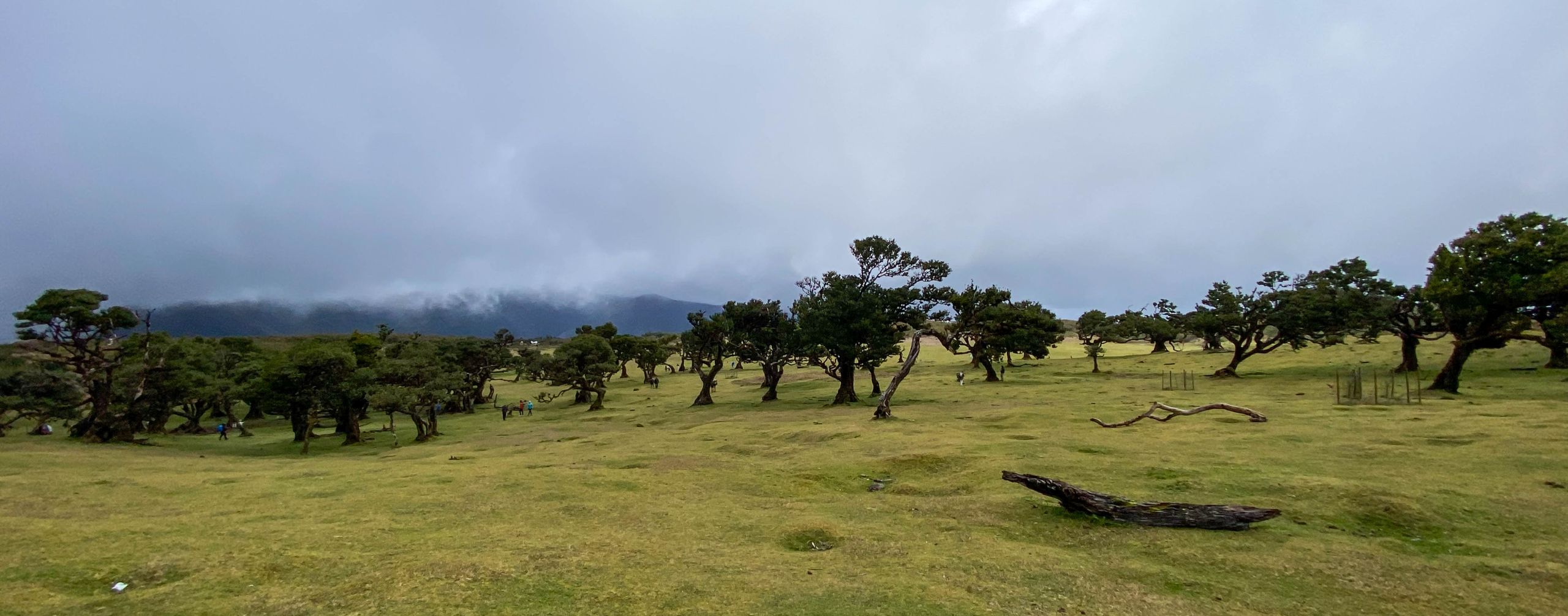 Jetzt geht es weiter ins westliche Hochland zum Forsthaus Fanal. Hier haben wir uns in Komoot eine Wanderung ausgesucht, die nicht zu viele Höhenmeter hat, aber auch nicht ganz so kurz ist wie die Nr. 58 aus dem Rother Wanderführer. Der Parkplatz hier ist ziemlich groß, aber auch sehr voll. Wir finden aber ein Plätzchen und ziehen uns direkt alle Jacken an, die wir dabei haben. Hier bläst ein ordentlicher Wind und es sieht auch sehr nach Regen aus.