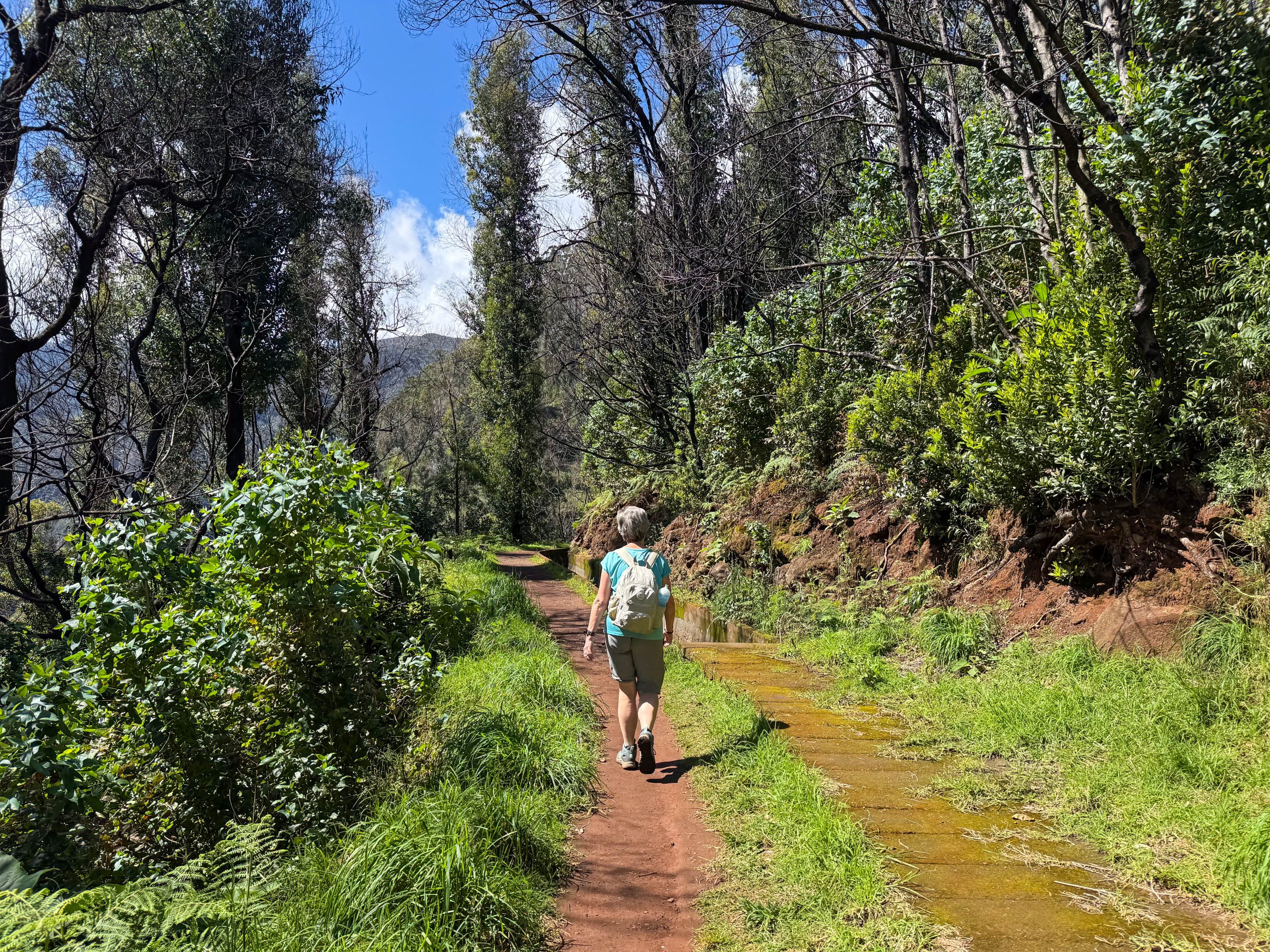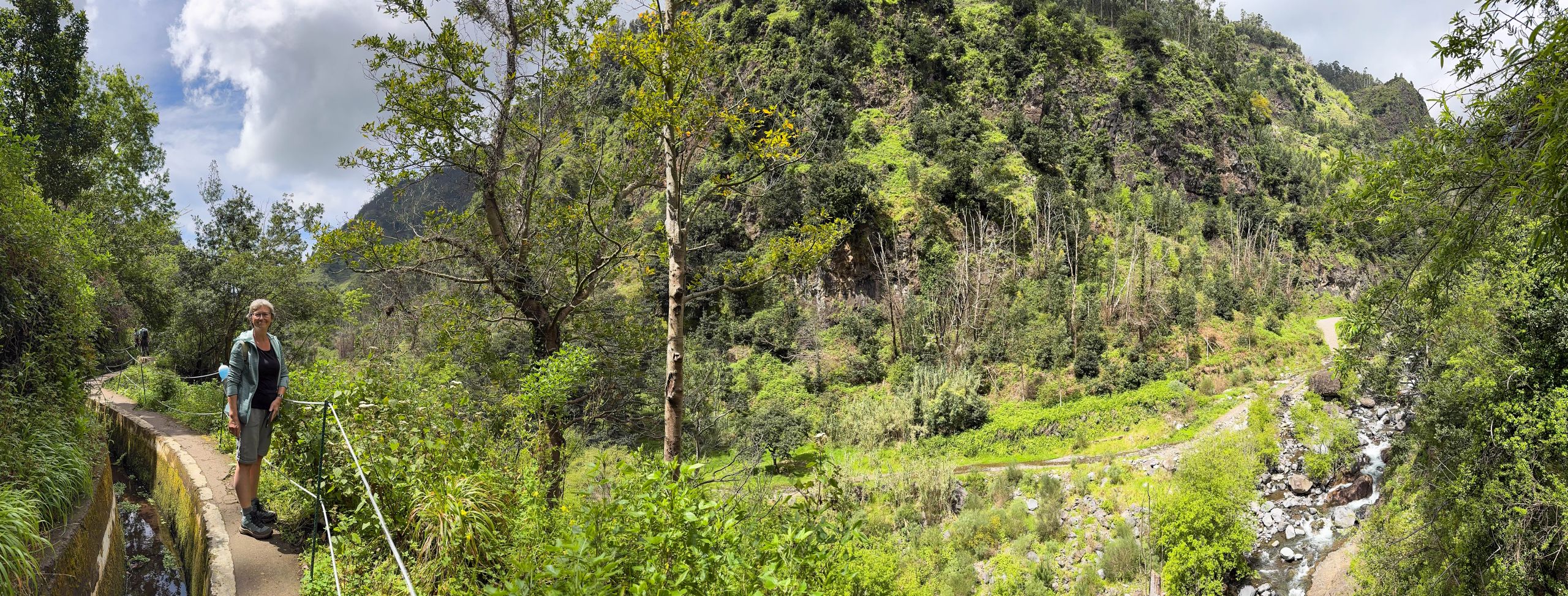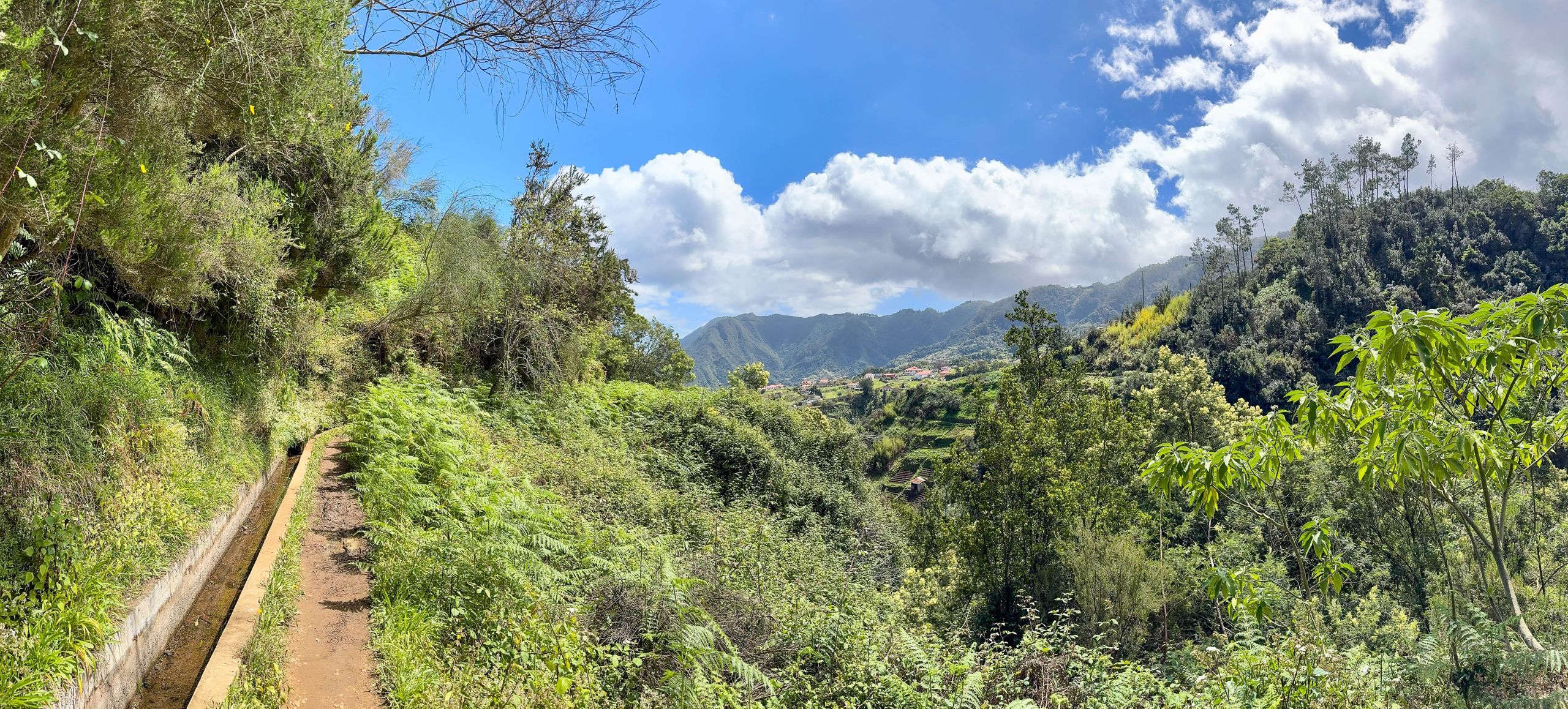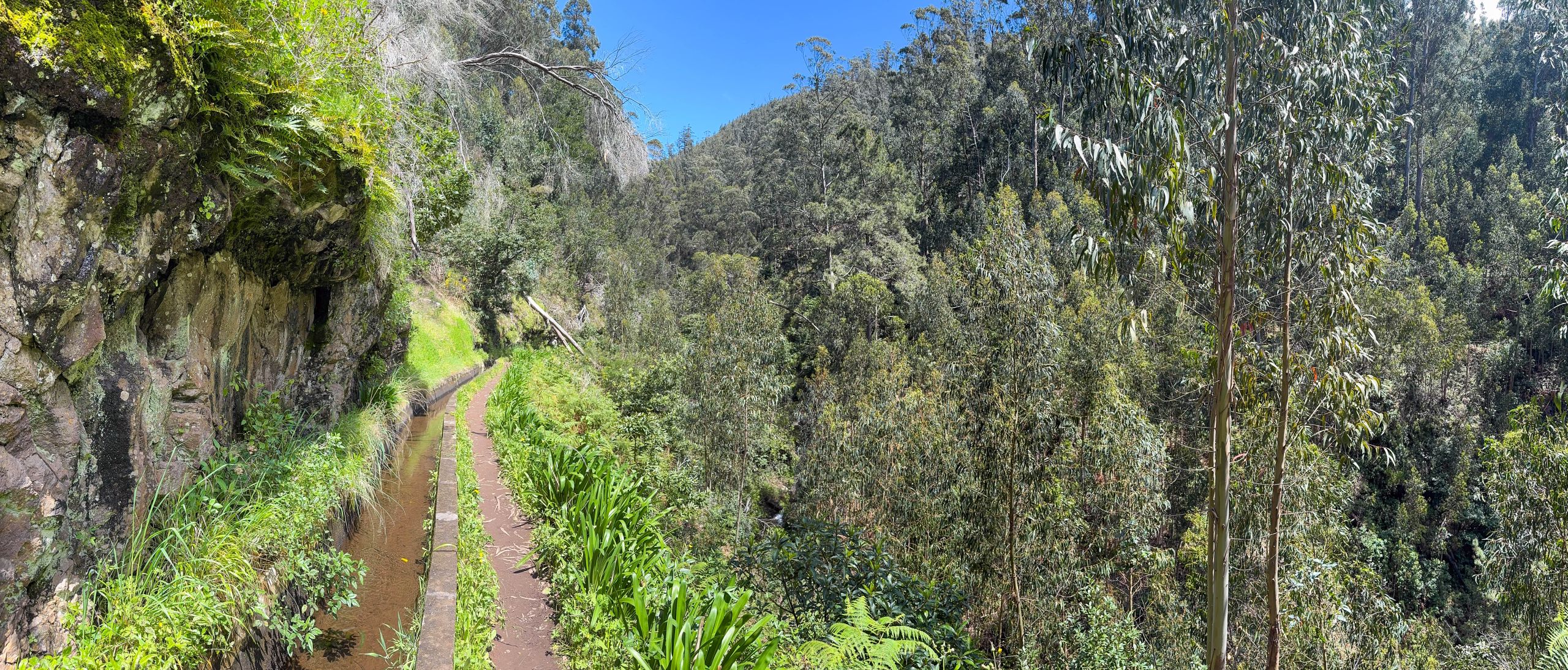Besonders jetzt im Frühjahr hat sie ihren Reiz durch die vielen blühenden Akazienbäume. Wir genießen den Weg und verlängern ihn um etwas mehr als einen Kilometer entlang der Levada, statt nach Cruz hinabzusteigen. Nach ca 5 km machen wir eine kleine Rast und gehen den gleichen Weg wieder zurück bis Referta.