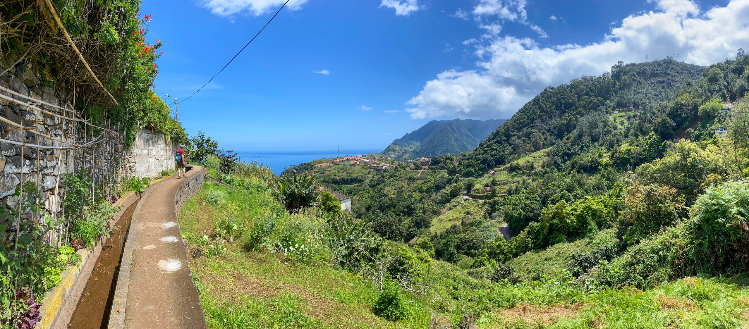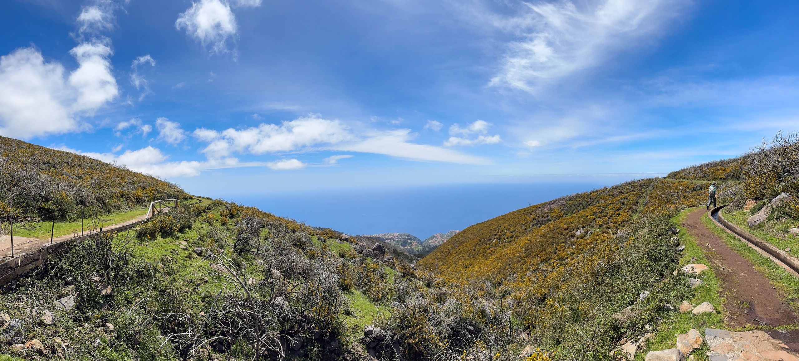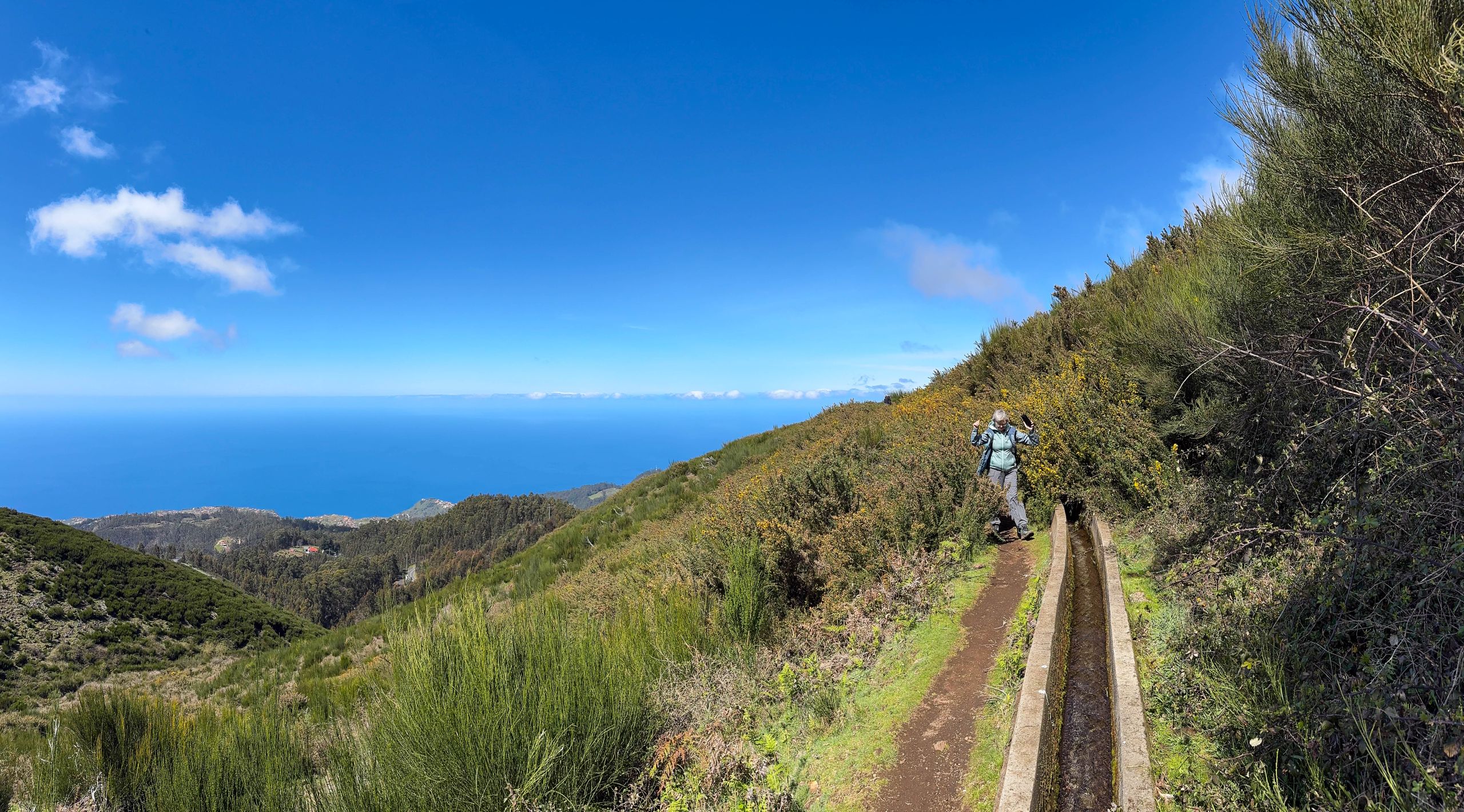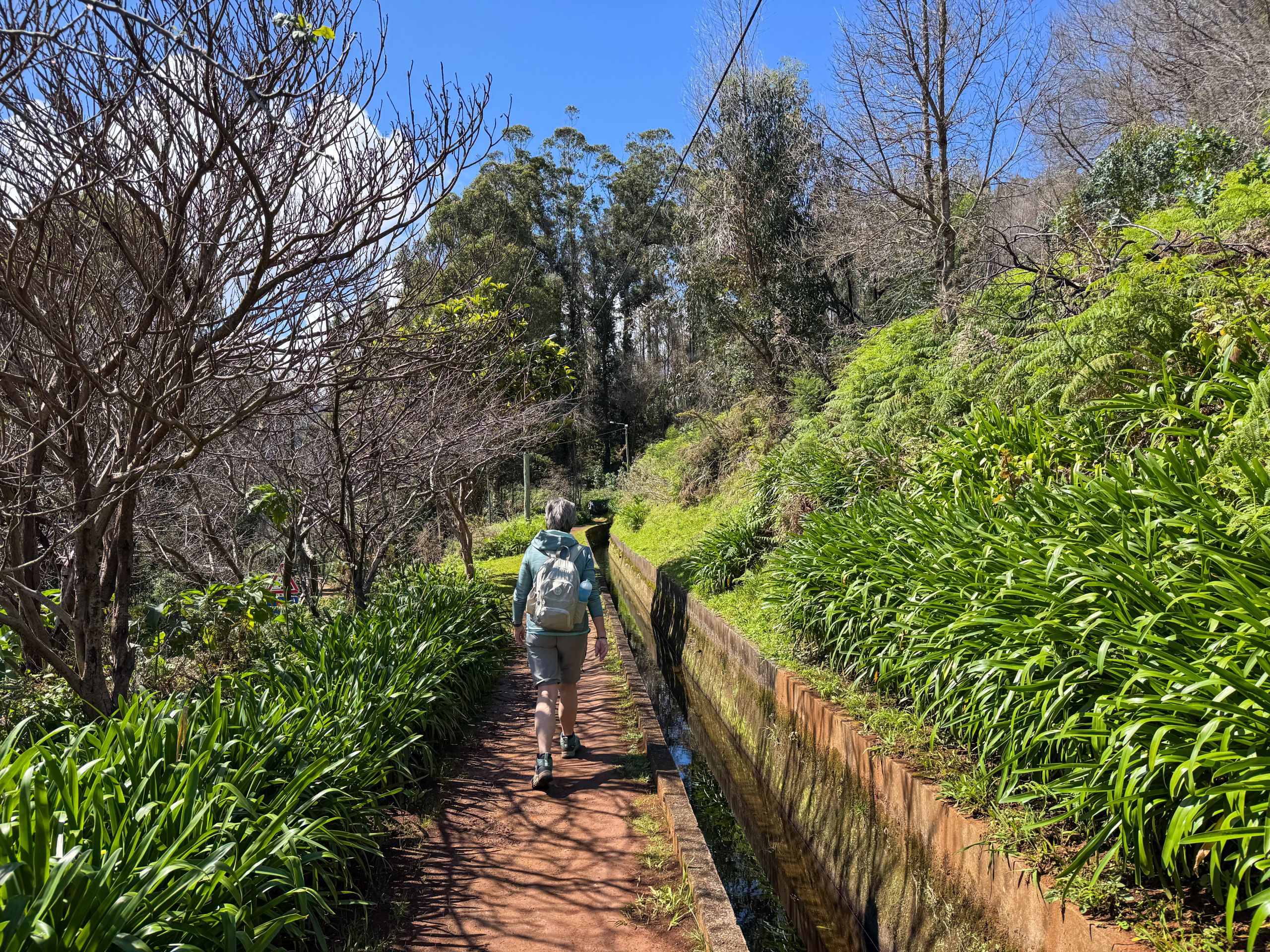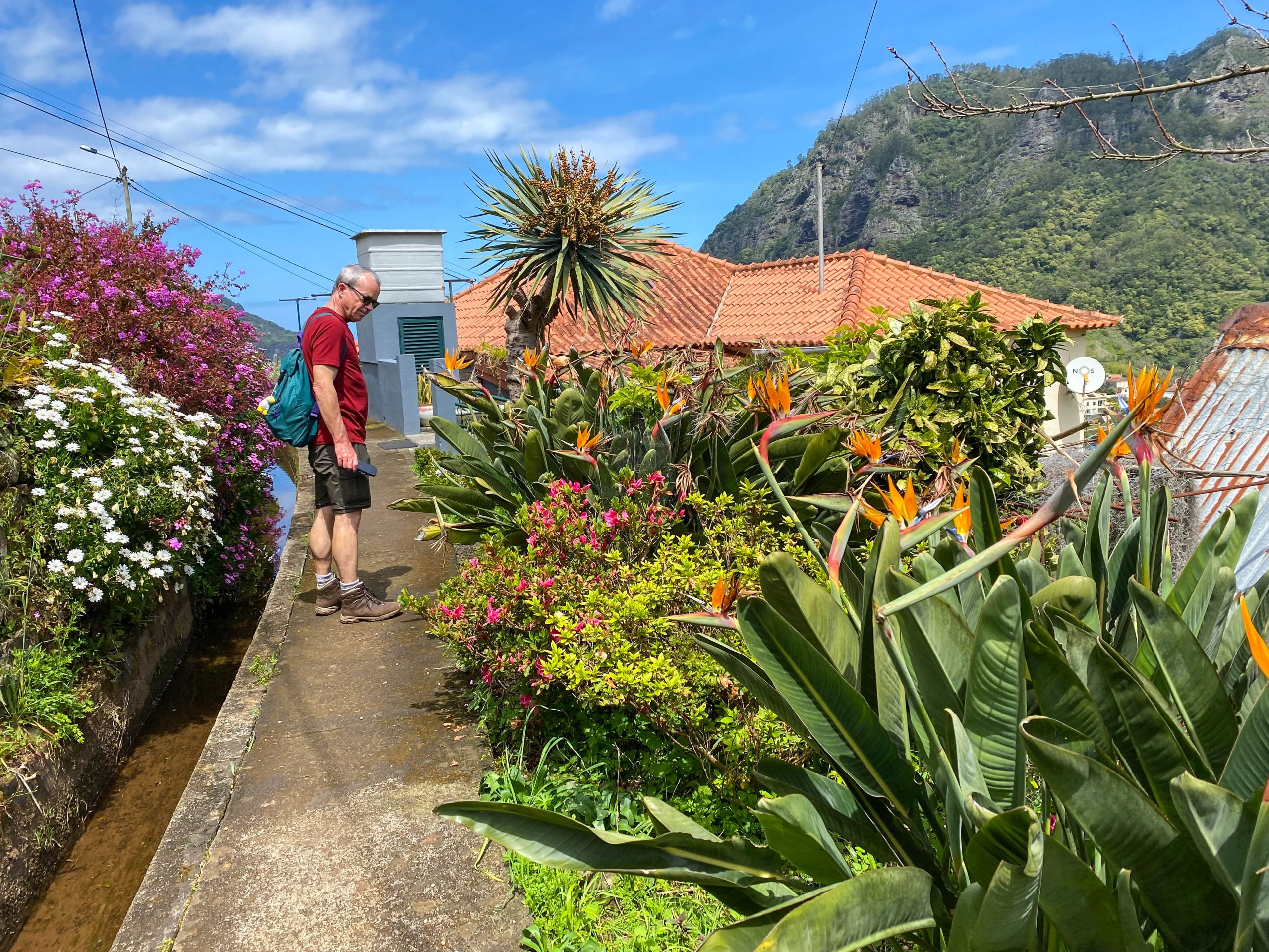 Besonders jetzt im Frühjahr hat sie ihren Reiz durch die vielen blühenden Akazienbäume. Wir genießen den Weg und verlängern ihn um etwas mehr als einen Kilometer entlang der Levada, statt nach Cruz hinabzusteigen. Nach ca 5 km machen wir eine kleine Rast und gehen den gleichen Weg wieder zurück bis Referta.