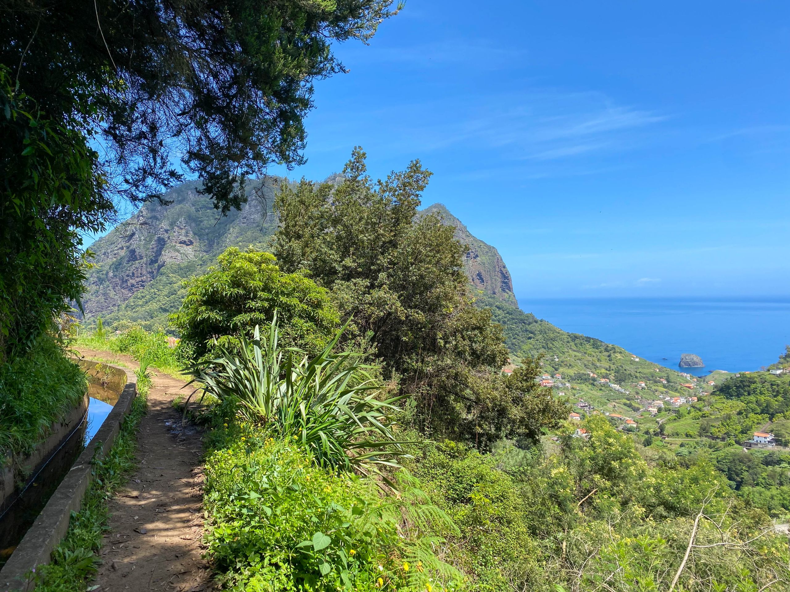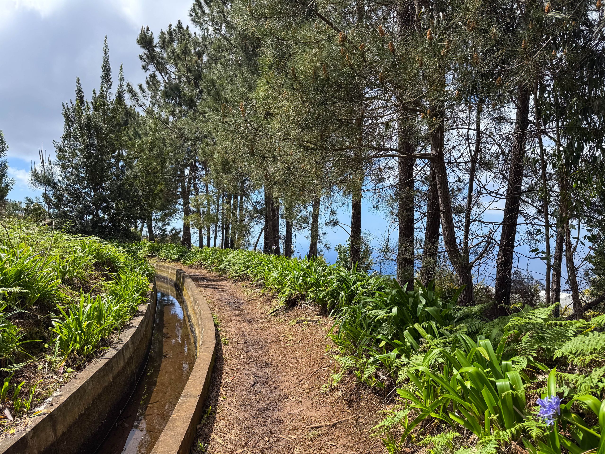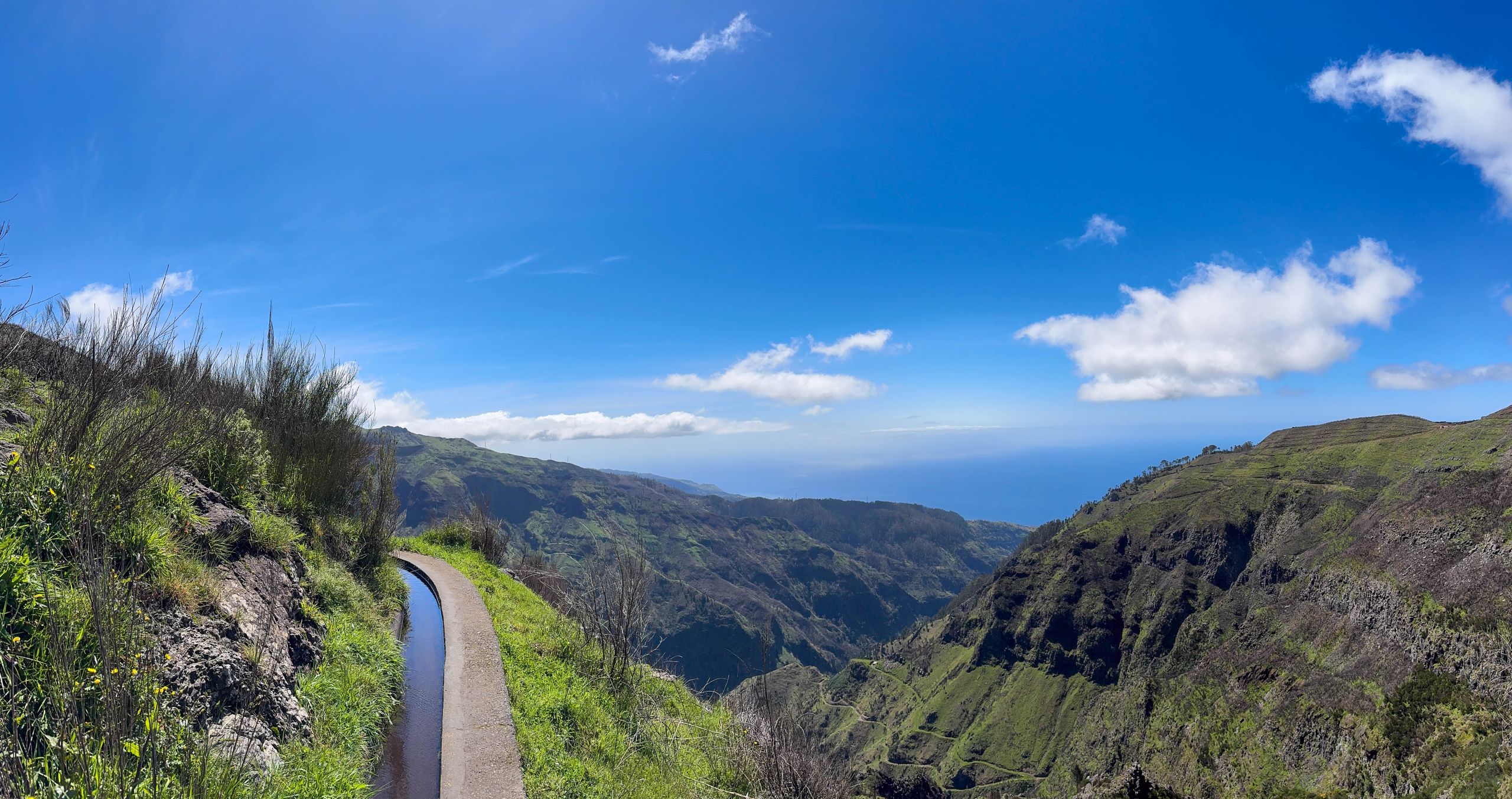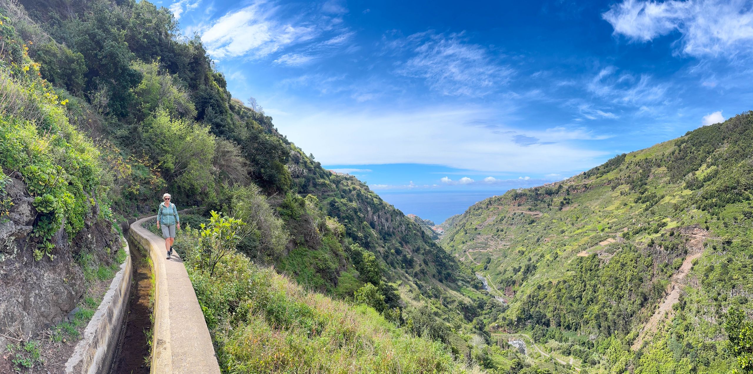 Besonders jetzt im Frühjahr hat sie ihren Reiz durch die vielen blühenden Akazienbäume. Wir genießen den Weg und verlängern ihn um etwas mehr als einen Kilometer entlang der Levada, statt nach Cruz hinabzusteigen. Nach ca 5 km machen wir eine kleine Rast und gehen den gleichen Weg wieder zurück bis Referta.