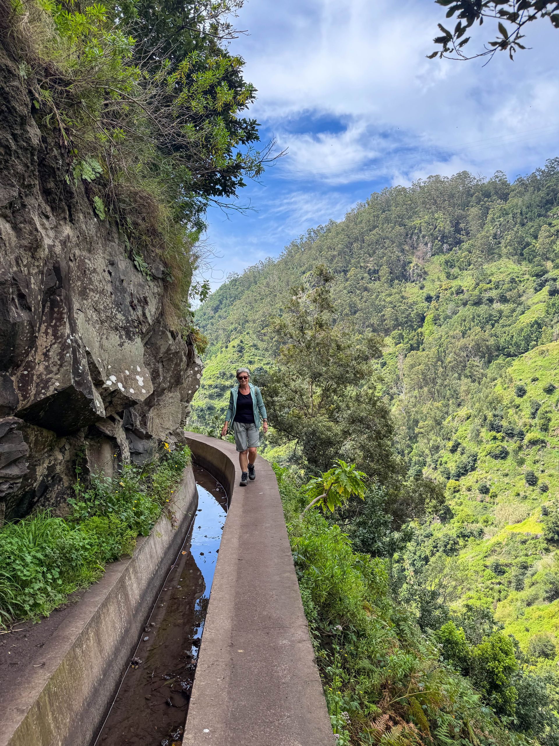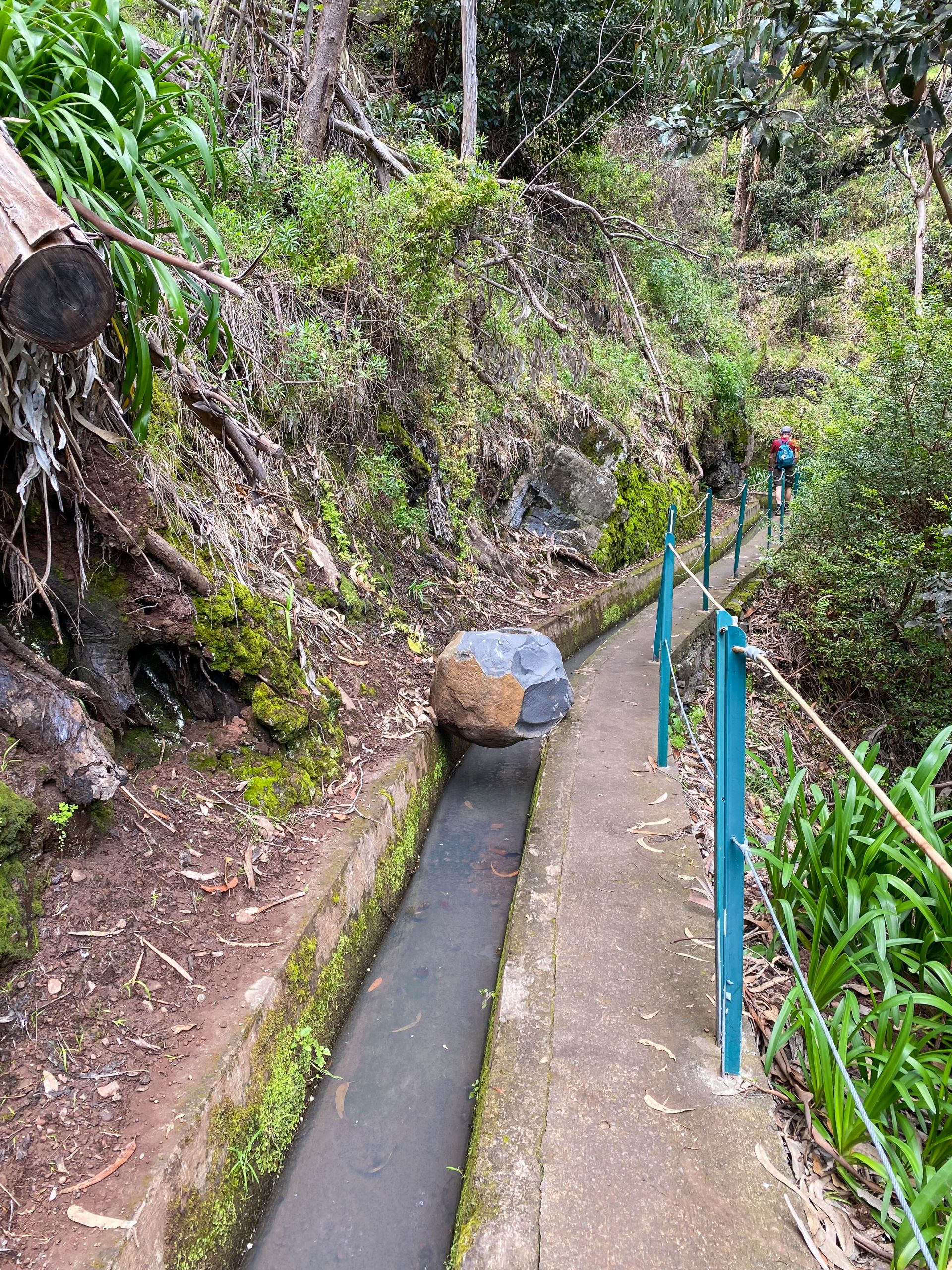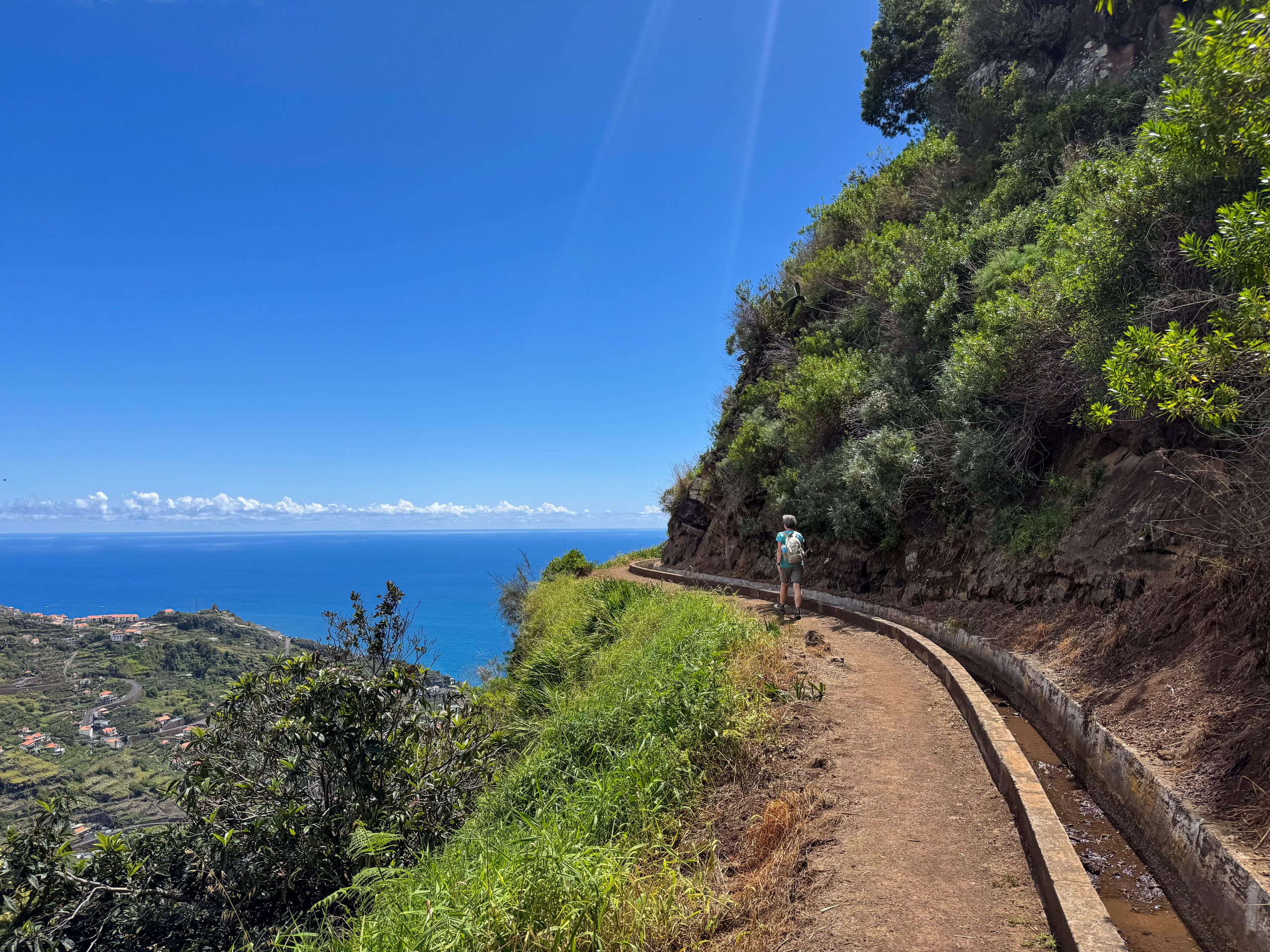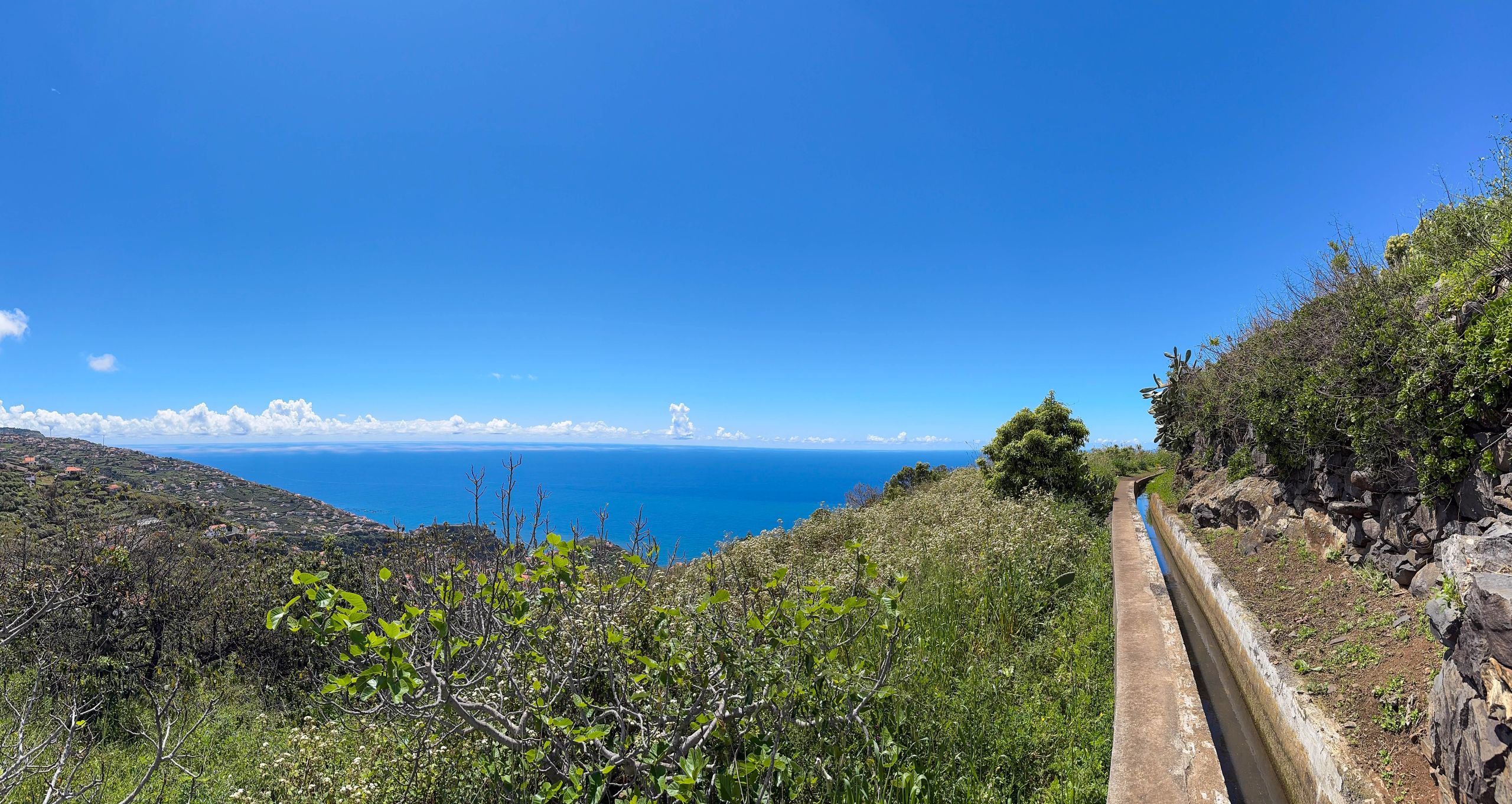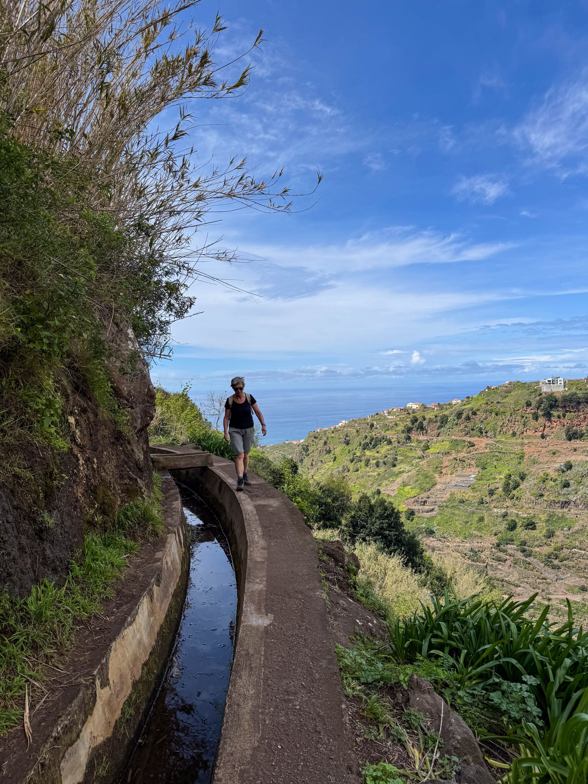 Besonders jetzt im Frühjahr hat sie ihren Reiz durch die vielen blühenden Akazienbäume. Wir genießen den Weg und verlängern ihn um etwas mehr als einen Kilometer entlang der Levada, statt nach Cruz hinabzusteigen. Nach ca 5 km machen wir eine kleine Rast und gehen den gleichen Weg wieder zurück bis Referta.